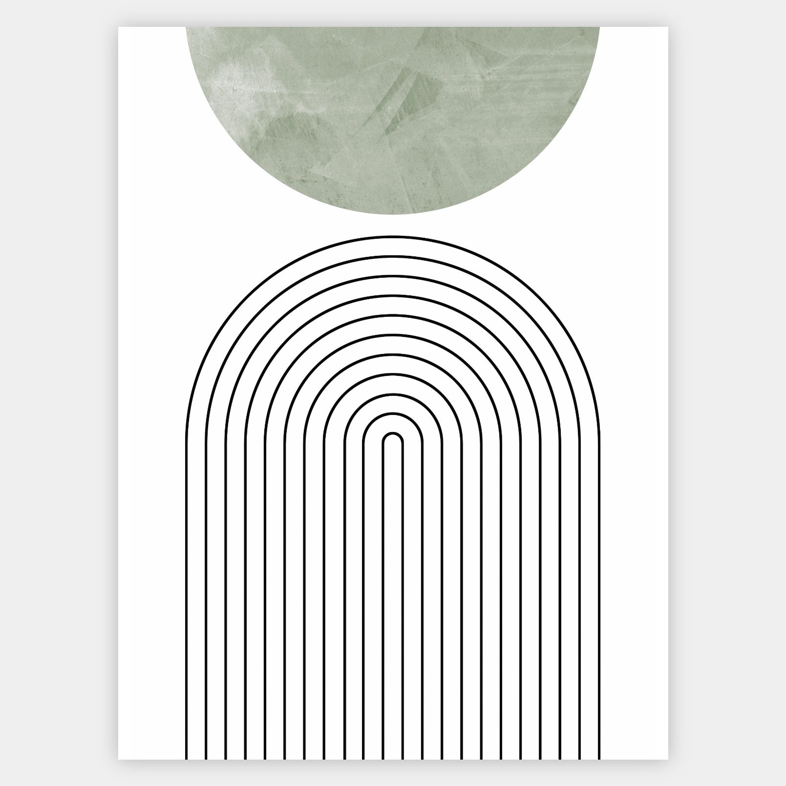 Boho poster with graphics of arches and circles "Green" 3. The poster is sold without a frame, with the option to order a thin wooden frame with a thickness of 1.2 cm. There are three color options to choose from - white , black and oak design.