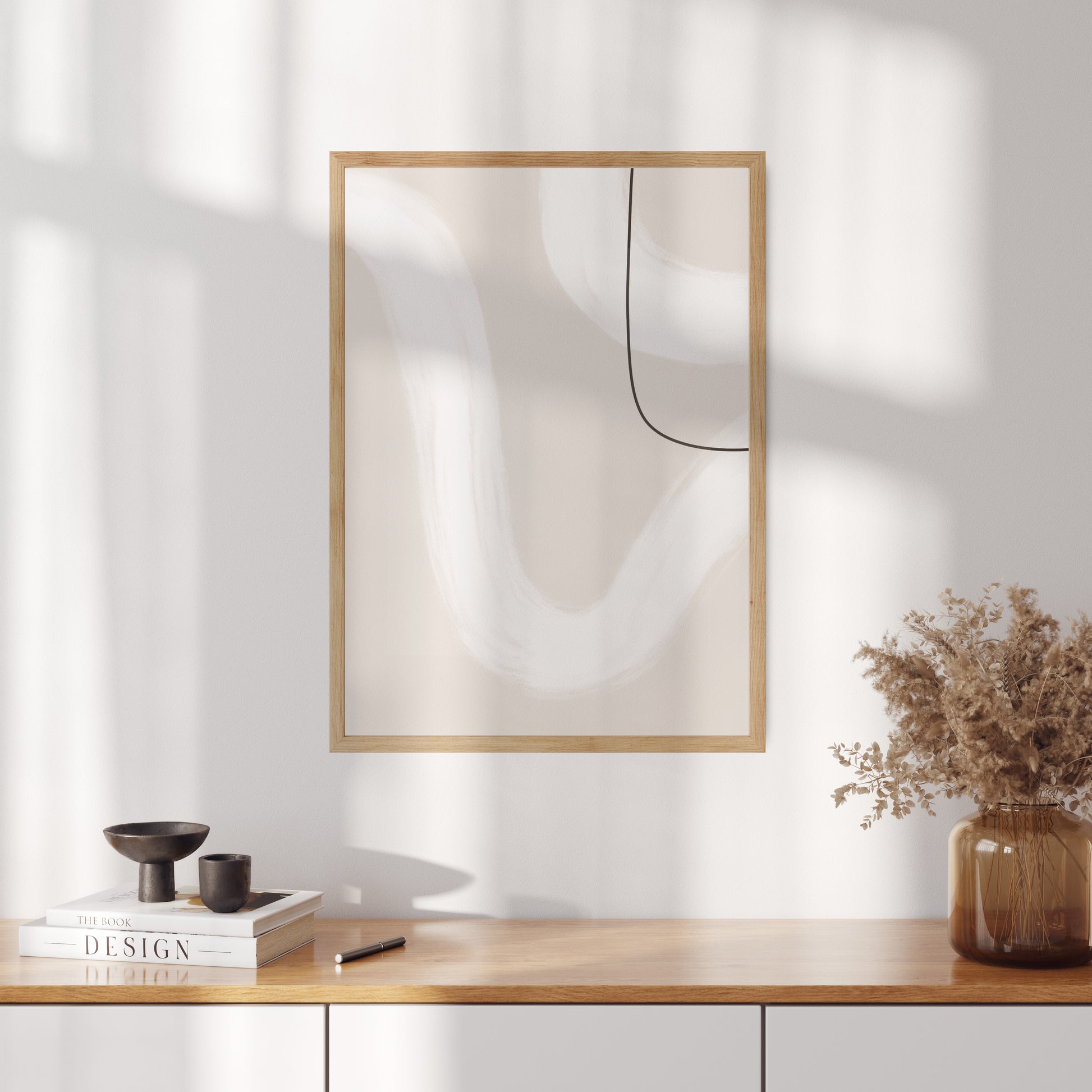 Boho poster "brush strokes" on beige background No. 2. The poster is sold without a frame, with the option to order a thin wooden frame with a thickness of 1.2 cm. There are three color options to choose from - white , black and oak design.