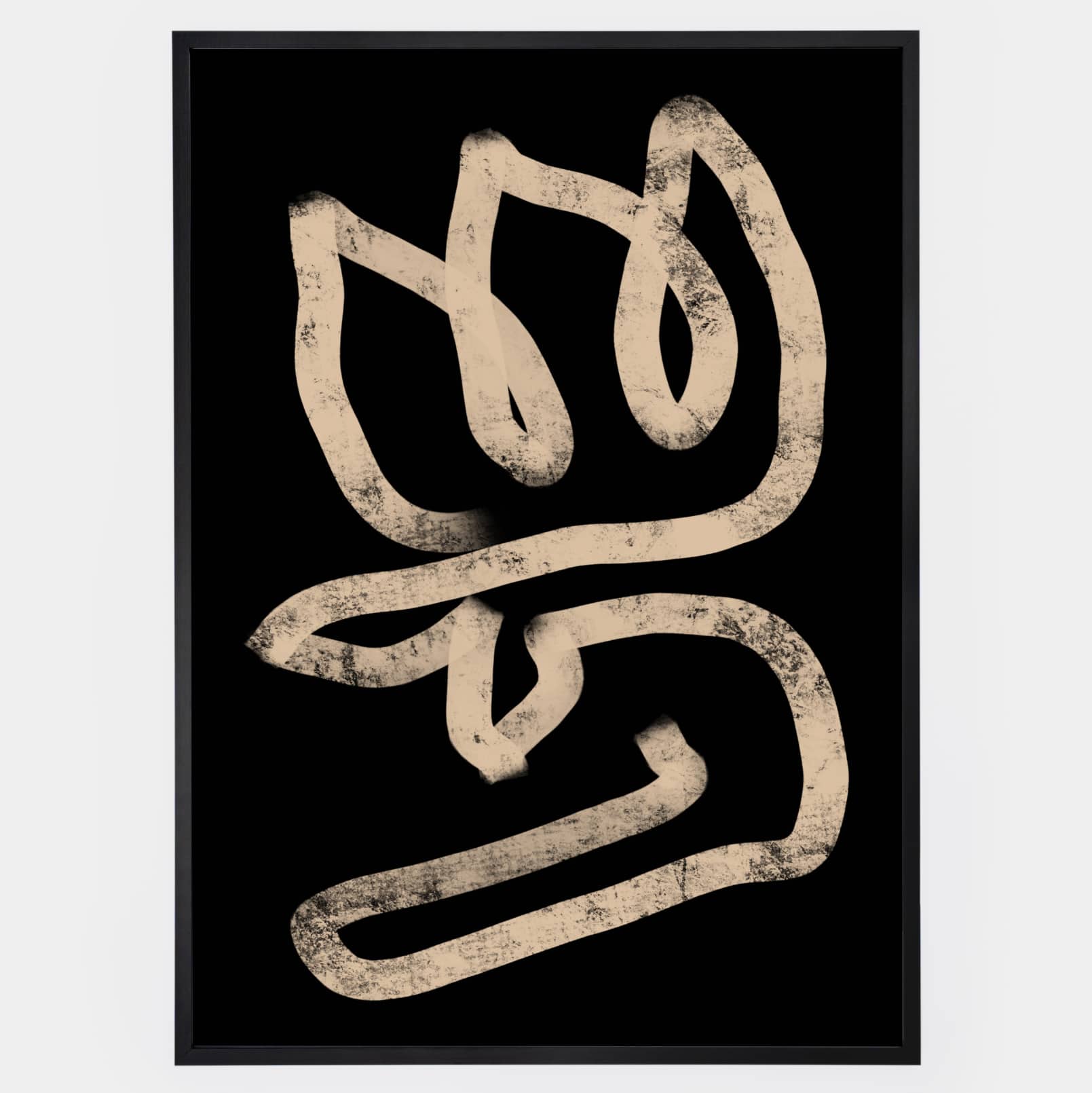 Boho poster with "Tulip" graphic on a black background. The poster is sold without a frame, with the option to order a thin wooden frame with a thickness of 1.2 cm. There are three color options to choose from - white , black and oak design.