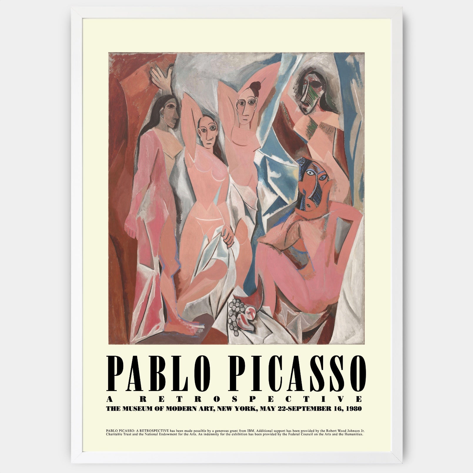 Exhibition poster with a motif from one of the most famous works by Spanish artist Pablo Picasso, The Ladies of Avignon. The poster is sold without a frame, with the option to order a thin wooden frame with a thickness of 1.2 cm. There are three color options to choose from - white , black and oak design.
