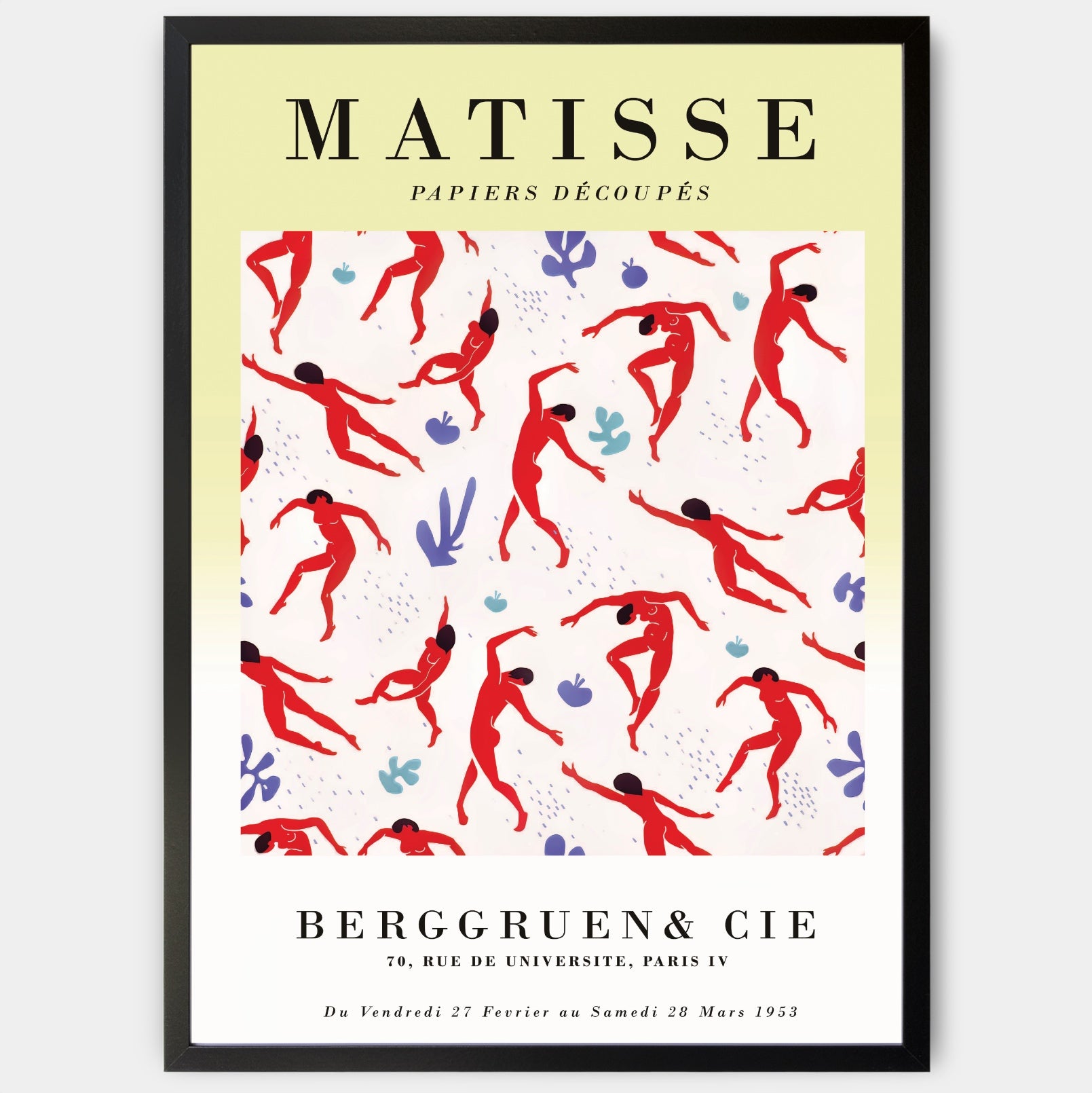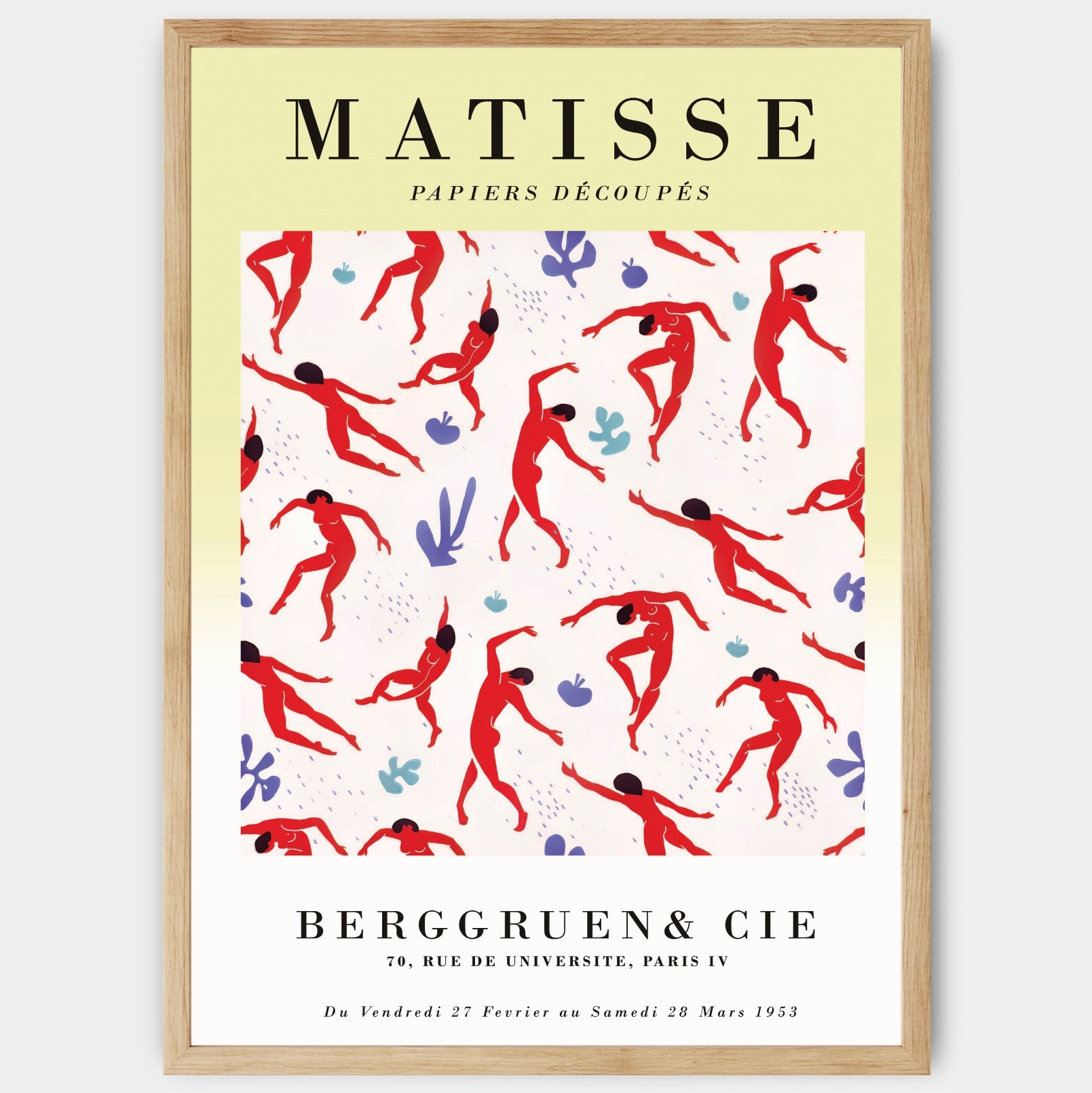 Exhibition poster with a work by Henri Matisse from 1953. The poster is sold without a frame, with the option to order a thin wooden frame with a thickness of 1.2 cm. There are three color options to choose from - white , black and oak design.