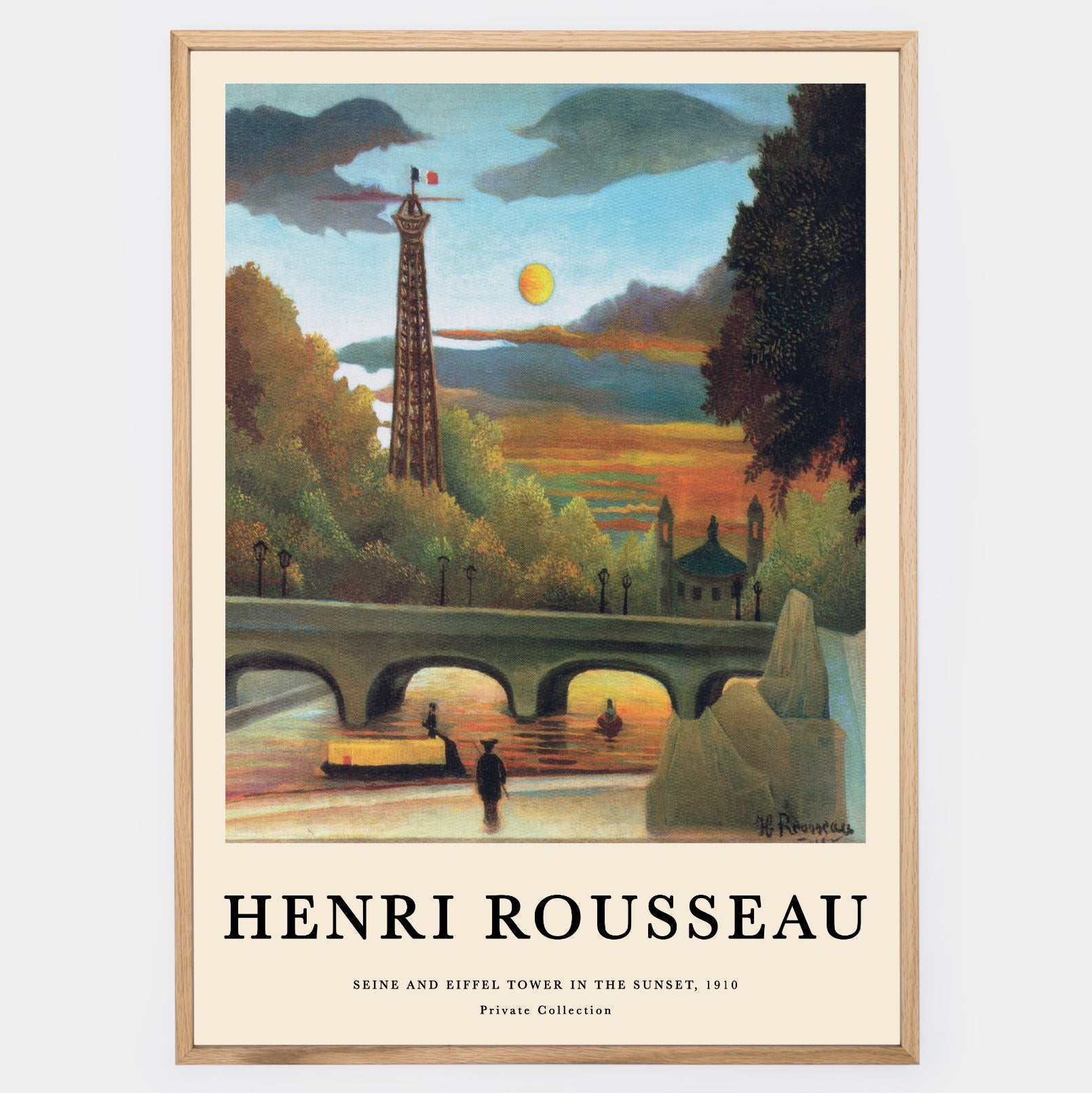 A remake of the exhibition work by Henri Rousseau titled "Seine and Eiffel Tower in the Sunset". The poster is sold without a frame, with the option to order a thin wooden frame with a thickness of 1.2 cm. There are three color options to choose from - white , black and oak design.