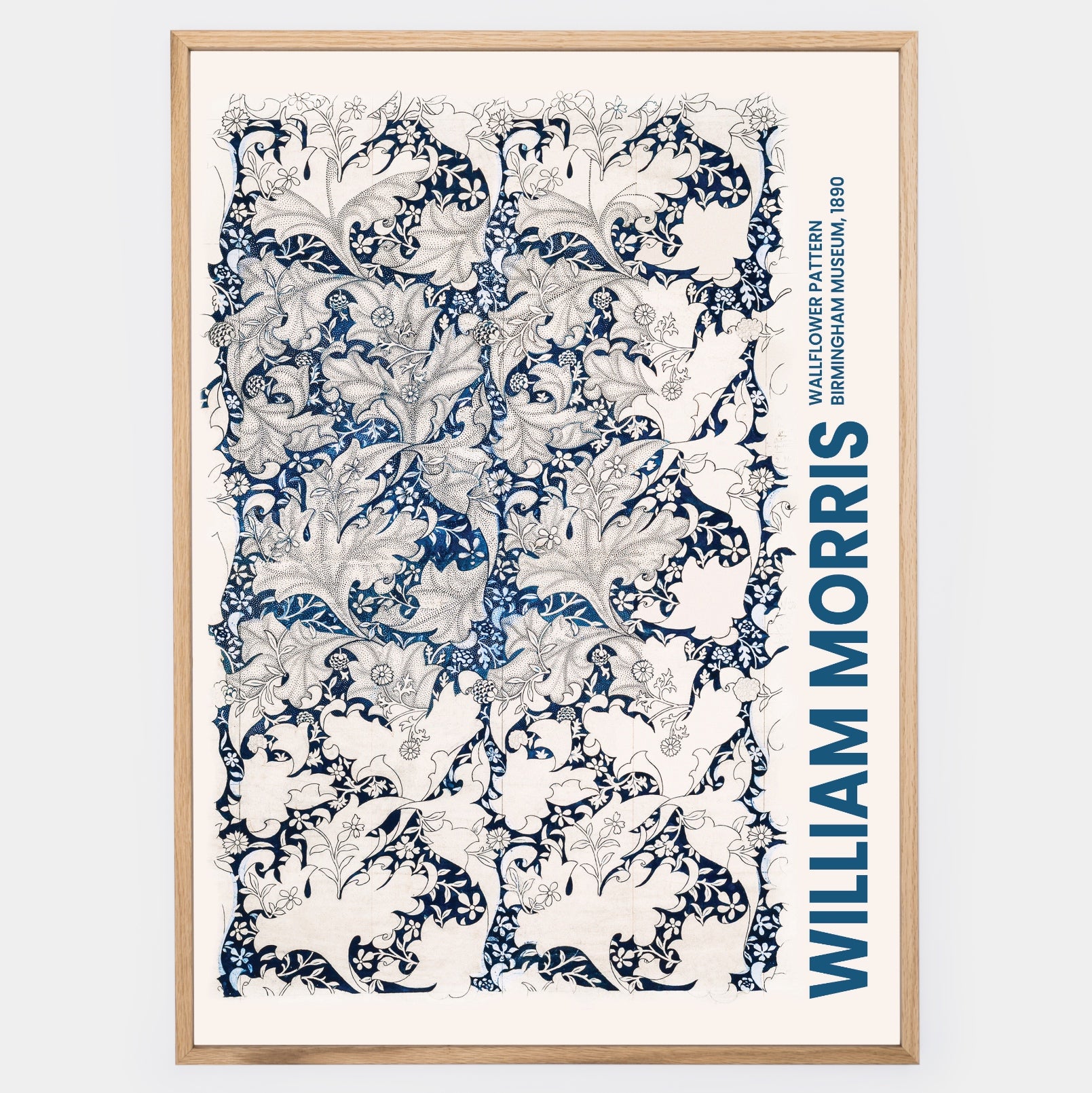 A poster inspired by a William Morris pattern with cheiranthus flowers. The poster is sold without a frame, with the option to order a thin wooden frame with a thickness of 1.2 cm. There are three color options to choose from - white , black and oak design.