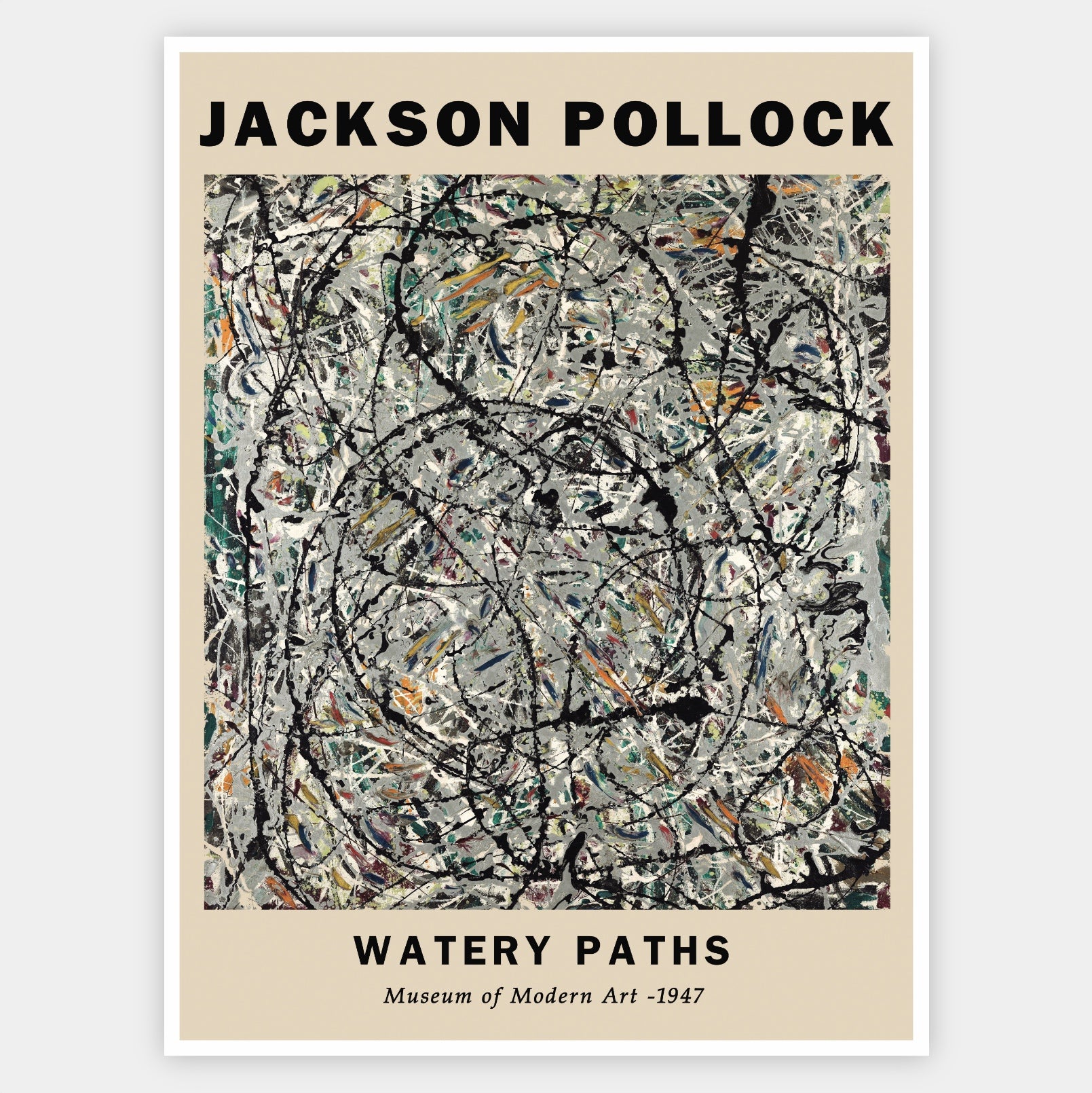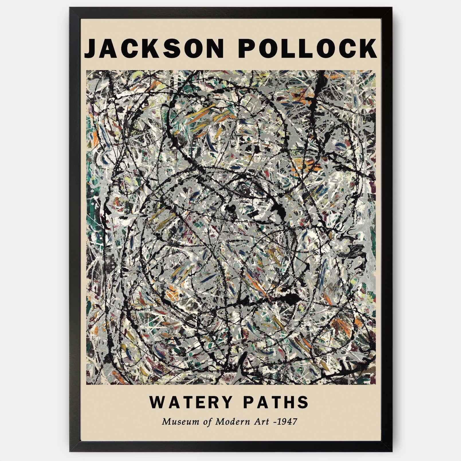 A remake of the exhibition work by Jackson Pollock called "Watery Paths". The poster is sold without a frame, with the option to order a thin wooden frame with a thickness of 1.2 cm. There are three color options to choose from - white , black and oak design.