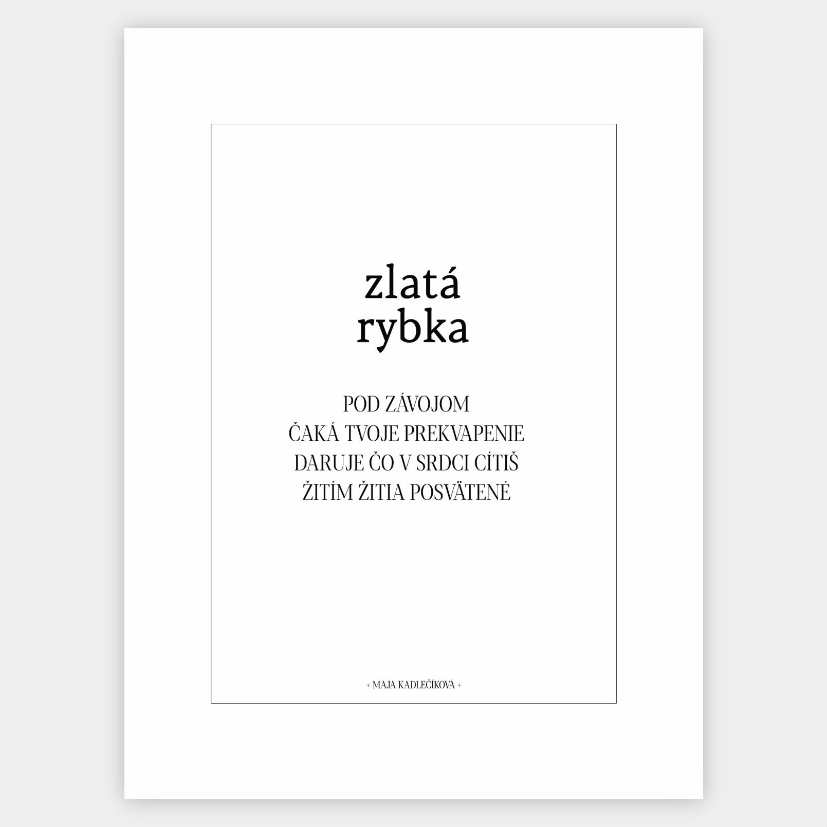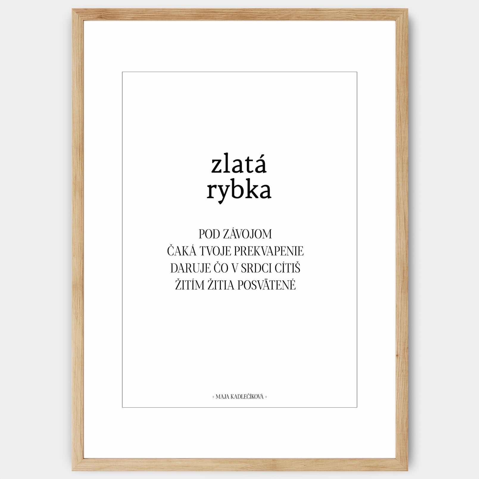 The poster with the poem "Golden Fish" from the Night and Day collection is complemented by a poster of the same name with a fish visual. It is designed to be completed with a standard mount. The poster is sold without a frame, with the option to order a thin wooden frame with a thickness of 1.2 cm. There are three color options to choose from - white , black and oak design.