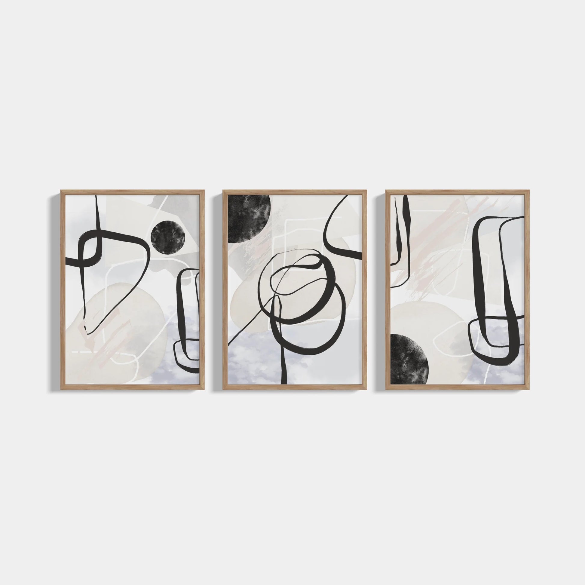 Set of three abstract posters from the Black Spray series. Contains 3 posters measuring 50x70cm, without frames. The posters can be purchased with white, black or oak frames .