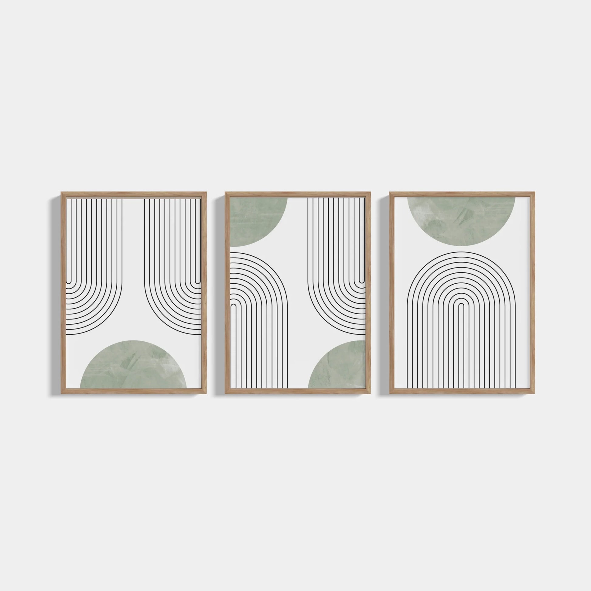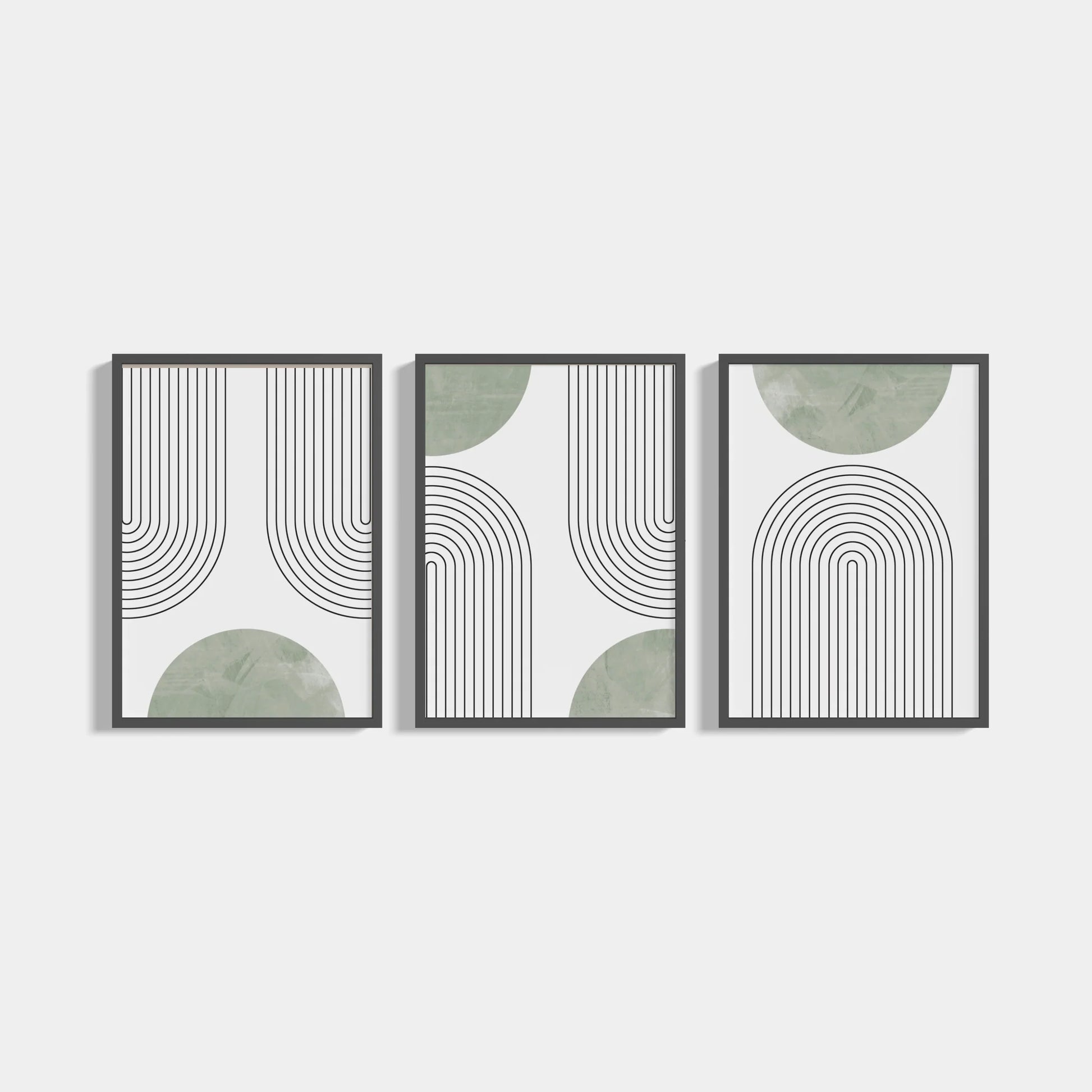 Set of three minimalist posters from the Boho Green series in green color. Contains 3 posters measuring 50x70cm, without frames. The posters can be purchased with white, black or oak frames .