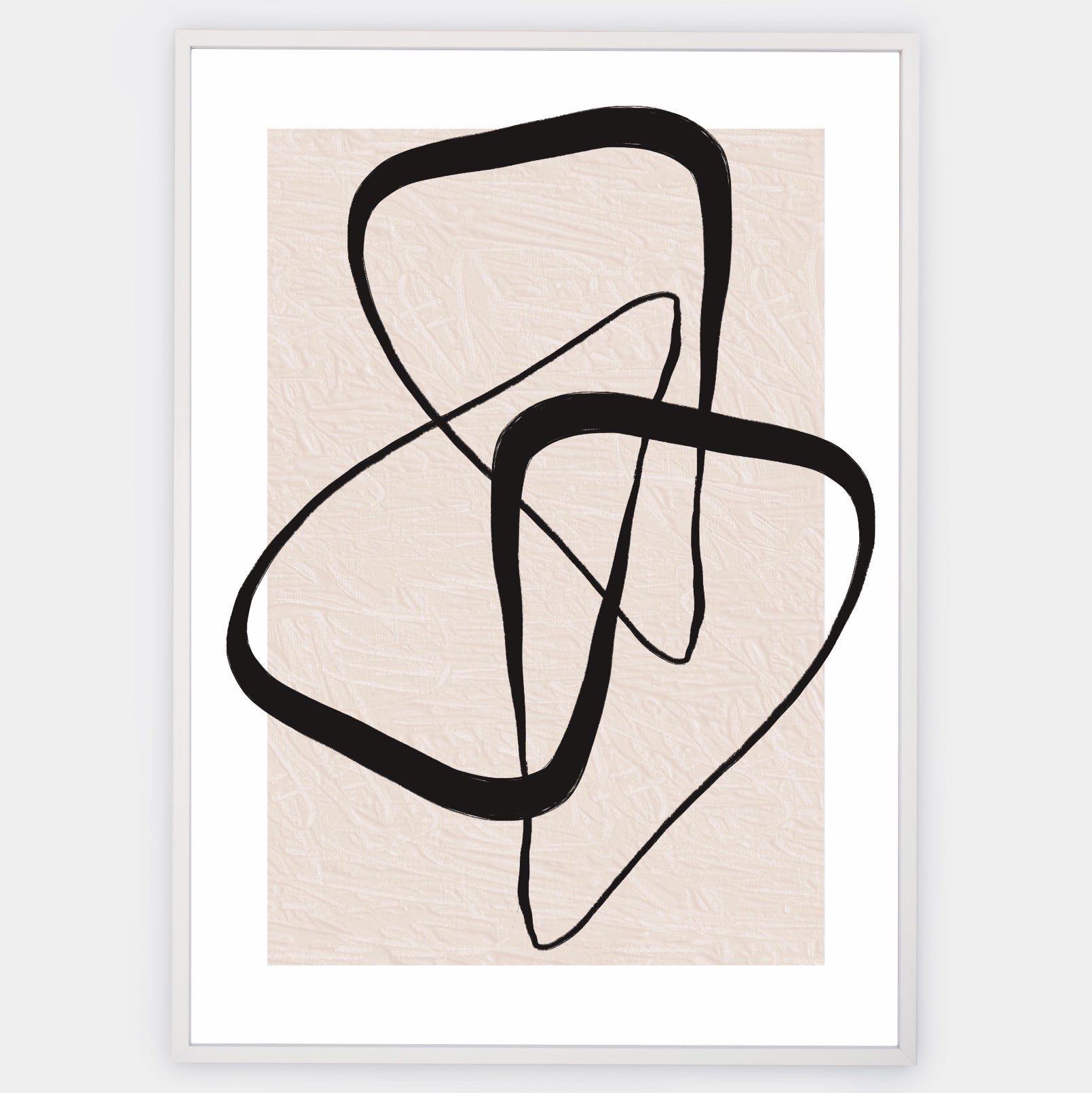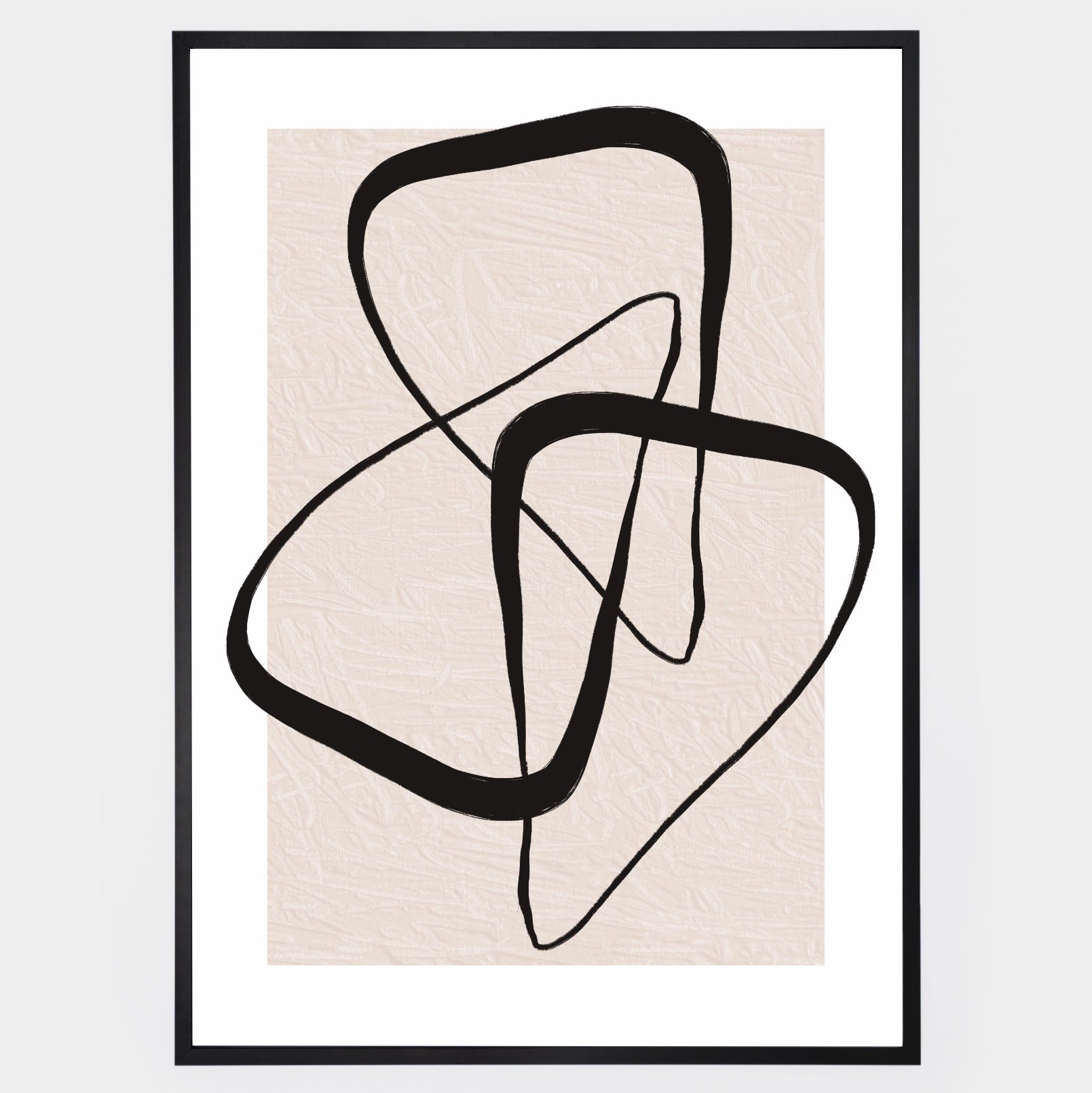 Plakát s abstraktní grafikou "Lines on Beige" No. 3. Poster se prodává bez rámu s možností doobjednat tenký dřevěný rám o tloušťce 1,2 cm. Na výběr jsou tři barevná provedení - bílý , černý a dubový design.
