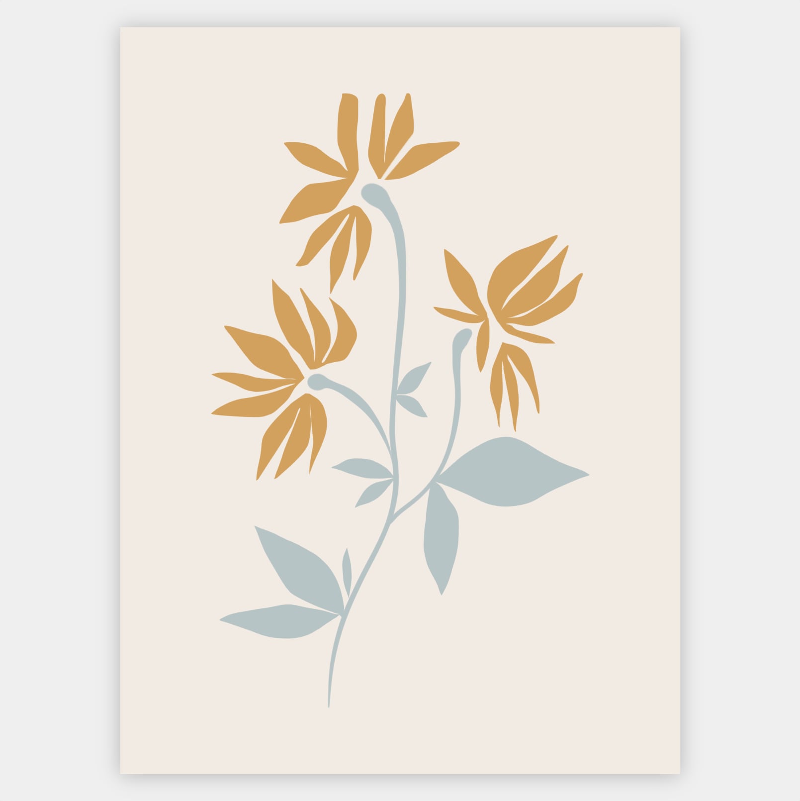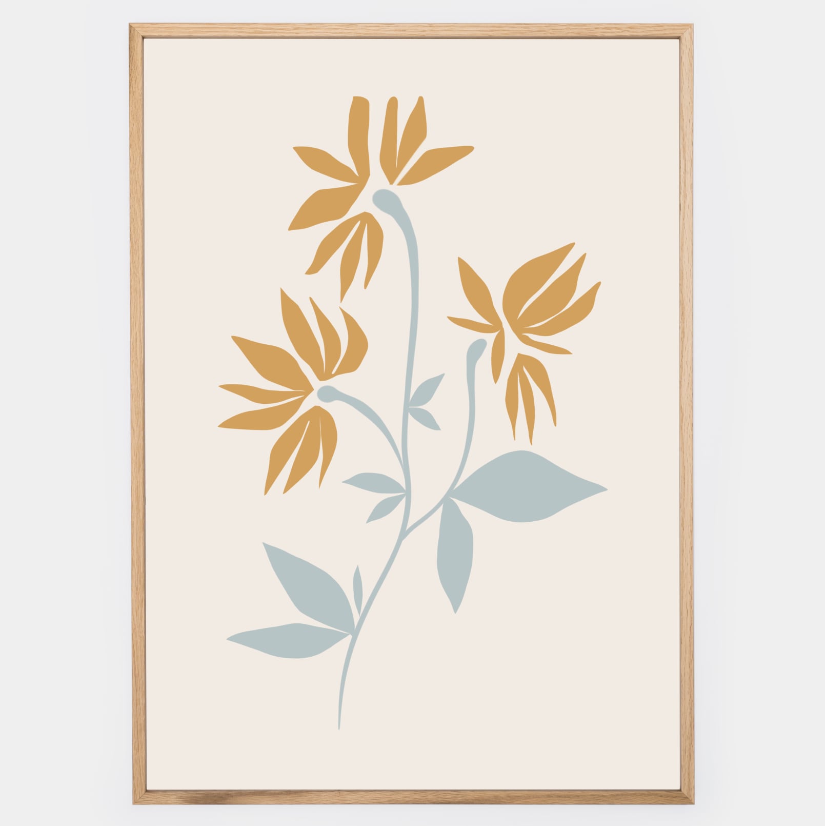 Boho plakát s grafikou "Bloom" No. 1 na béžovém podkladu. Poster se prodává bez rámu s možností doobjednat tenký dřevěný rám o tloušťce 1,2 cm. Na výběr jsou tři barevná provedení - bílý , černý a dubový design.