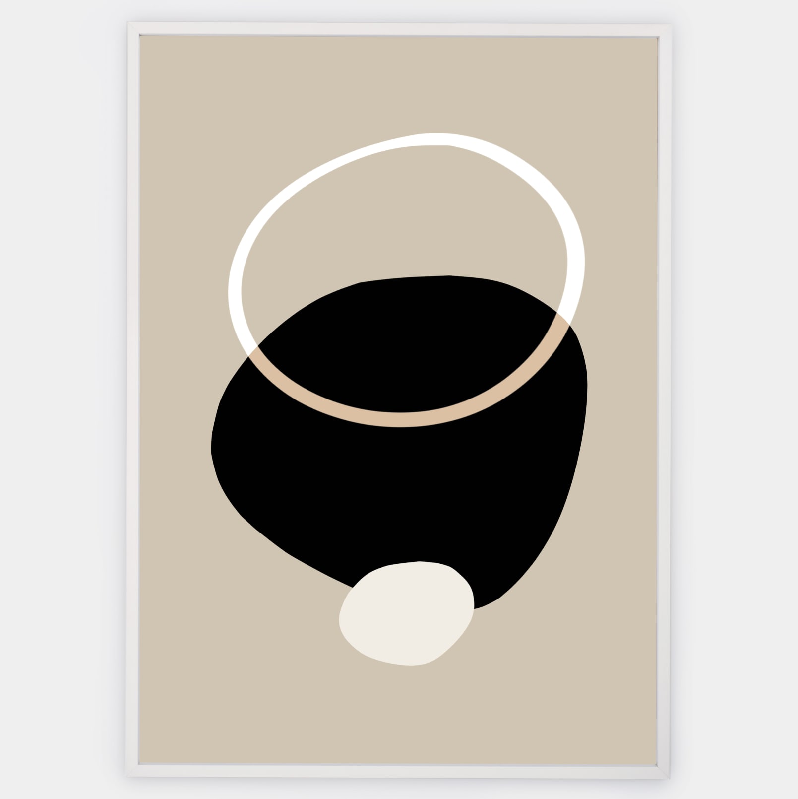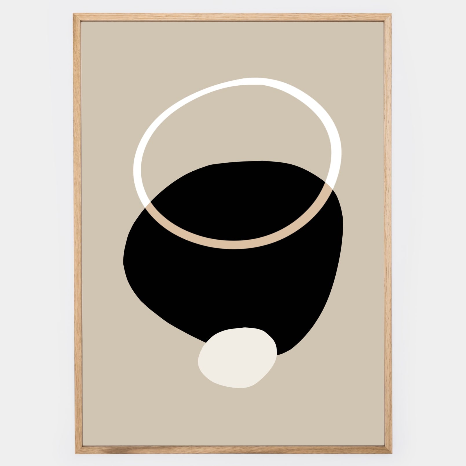 Boho plakát s grafikou "Circles" na béžovém podkladu. Poster se prodává bez rámu s možností doobjednat tenký dřevěný rám o tloušťce 1,2 cm. Na výběr jsou tři barevná provedení - bílý , černý a dubový design.
