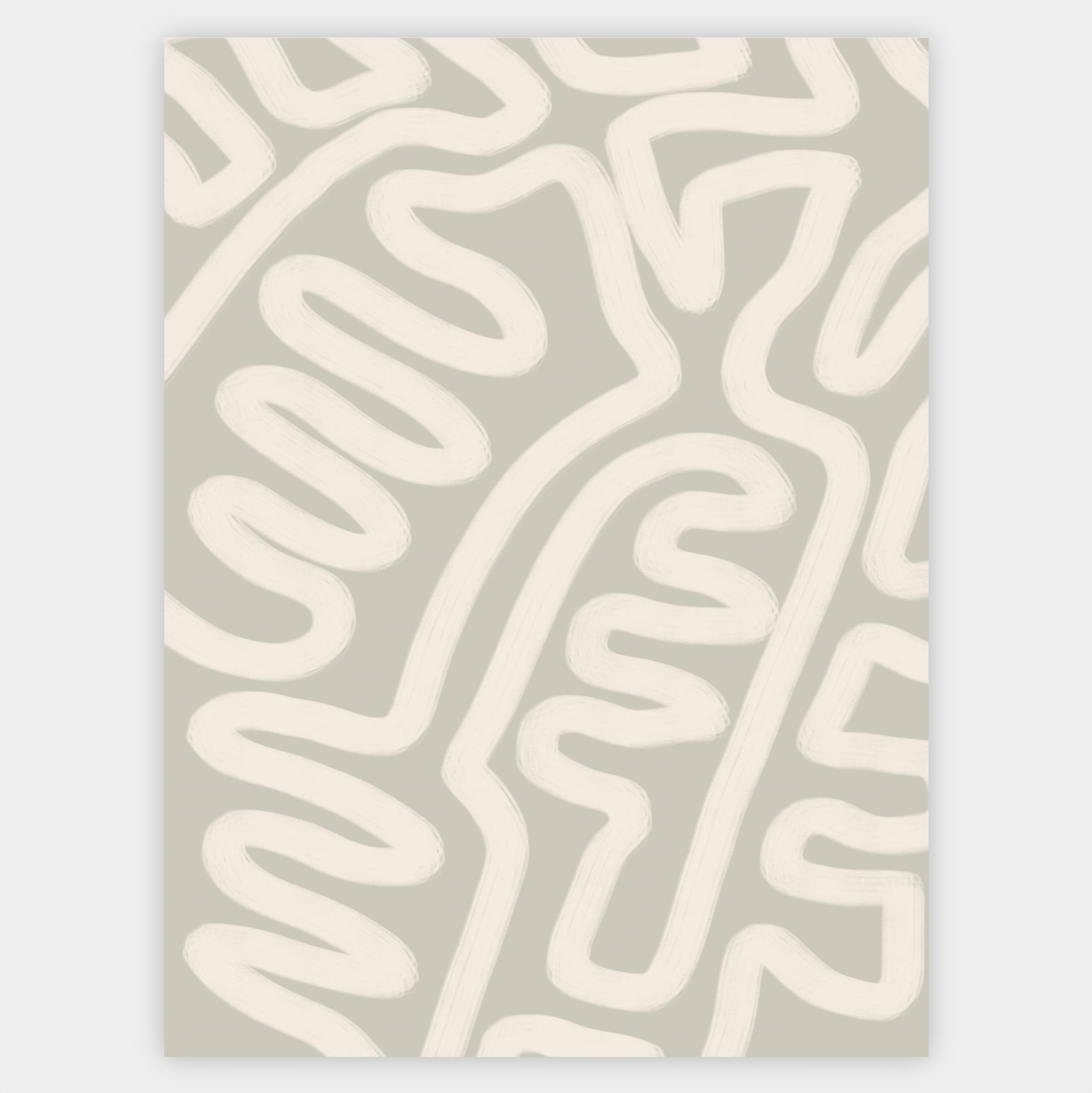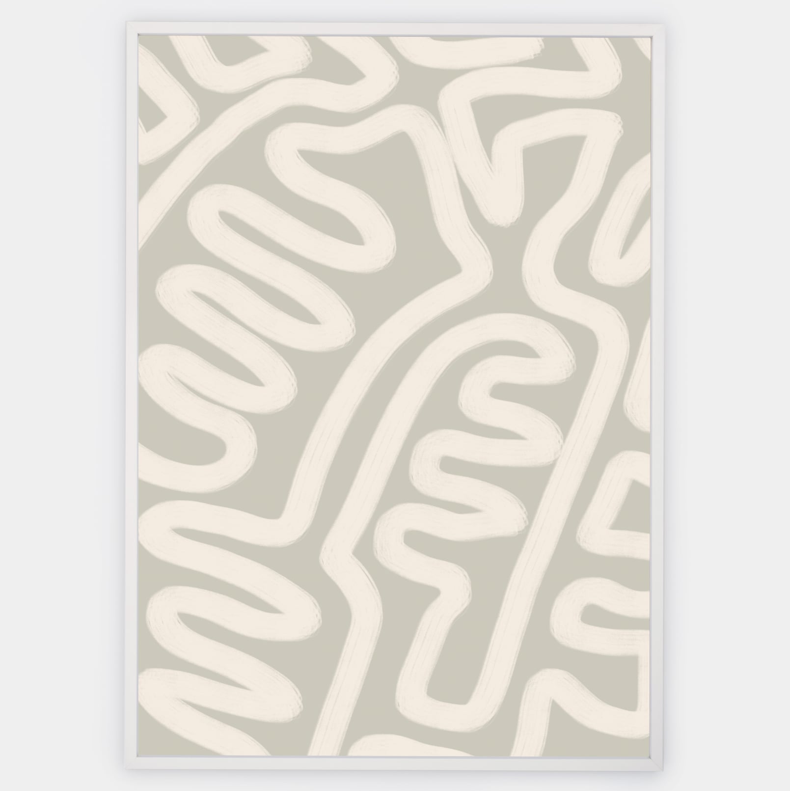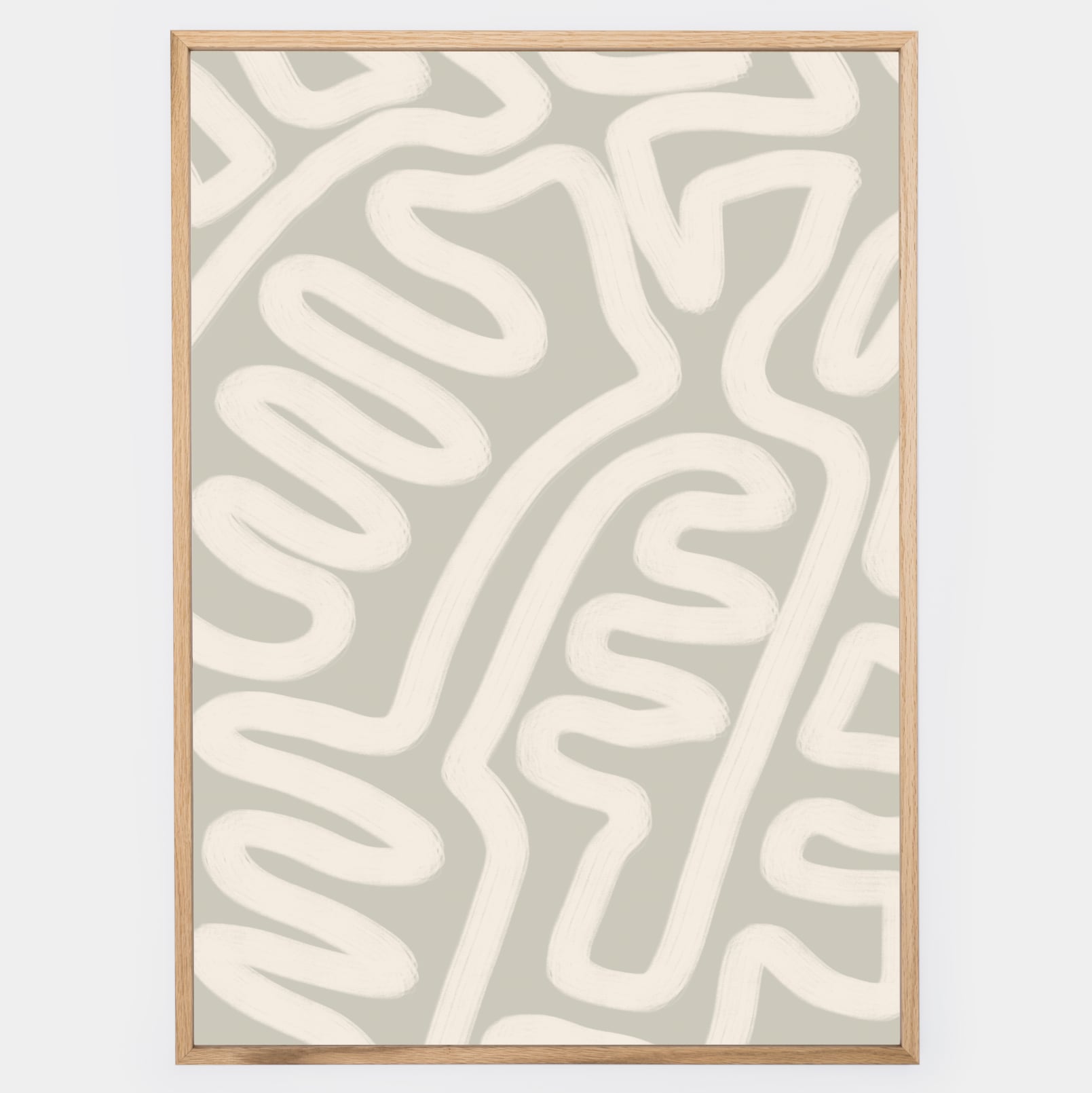 Boho plakát s grafikou "Maze" No. 3 na šalvějově zeleném podkladu. Poster se prodává bez rámu s možností doobjednat tenký dřevěný rám o tloušťce 1,2 cm. Na výběr jsou tři barevná provedení - bílý , černý a dubový design.