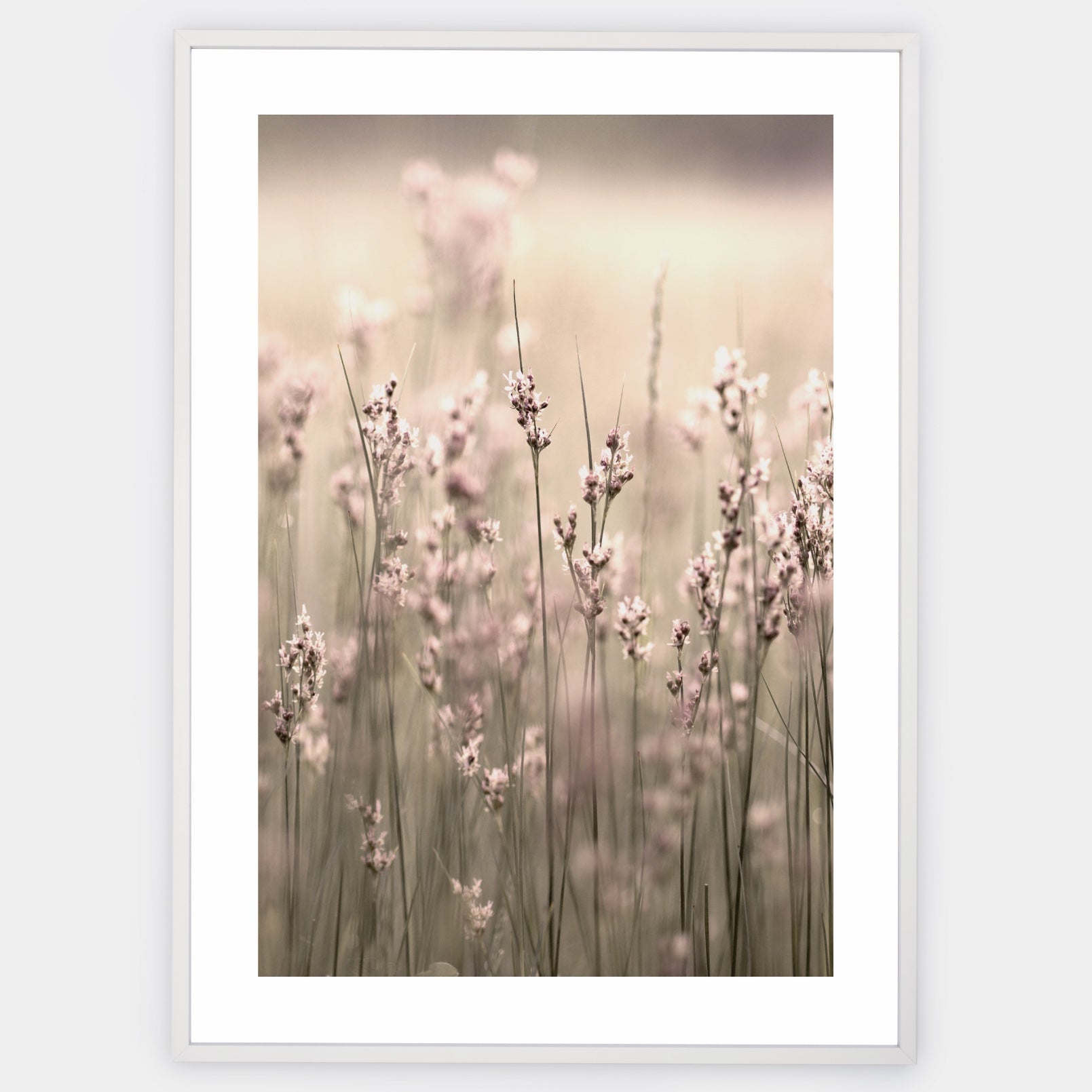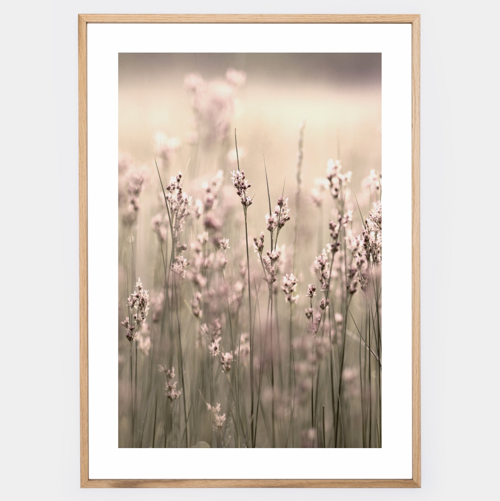 Boho plakát s fotografií kvetoucí trávy. Elegantní bílý okraj je součástí printu. Poster se prodává bez rámu s možností doobjednat tenký dřevěný rám o tloušťce 1,2 cm. Na výběr jsou tři barevná provedení - bílý , černý a dubový design.