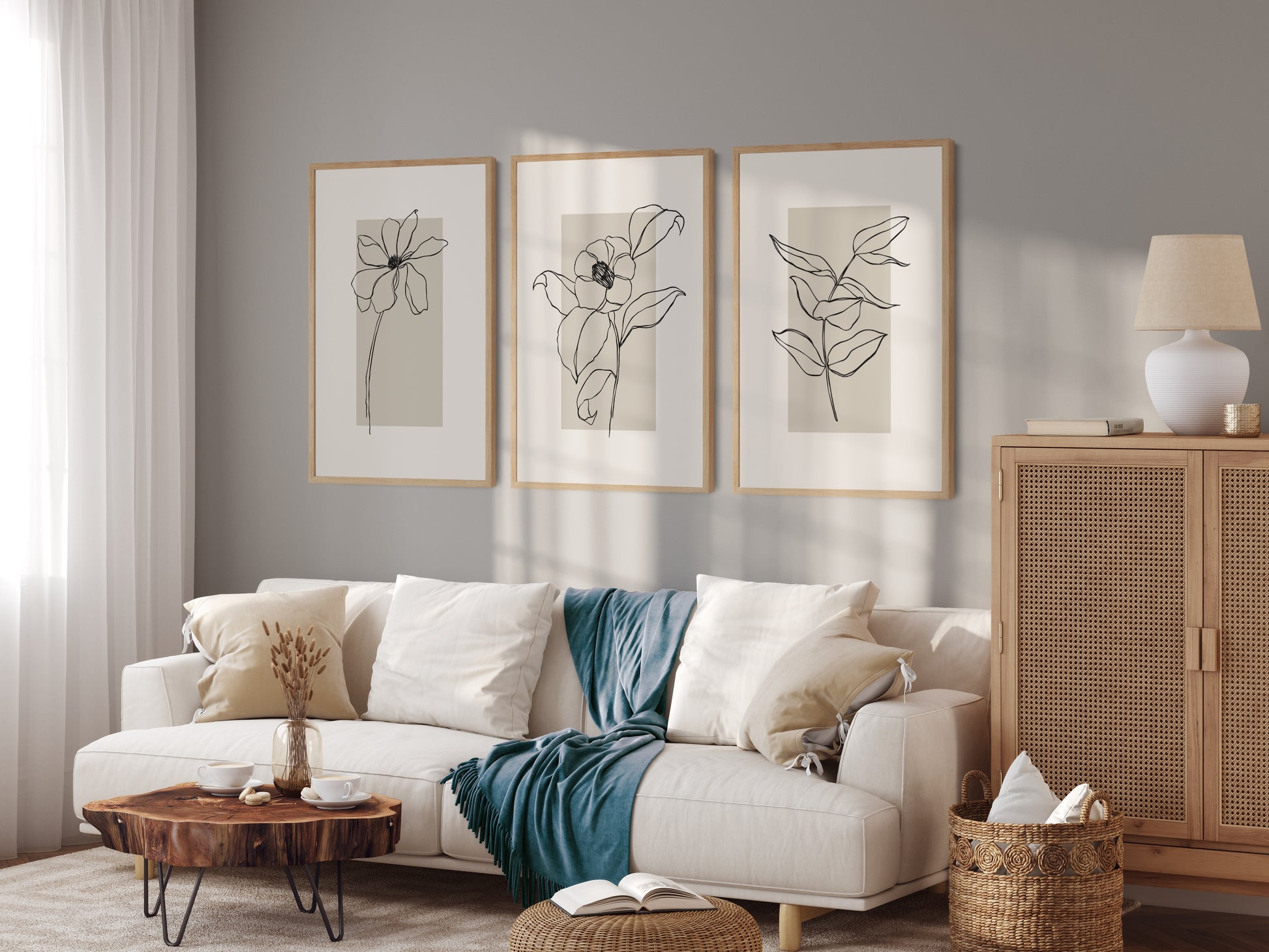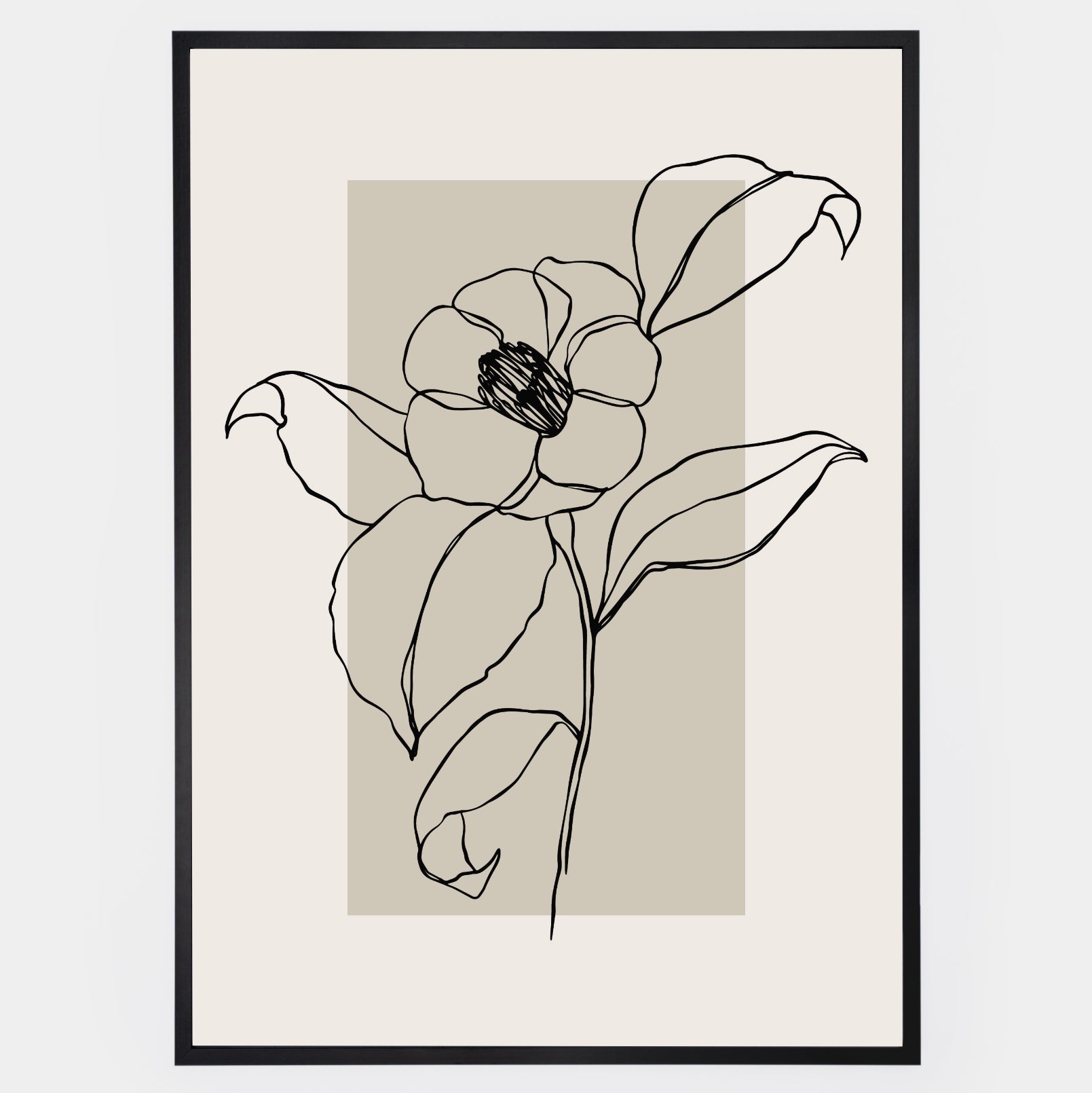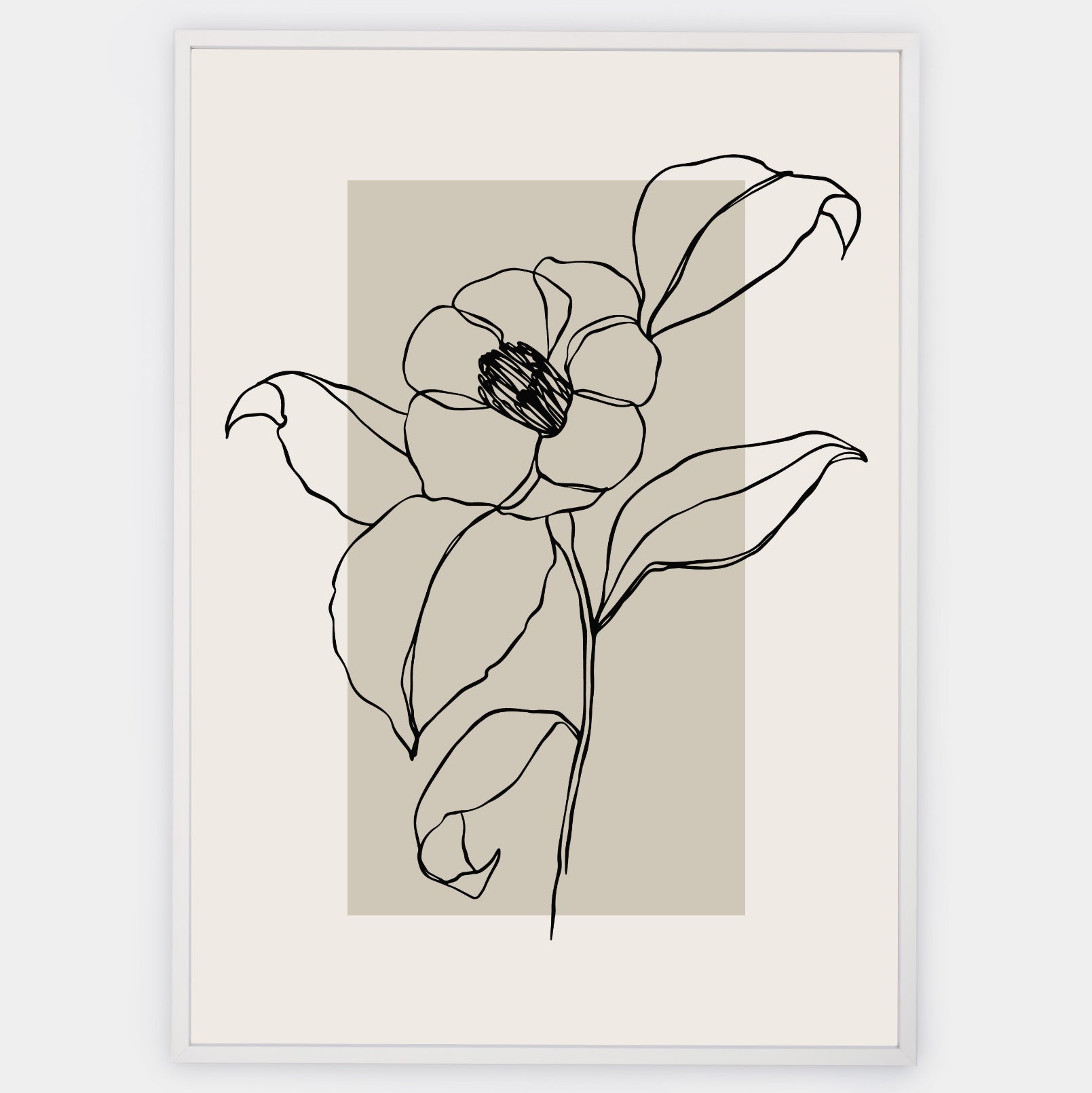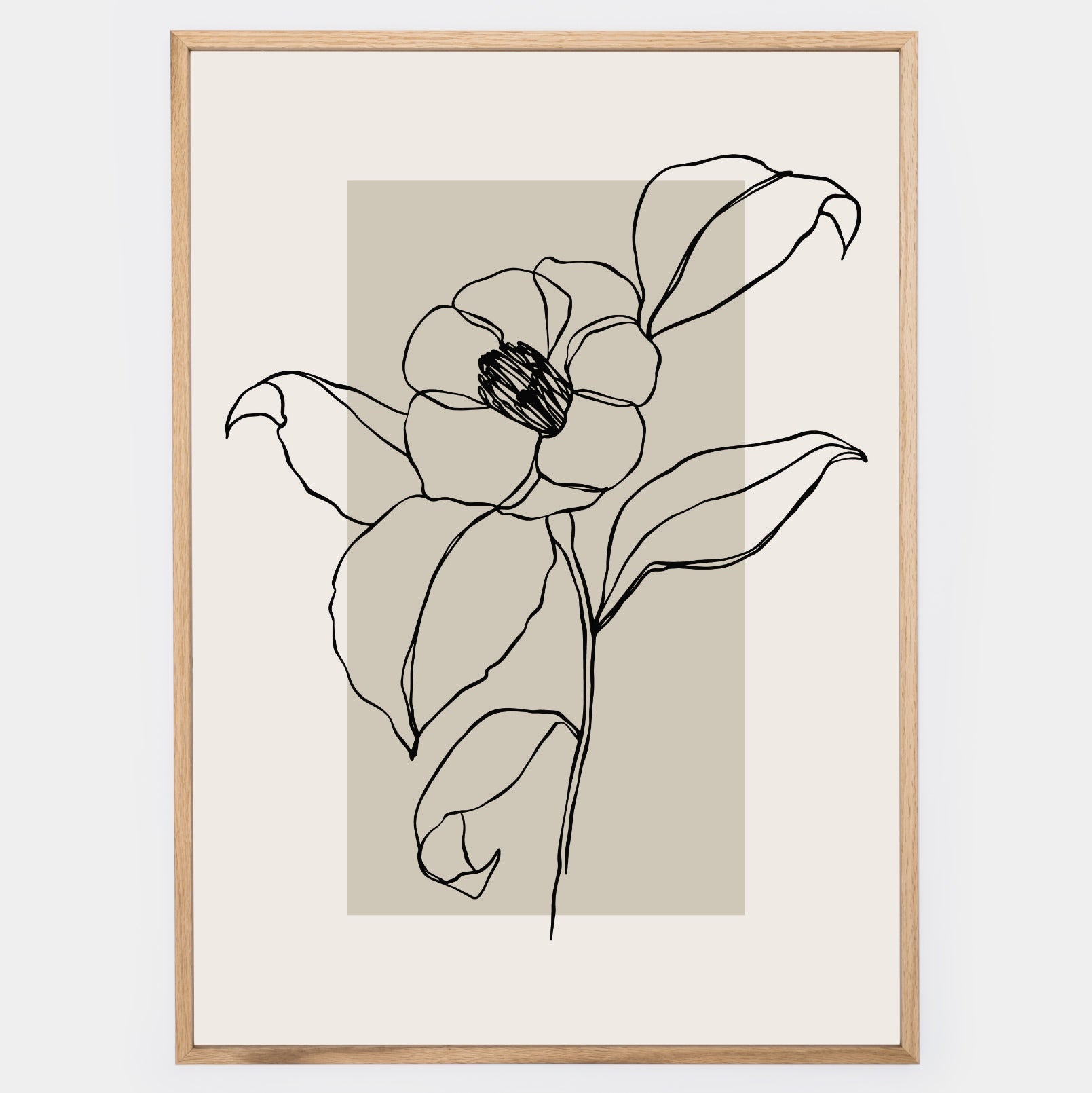 Boho plakát s grafikou kvetoucí rostliny na béžovém podkladu. Poster se prodává bez rámu s možností doobjednat tenký dřevěný rám o tloušťce 1,2 cm. Na výběr jsou tři barevná provedení - bílý , černý a dubový design.