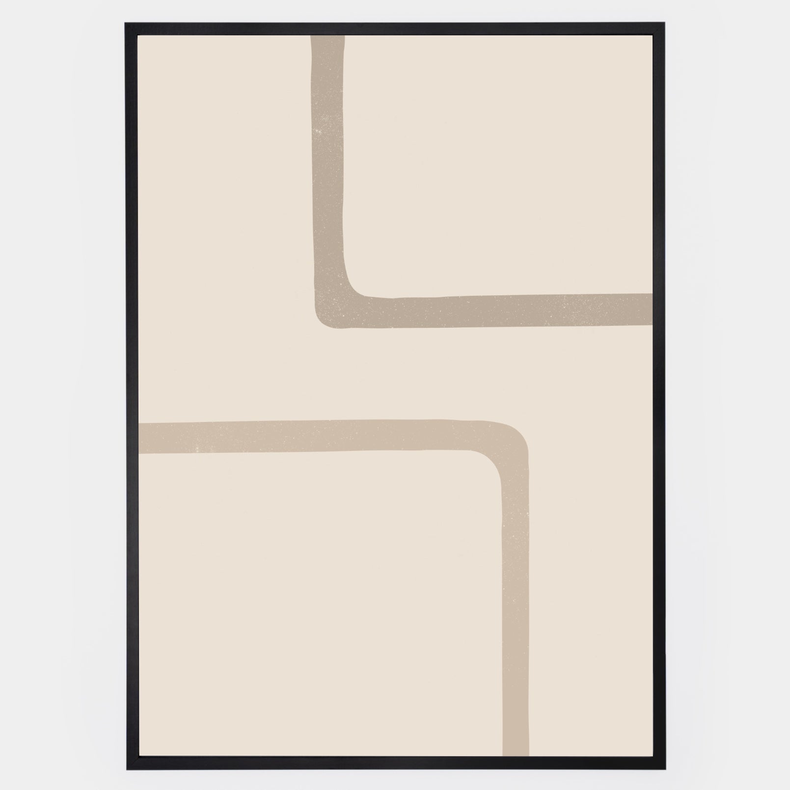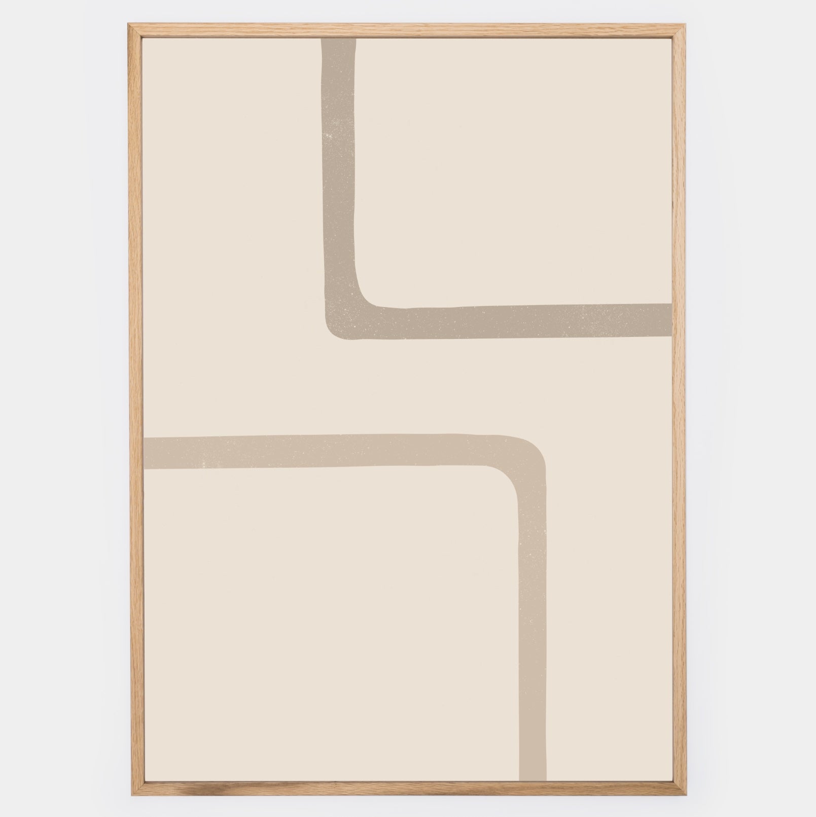 Boho plakát se čtvercovými geometrickými tvary v béžových odstínech No. 2. Poster se prodává bez rámu s možností doobjednat tenký dřevěný rám o tloušťce 1,2 cm. Na výběr jsou tři barevná provedení - bílý , černý a dubový design.