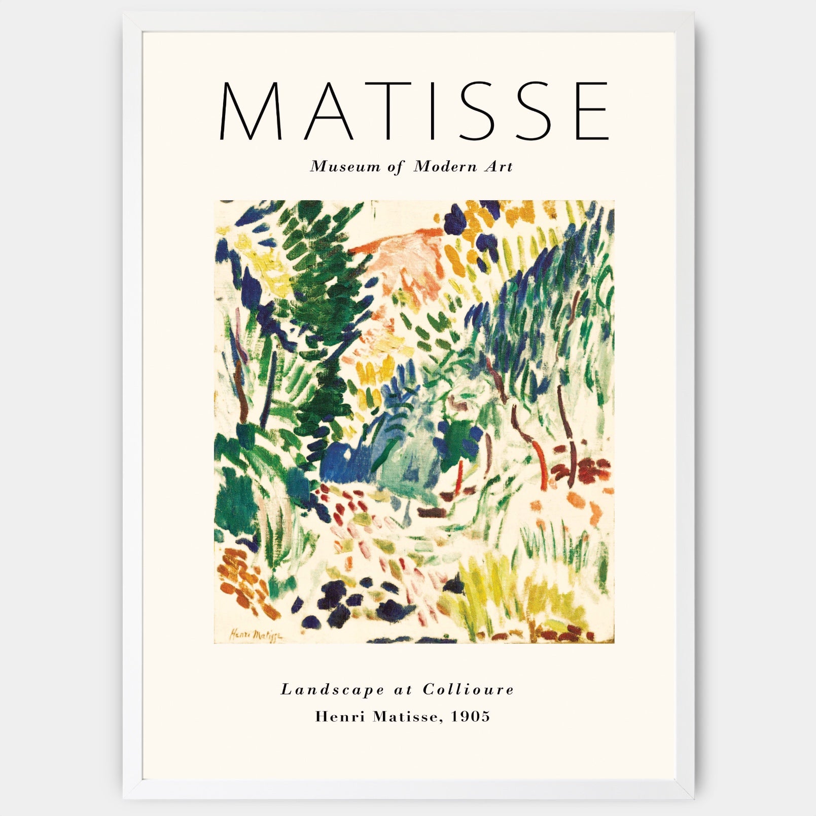 Remake výstavního plakátu z roku 1905 s motivem díla Henriho Landscape at Collioure. Poster se prodává bez rámu s možností doobjednat tenký dřevěný rám o tloušťce 1,2 cm. Na výběr jsou tři barevná provedení - bílý , černý a dubový design.