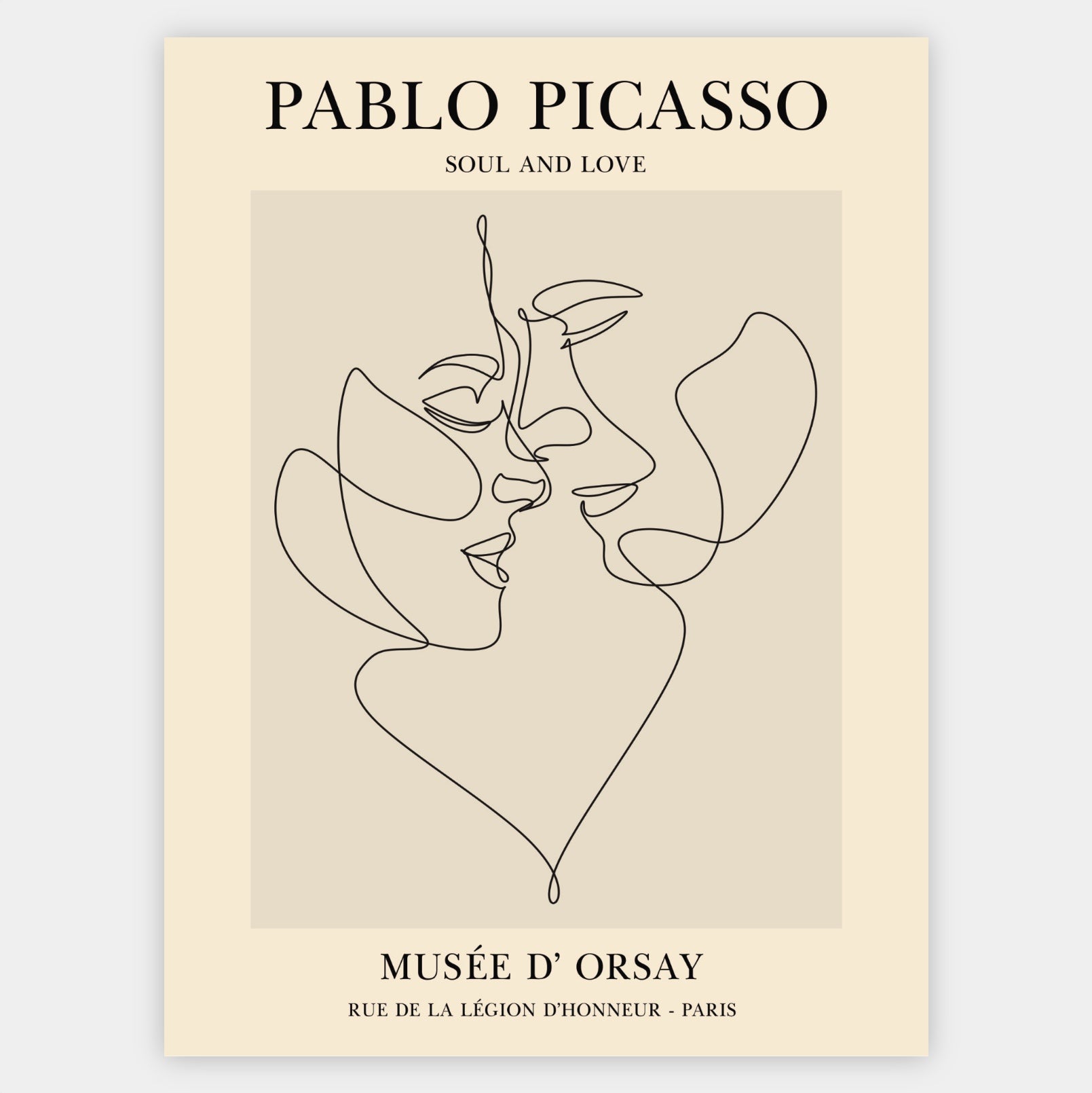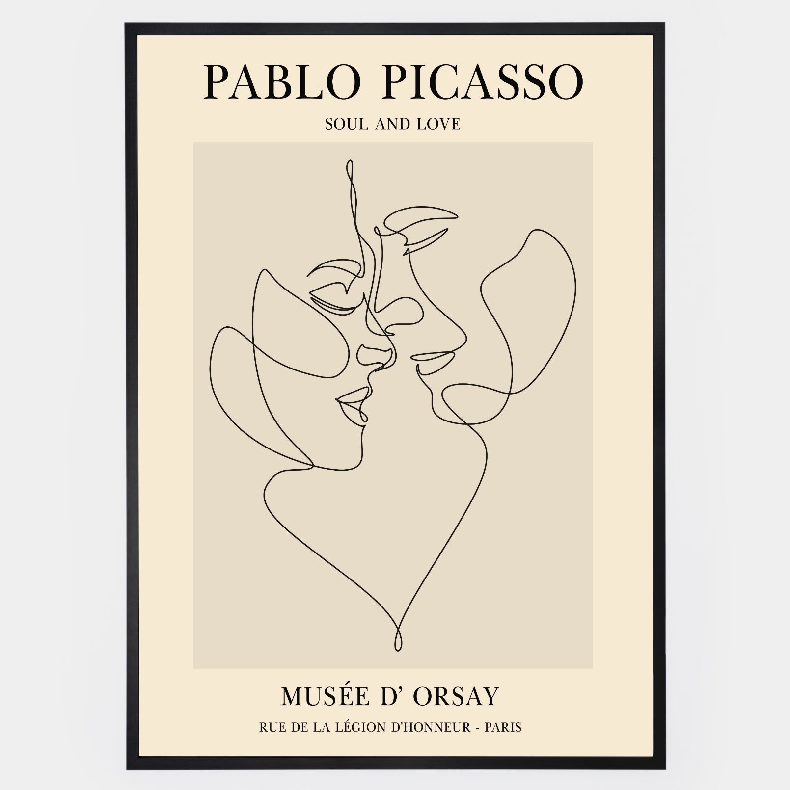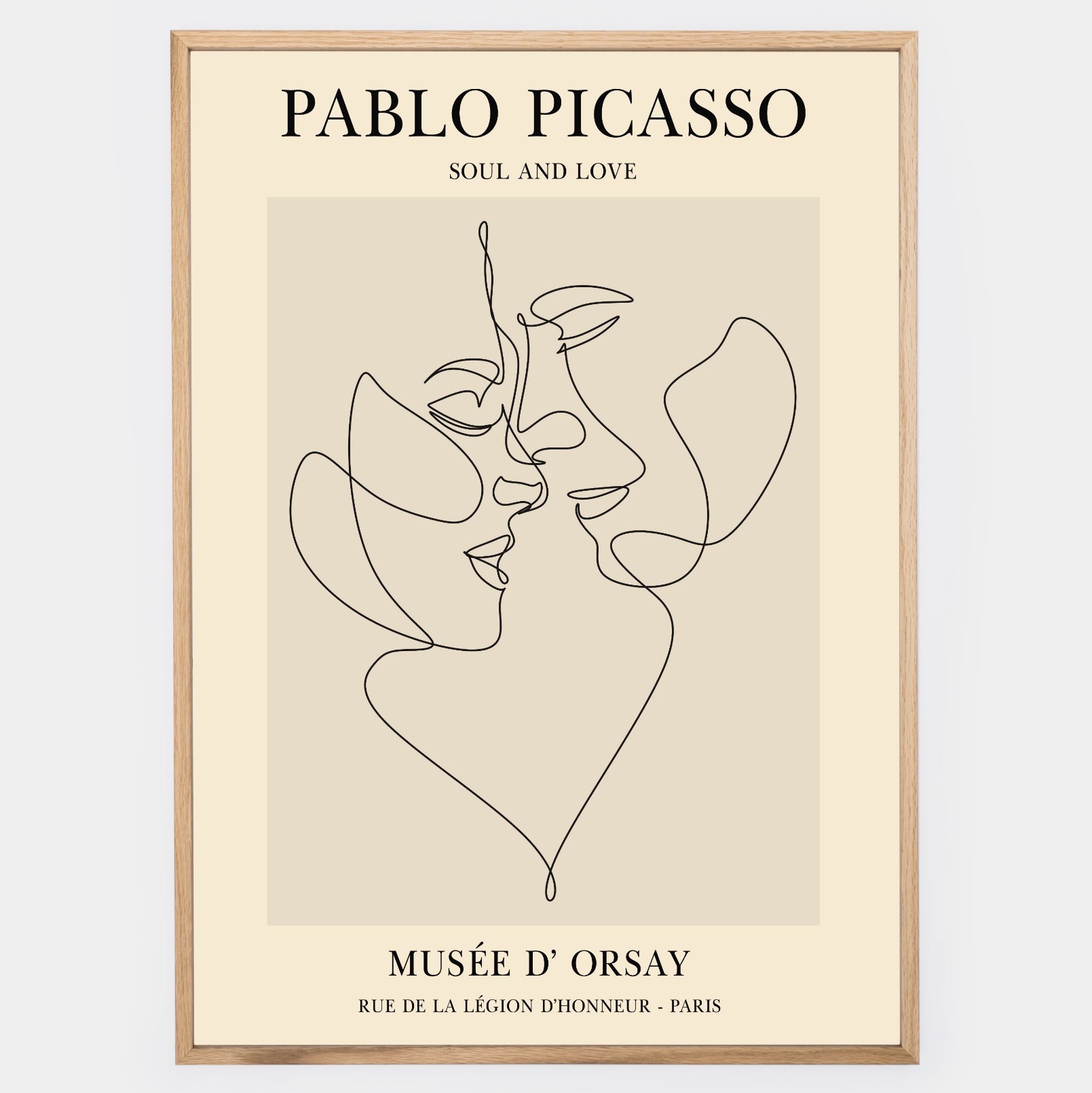 Plakát minimalistické kresby dvou tváří na motiv od Pabla Picassa. Poster se prodává bez rámu s možností doobjednat tenký dřevěný rám o tloušťce 1,2 cm. Na výběr jsou tři barevná provedení - bílý , černý a dubový design.