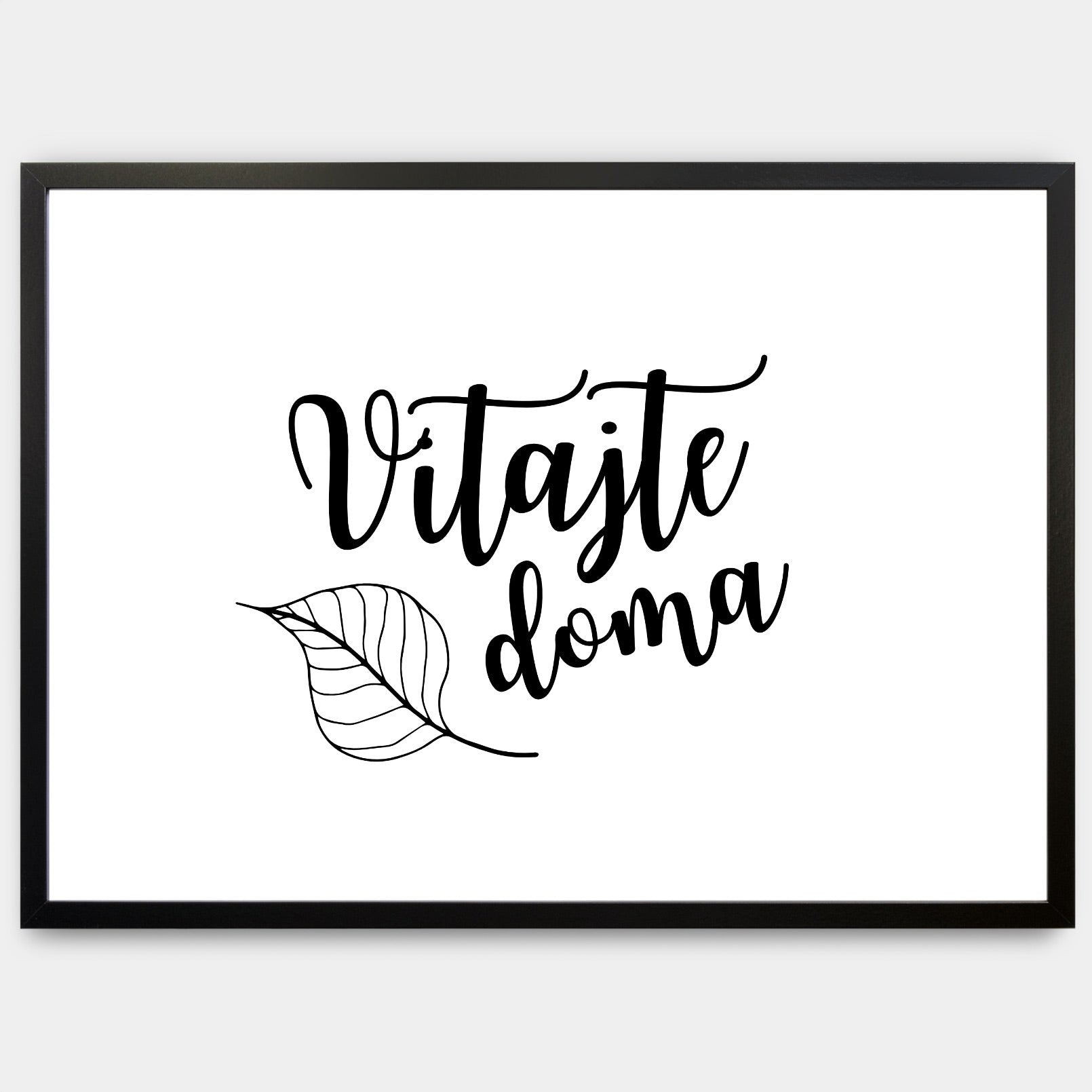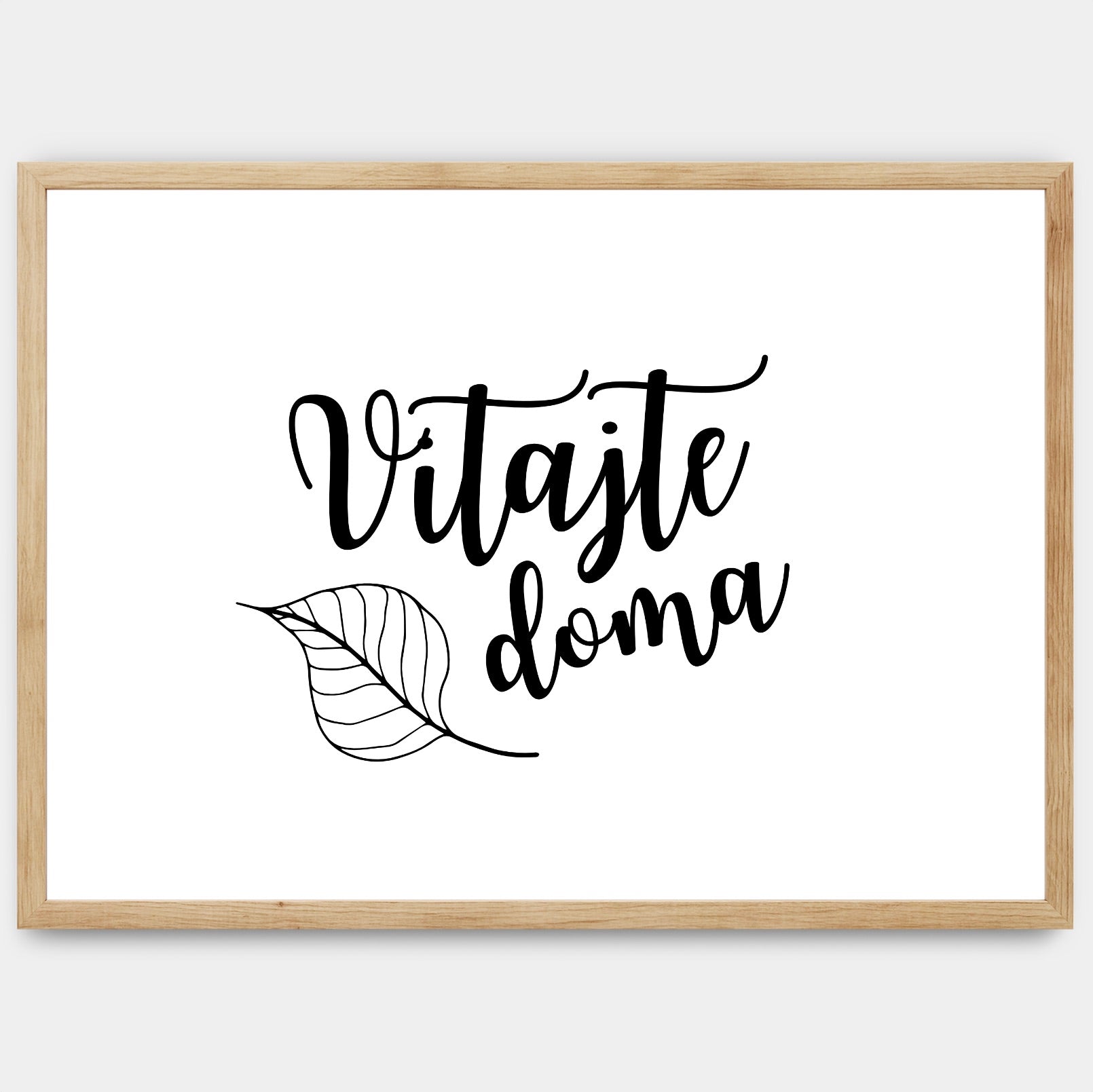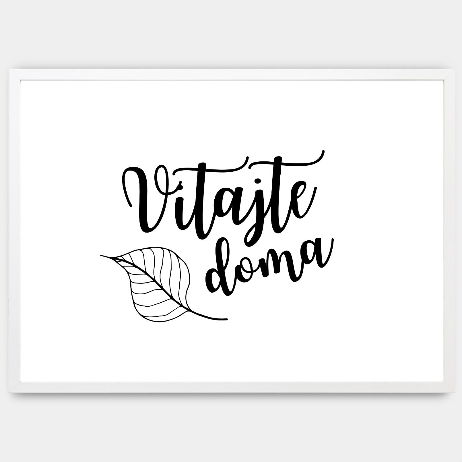 Plakát s moderním kaligrafickým nápisem Vítejte doma ideální pro vstupní prostory. Poster se prodává bez rámu s možností doobjednat tenký dřevěný rám o tloušťce 1,2 cm. Na výběr jsou tři barevná provedení - bílý , černý a dubový design.