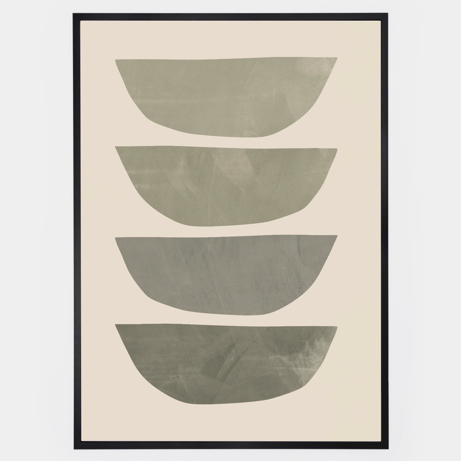 Boho plagát s grafikou štyroch misiek na béžovom podklade. Poster sa predáva bez rámu s možnosťou doobjednať tenký drevený rám o hrúbke 1,2 cm. Na výber sú tri farebné prevedenia - biely, čierny a dubový dizajn.