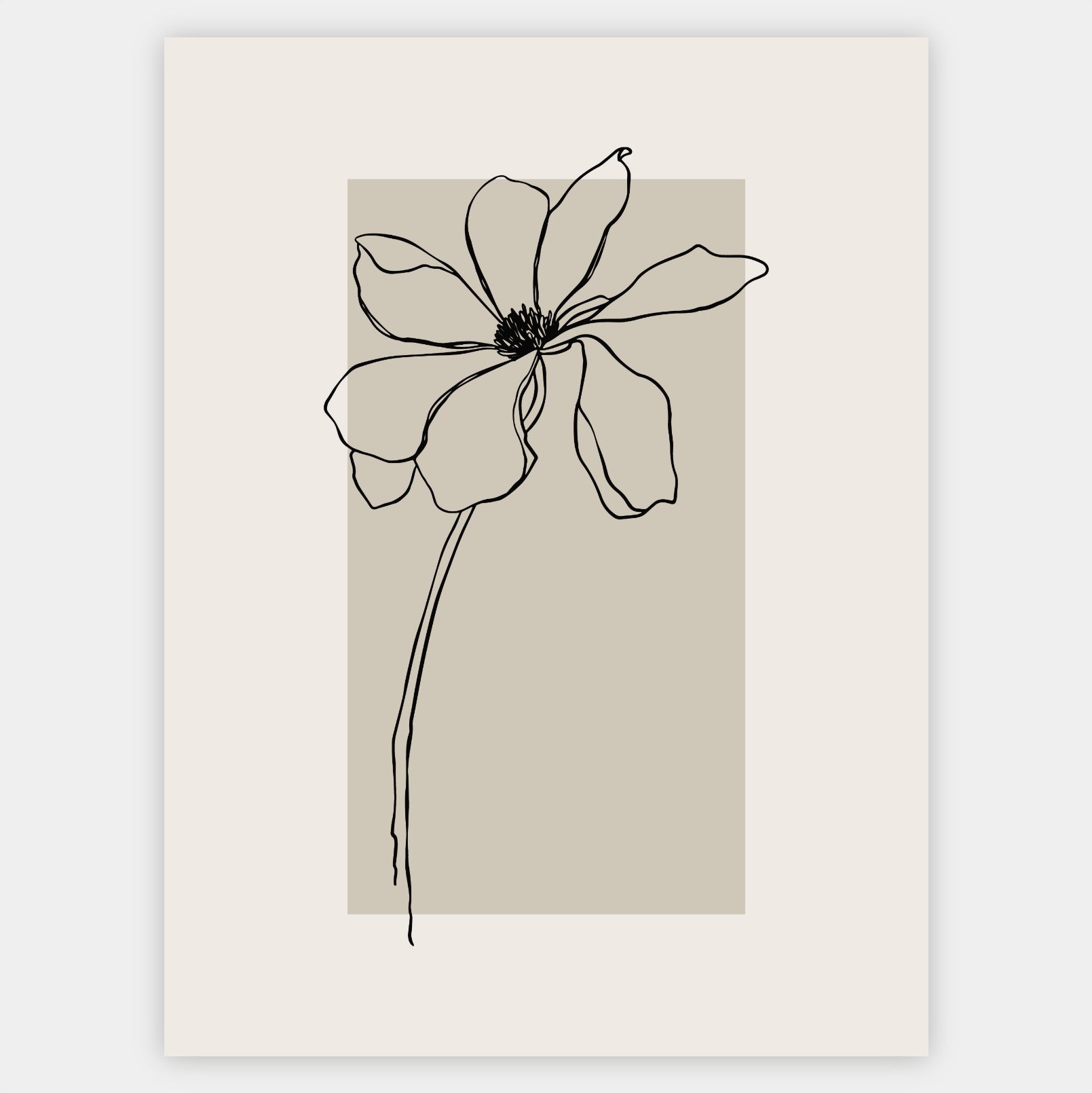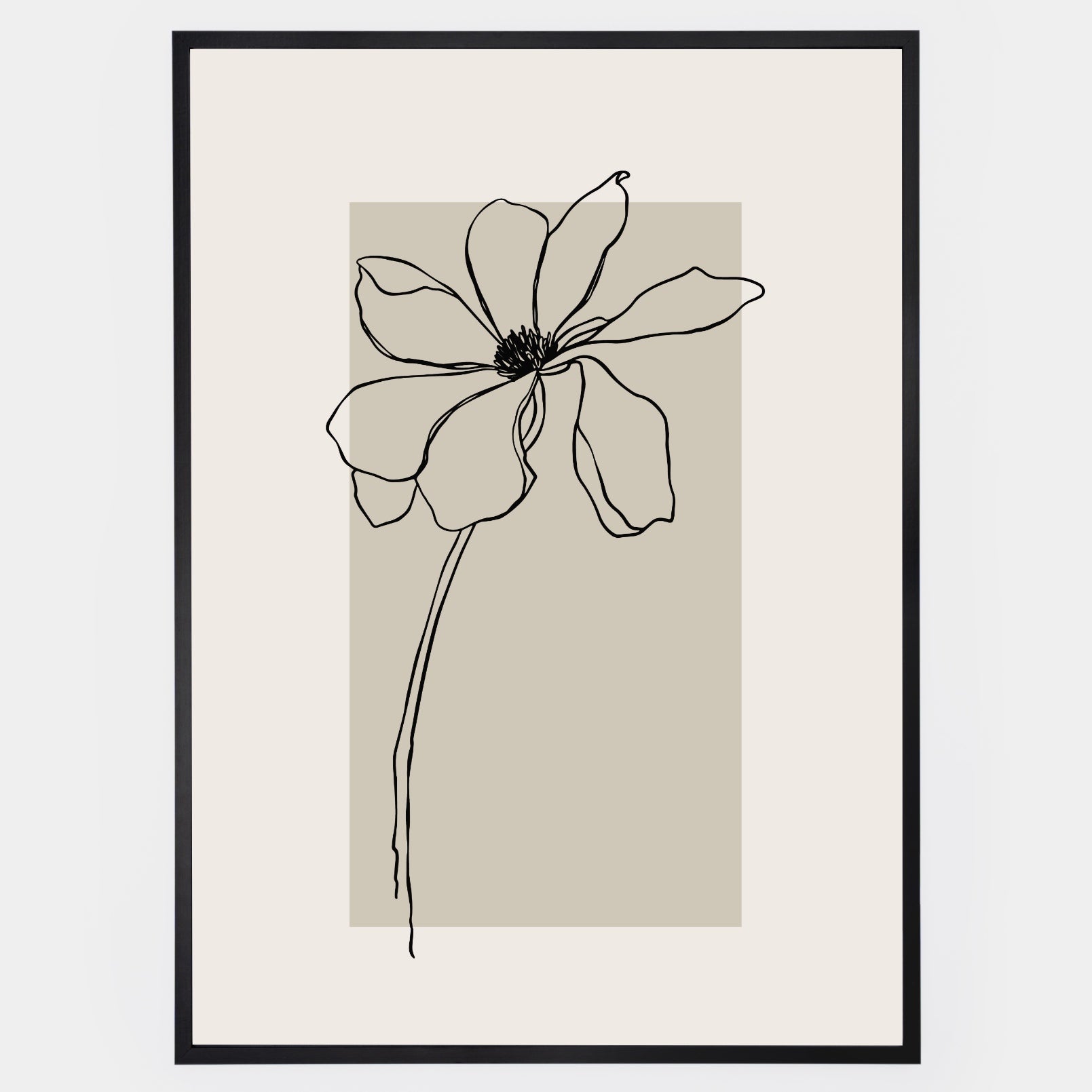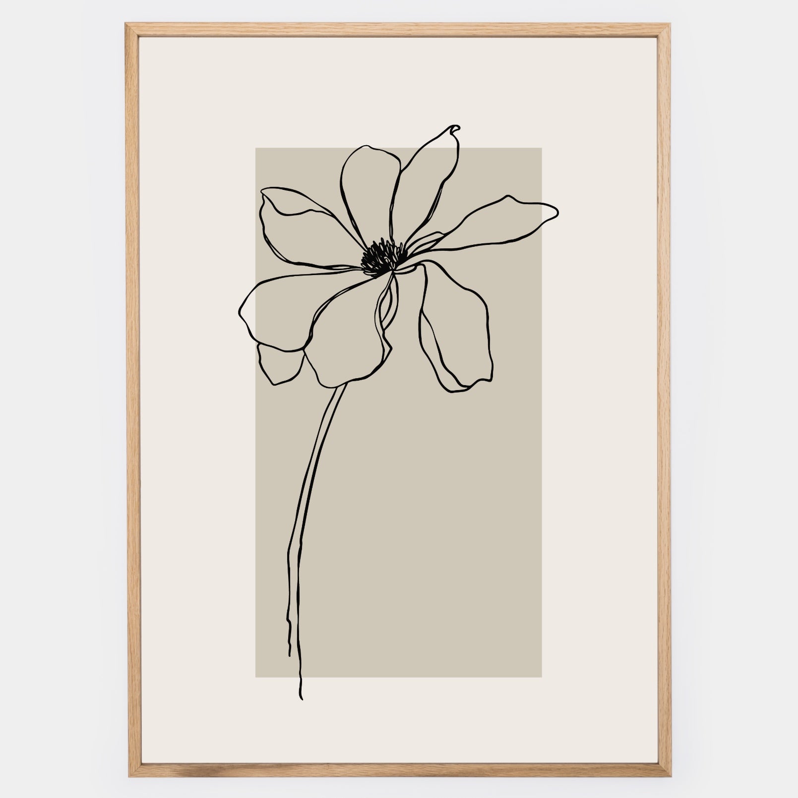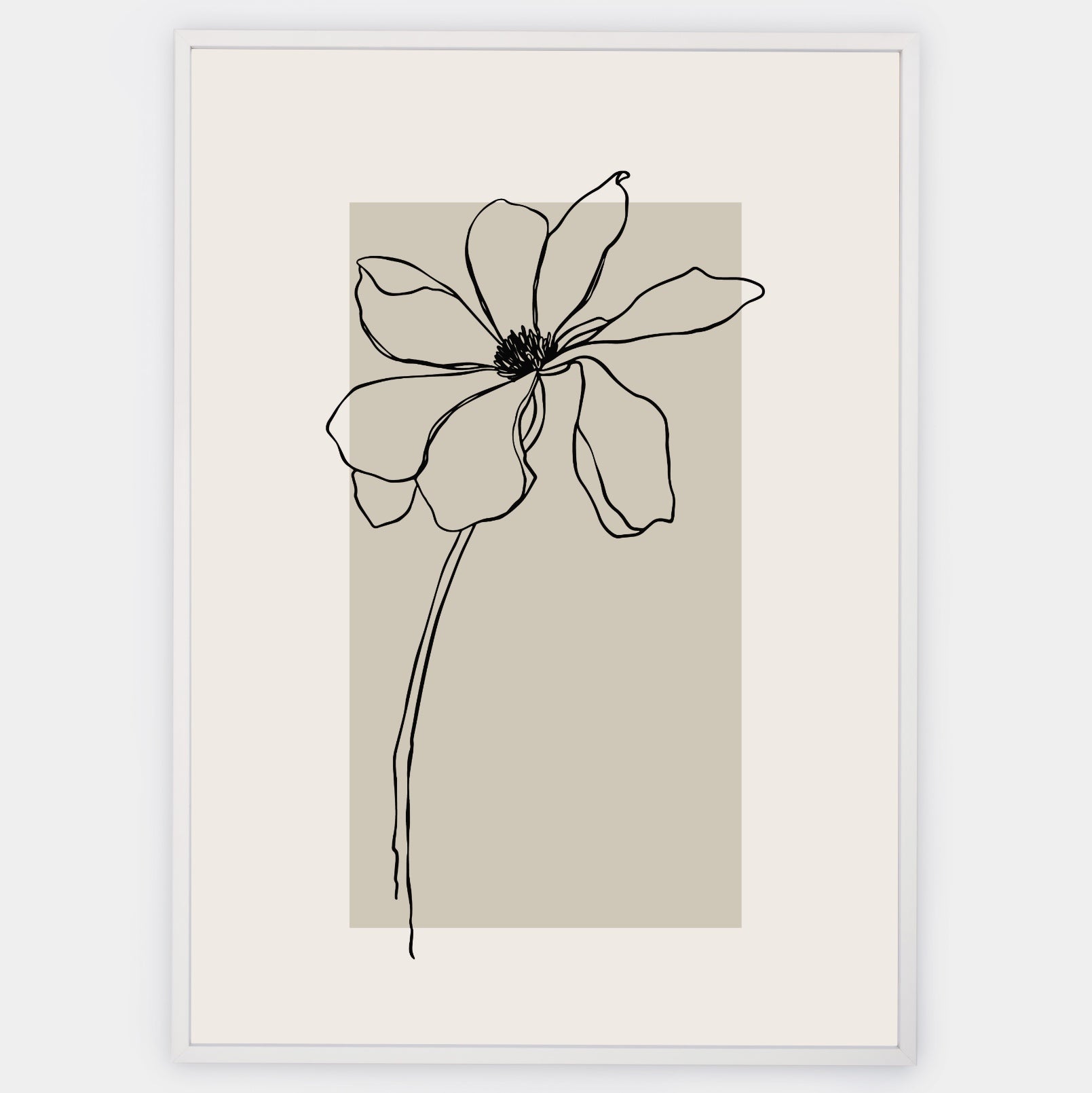 Boho plagát s grafikou kvetu na béžovom podklade. Poster sa predáva bez rámu s možnosťou doobjednať tenký drevený rám o hrúbke 1,2 cm. Na výber sú tri farebné prevedenia - biely, čierny a dubový dizajn.