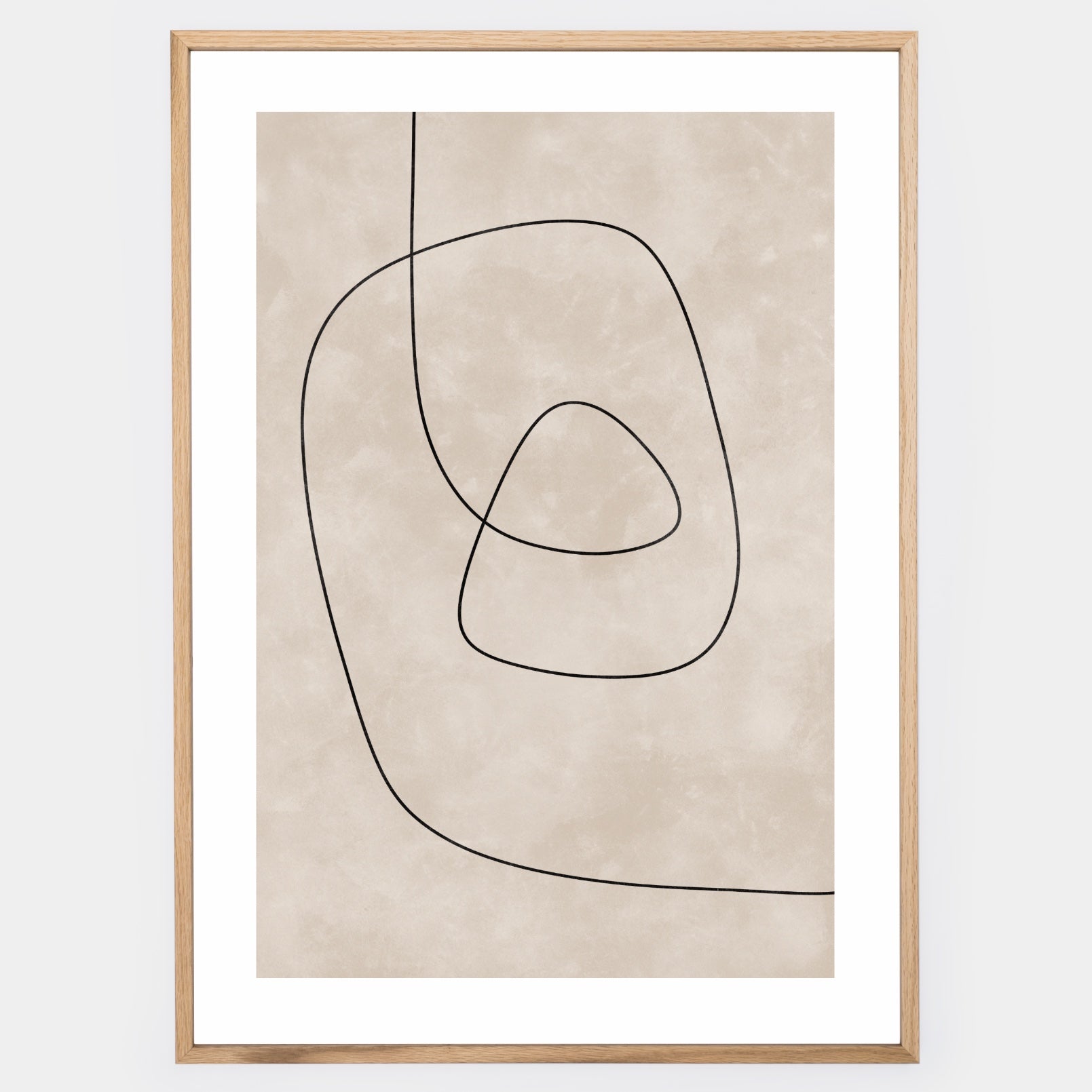 Boho plagát s line art grafikou No. 1 na béžovom podklade. Poster sa predáva bez rámu s možnosťou doobjednať tenký drevený rám o hrúbke 1,2 cm. Na výber sú tri farebné prevedenia - biely, čierny a dubový dizajn.
