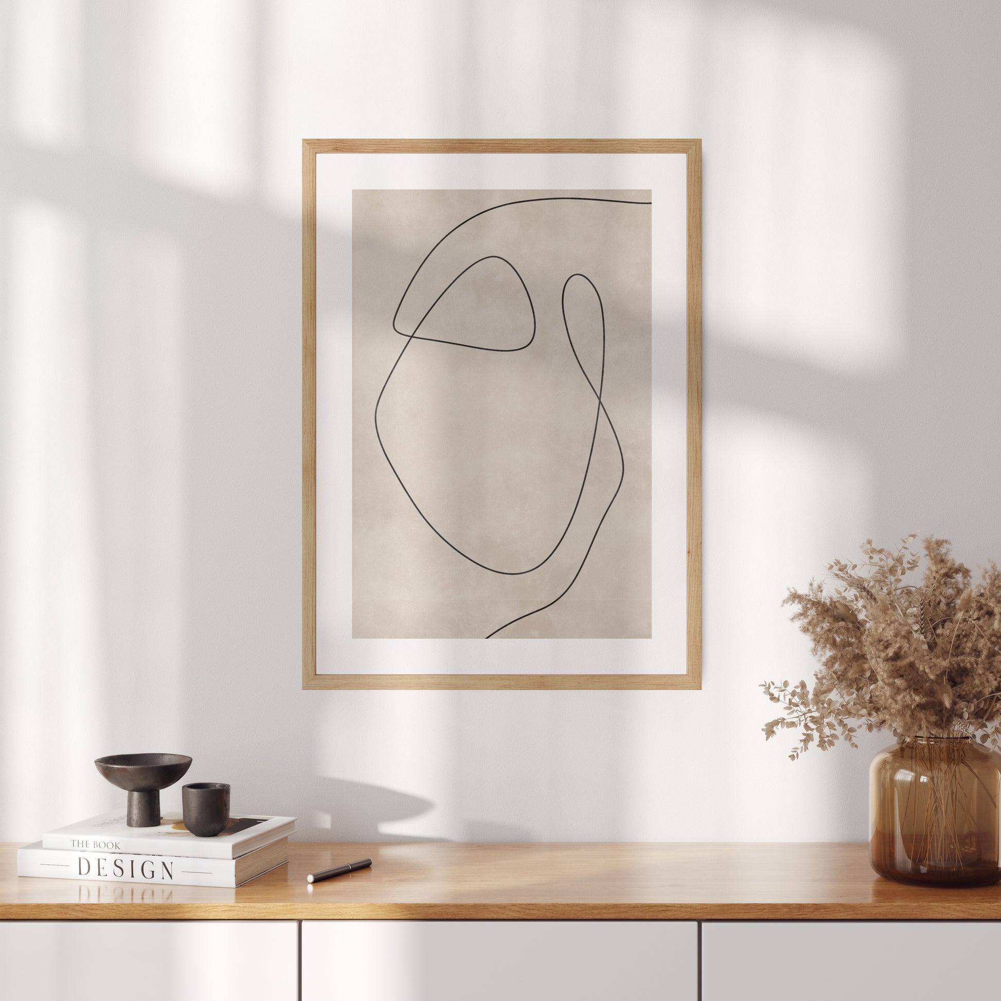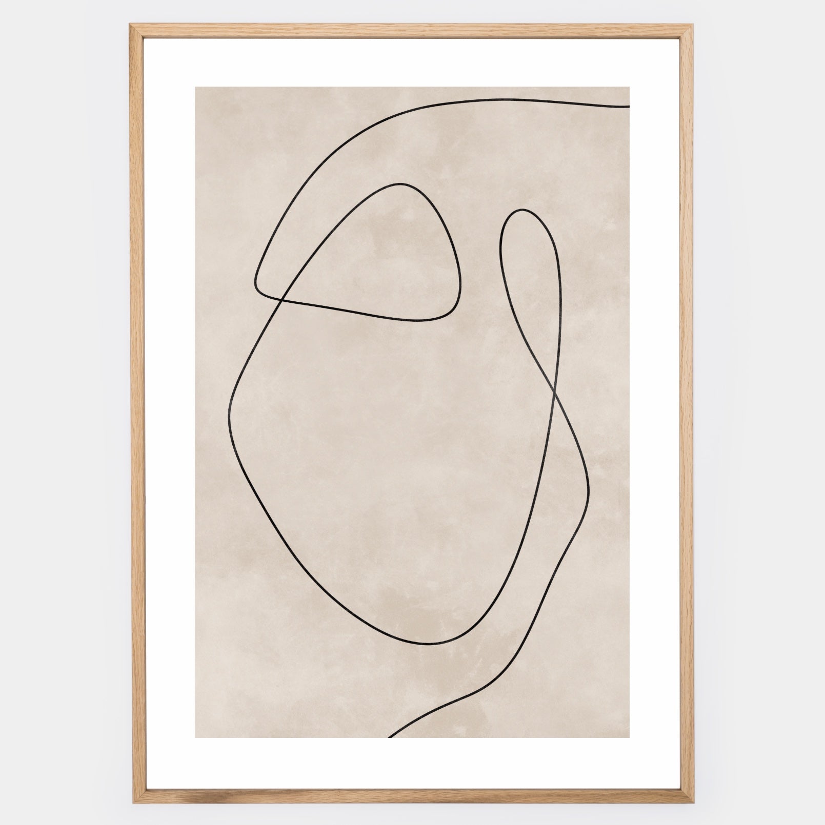 Boho plagát s line art grafikou No. 2 na béžovom podklade. Poster sa predáva bez rámu s možnosťou doobjednať tenký drevený rám o hrúbke 1,2 cm. Na výber sú tri farebné prevedenia - bielyčierny a dubový dizajn.