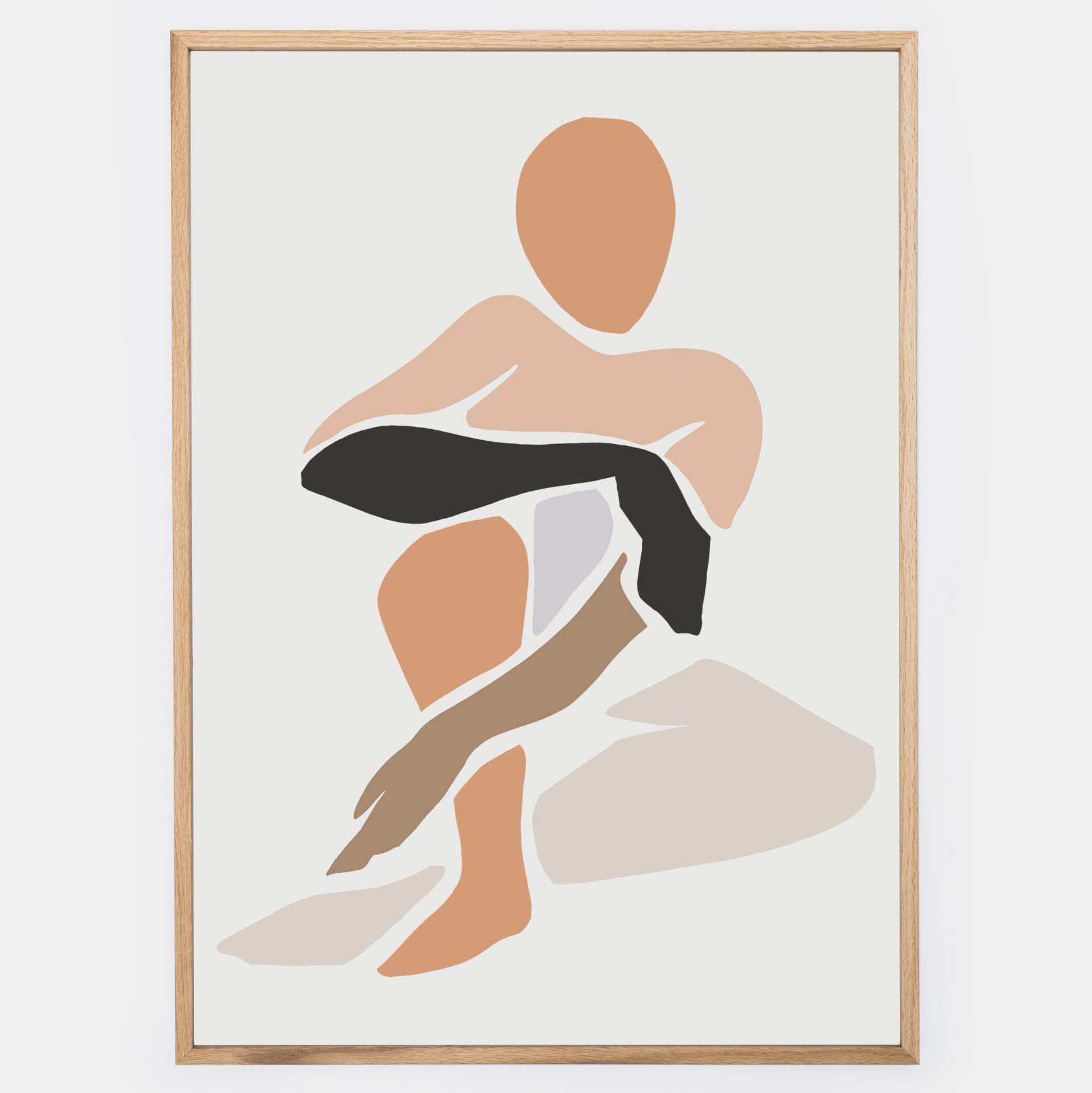 Boho plagát s grafikou "Sense" na sivom podklade. Poster sa predáva bez rámu s možnosťou doobjednať tenký drevený rám o hrúbke 1,2 cm. Na výber sú tri farebné prevedenia - biely, čierny a dubový dizajn.