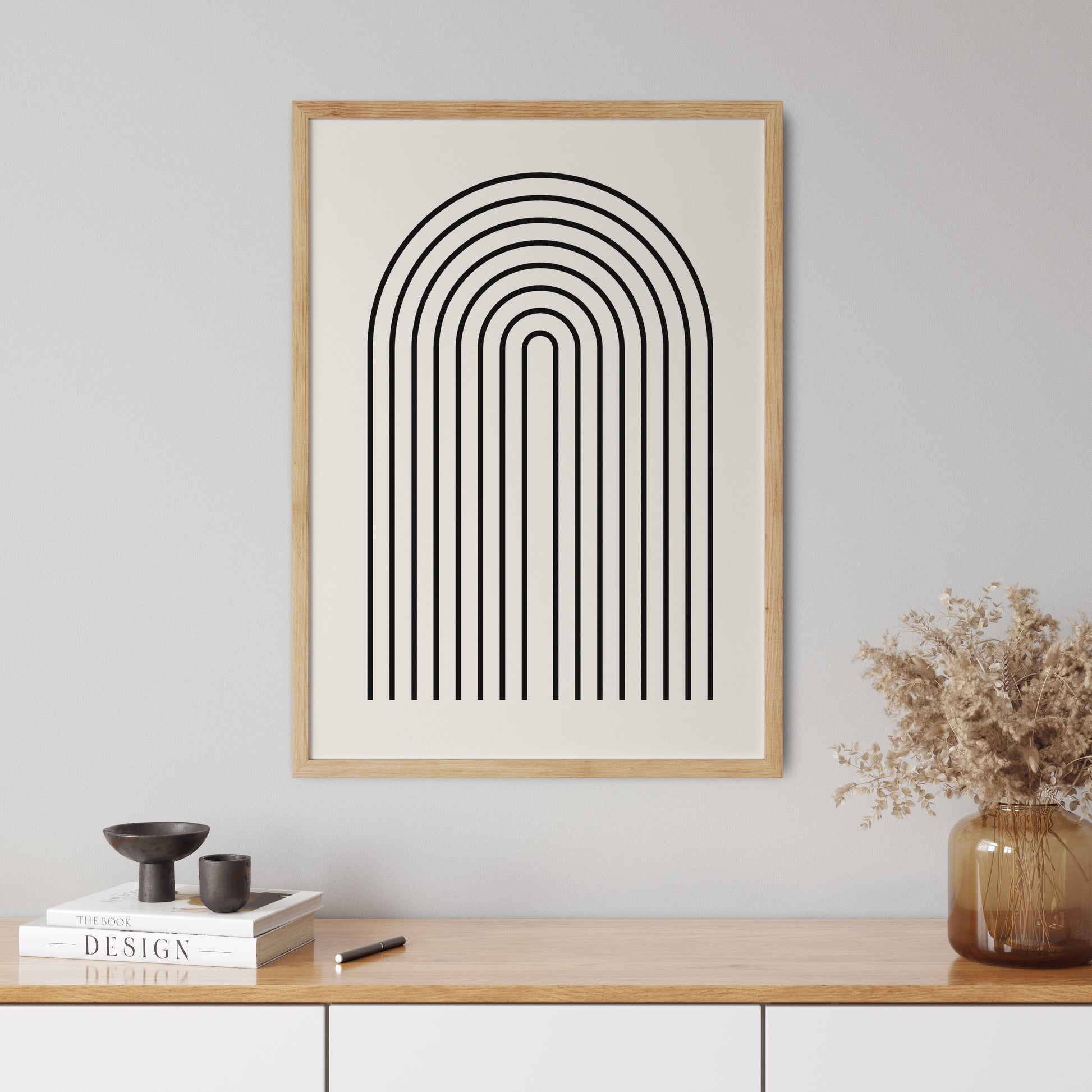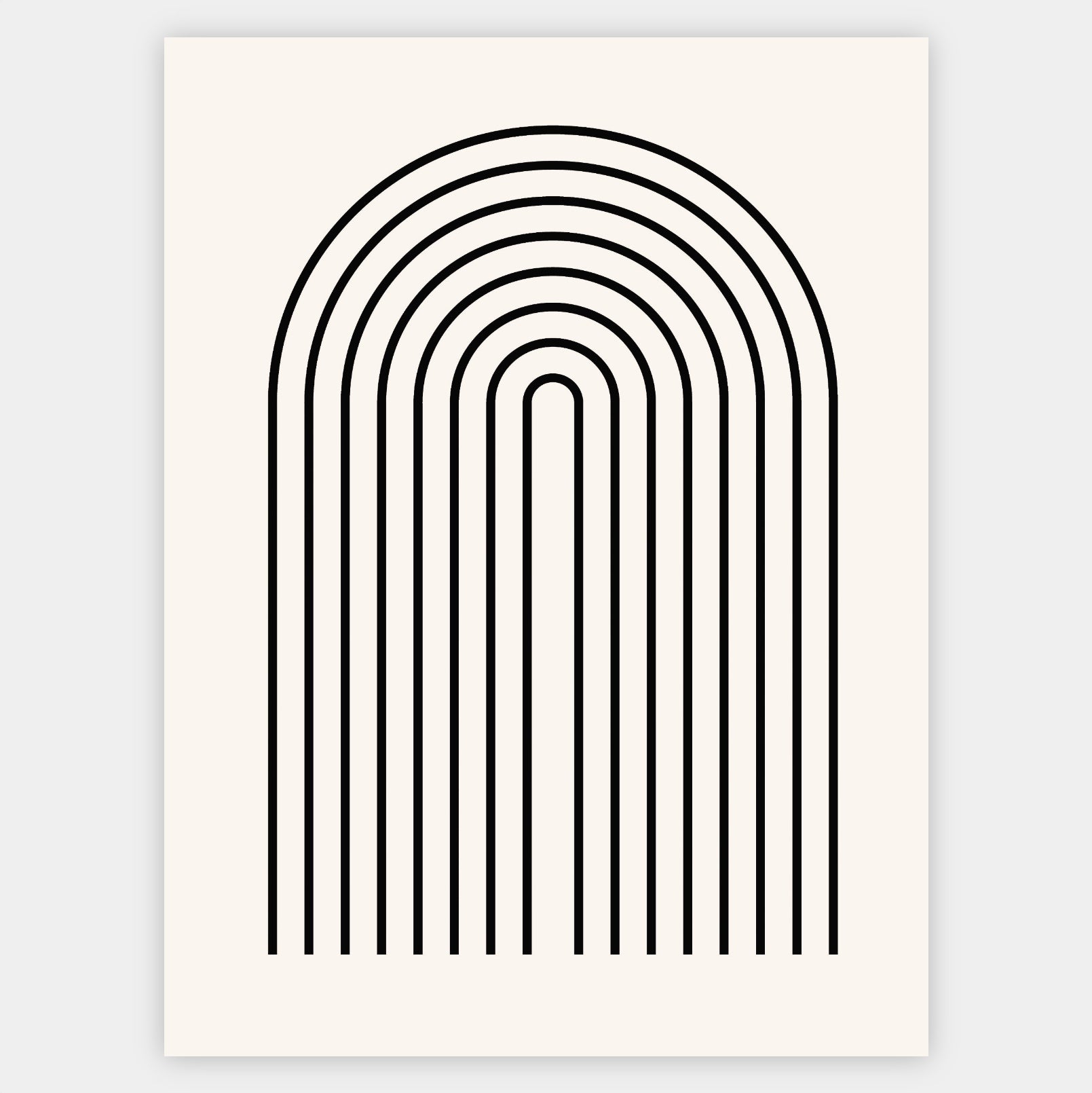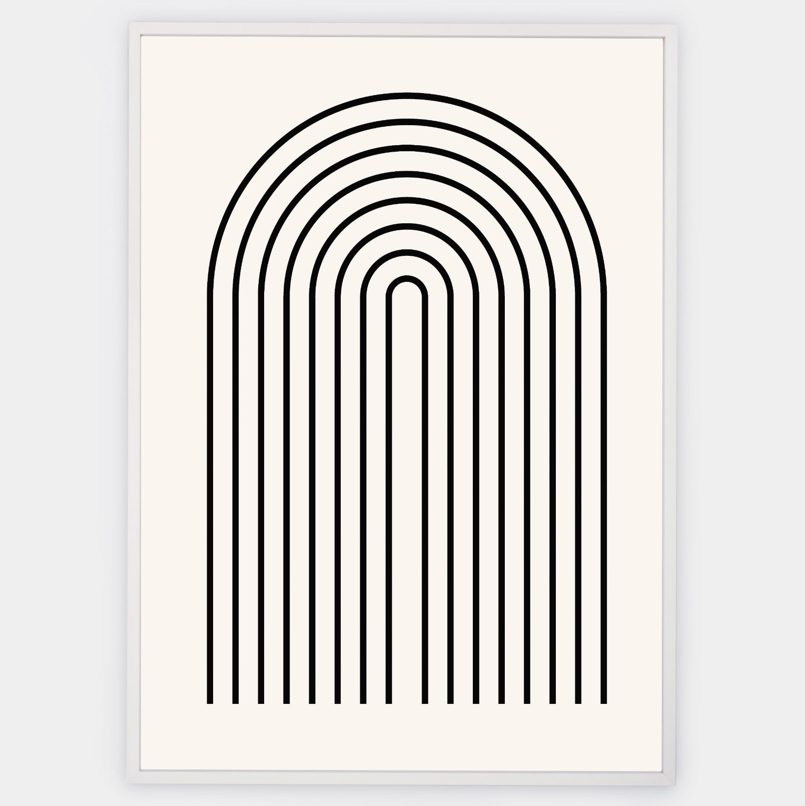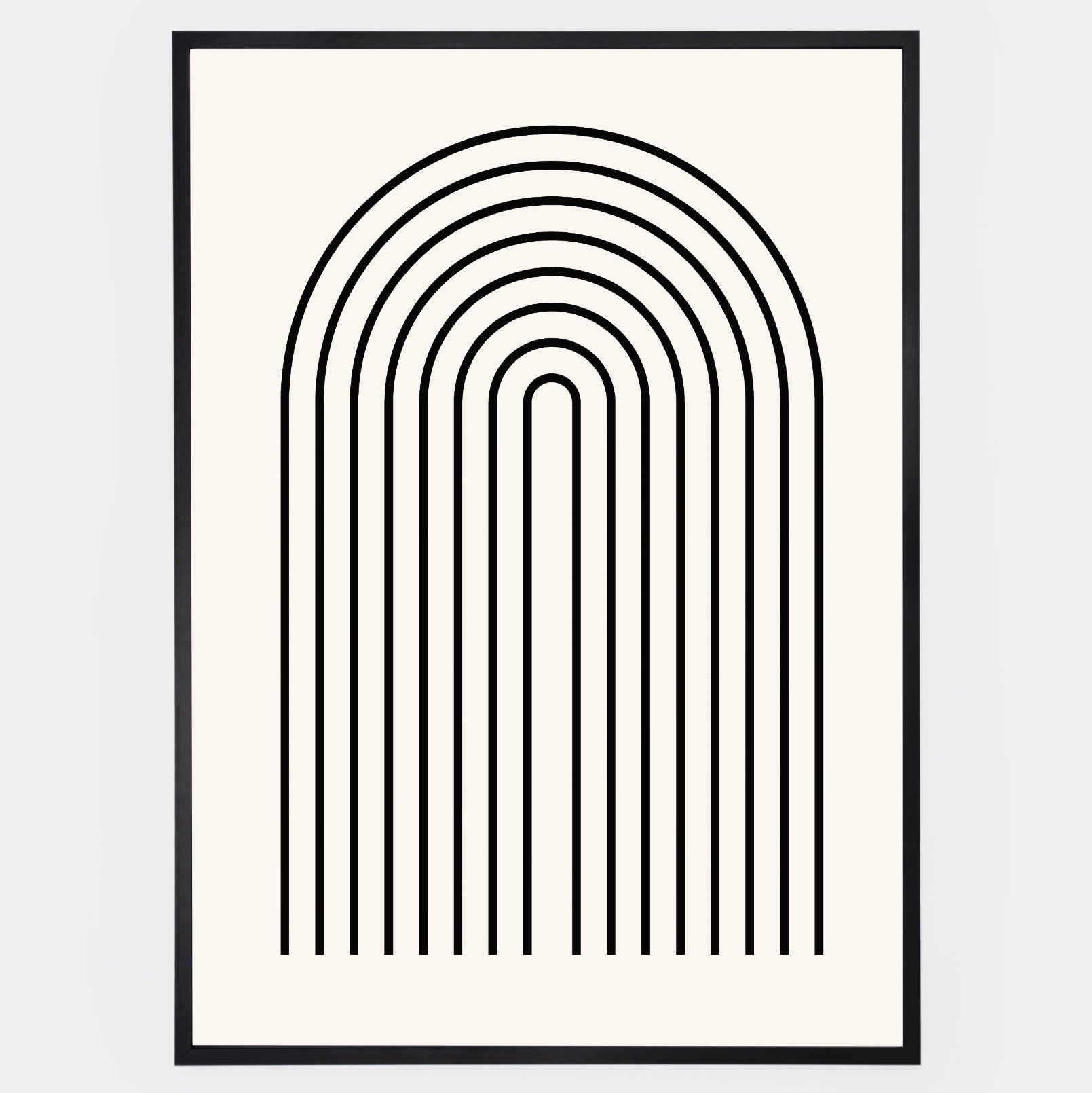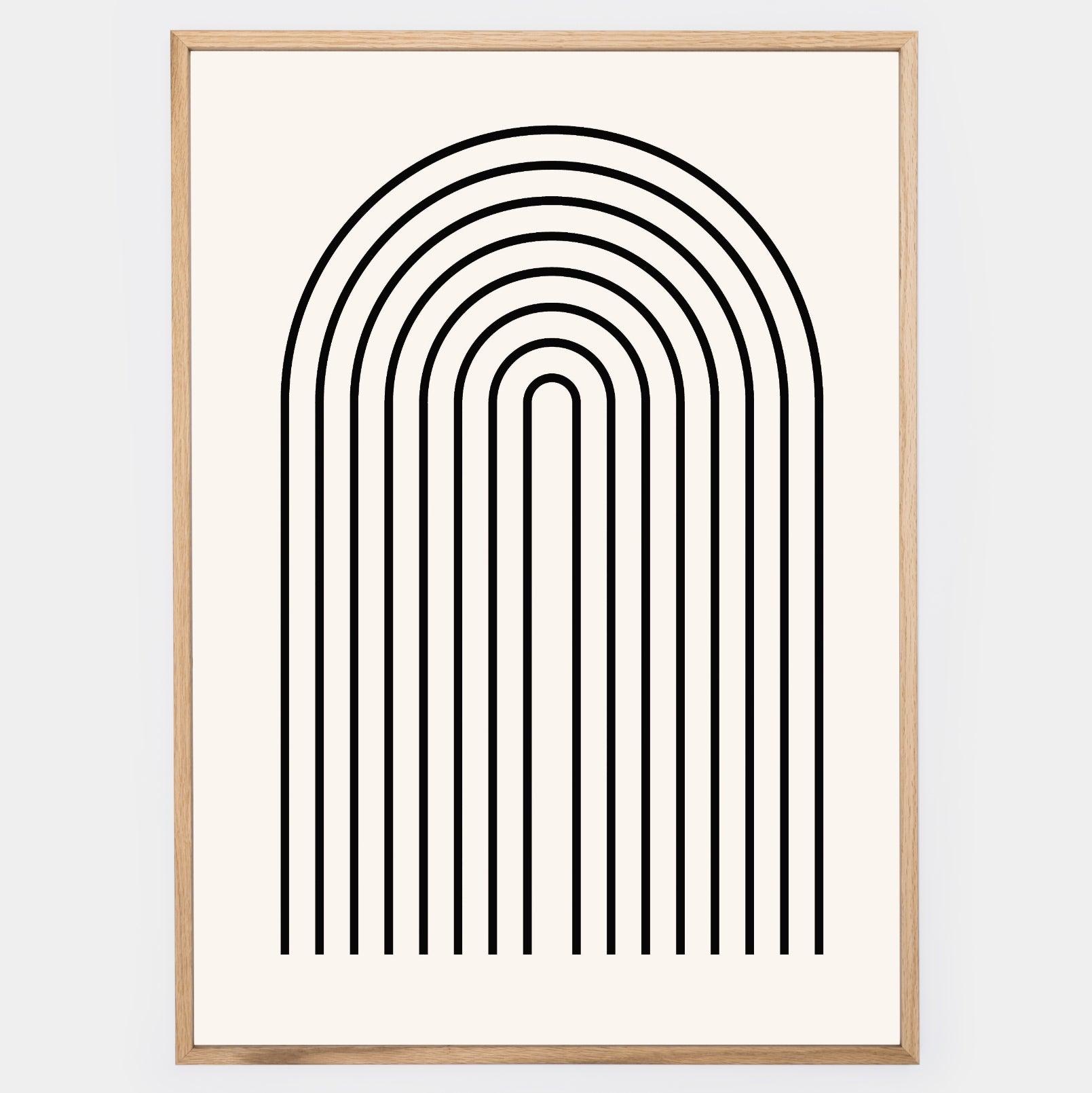 Boho plagát s grafikou oblúkov "The Arc". Poster sa predáva bez rámu s možnosťou doobjednať tenký drevený rám o hrúbke 1,2 cm. Na výber sú tri farebné prevedenia - biely, čierny a dubový dizajn.