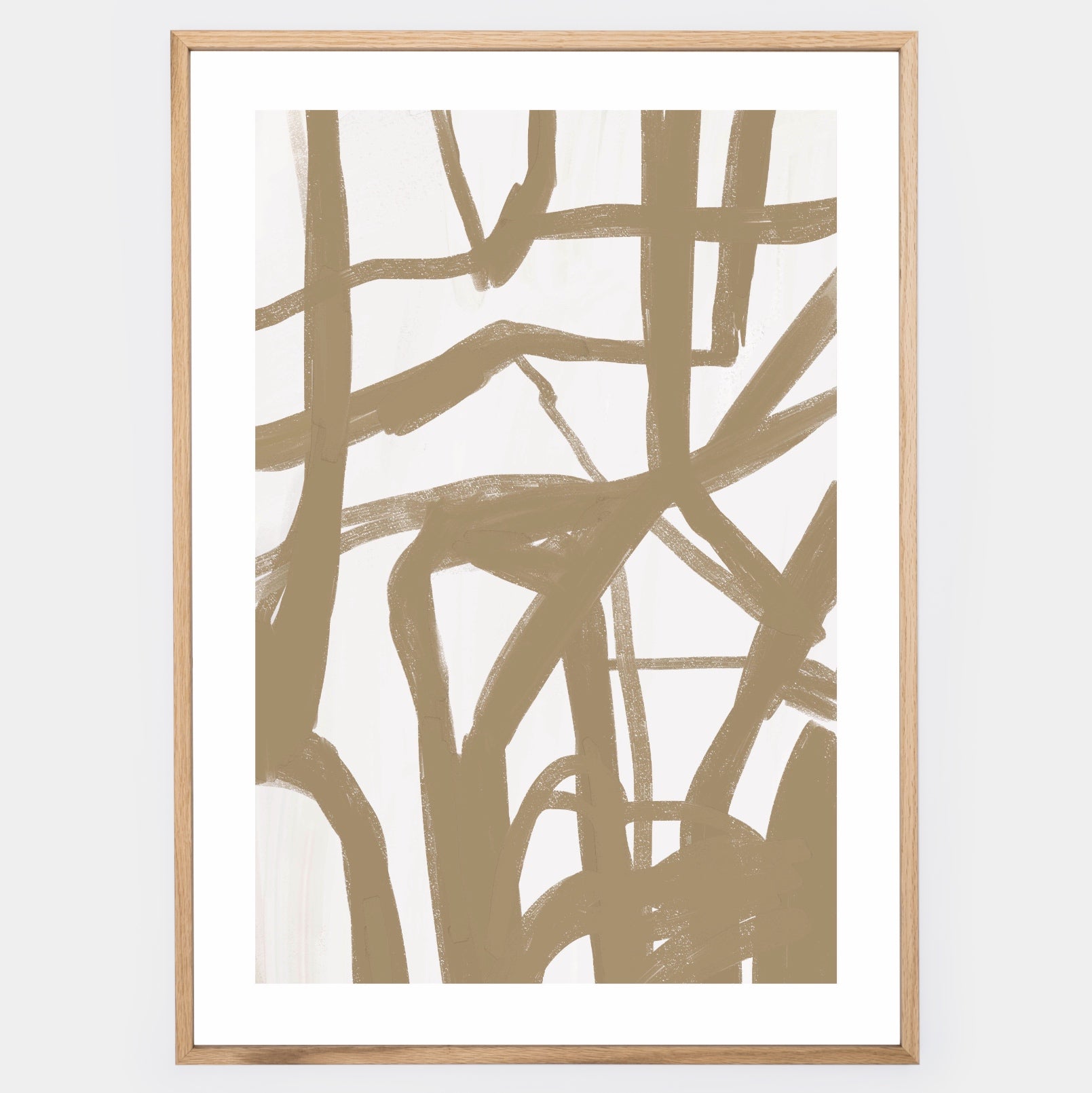 Boho plagát s abstraktnou maľbou v škandinávskom štýle "The Lines" s bielym okrajom. Poster sa predáva bez rámu s možnosťou doobjednať tenký drevený rám o hrúbke 1,2 cm. Na výber sú tri farebné prevedenia - bielyčierny a dubový dizajn.