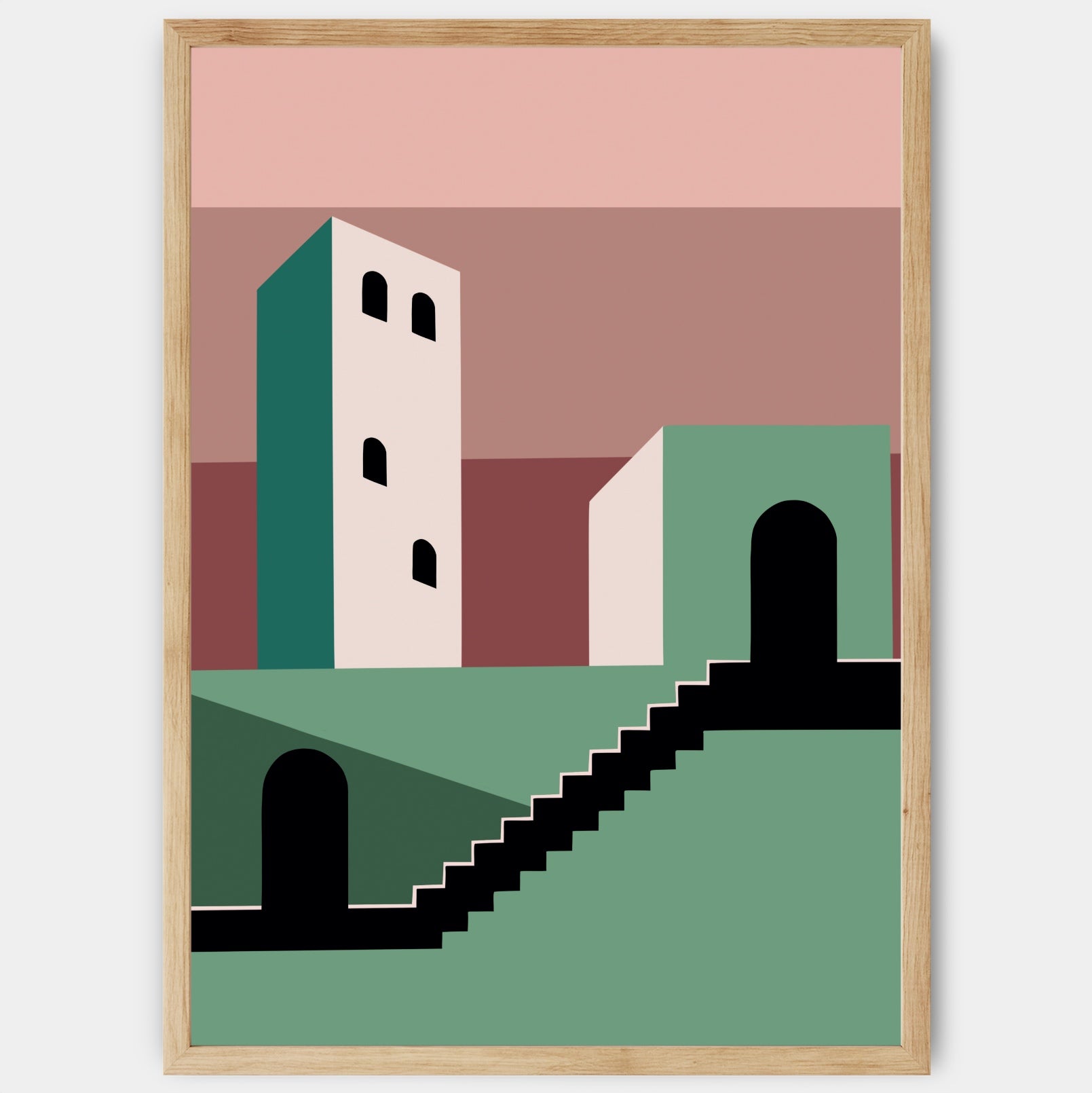 Plagát s grafikou inšpirovanou slávnou nemeckou umeleckou školou Bauhaus. Poster sa predáva bez rámu s možnosťou doobjednať tenký drevený rám o hrúbke 1,2 cm. Na výber sú tri farebné prevedenia - bielyčierny a dubový dizajn.