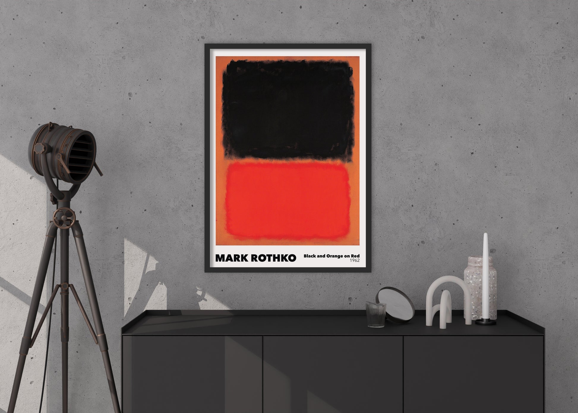 Plagát inšpirovaný maľbou od Marka Rothka - Black and Orange on Red z roku 1962. Poster sa predáva bez rámu s možnosťou doobjednať tenký drevený rám o hrúbke 1,2 cm. Na výber sú tri farebné prevedenia - biely, čierny a dubový dizajn.