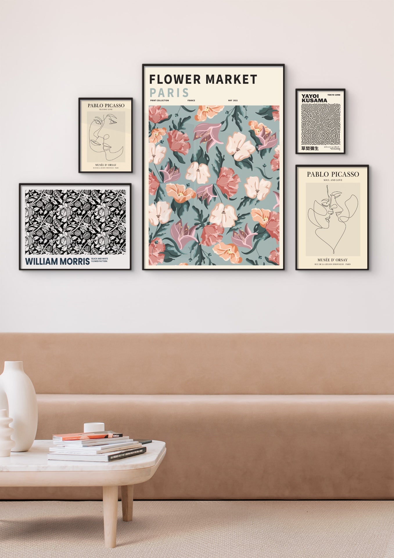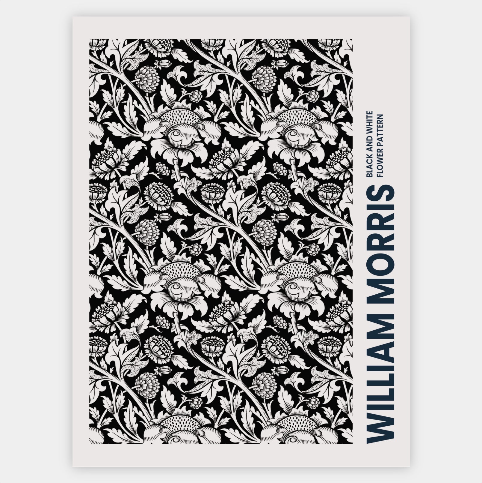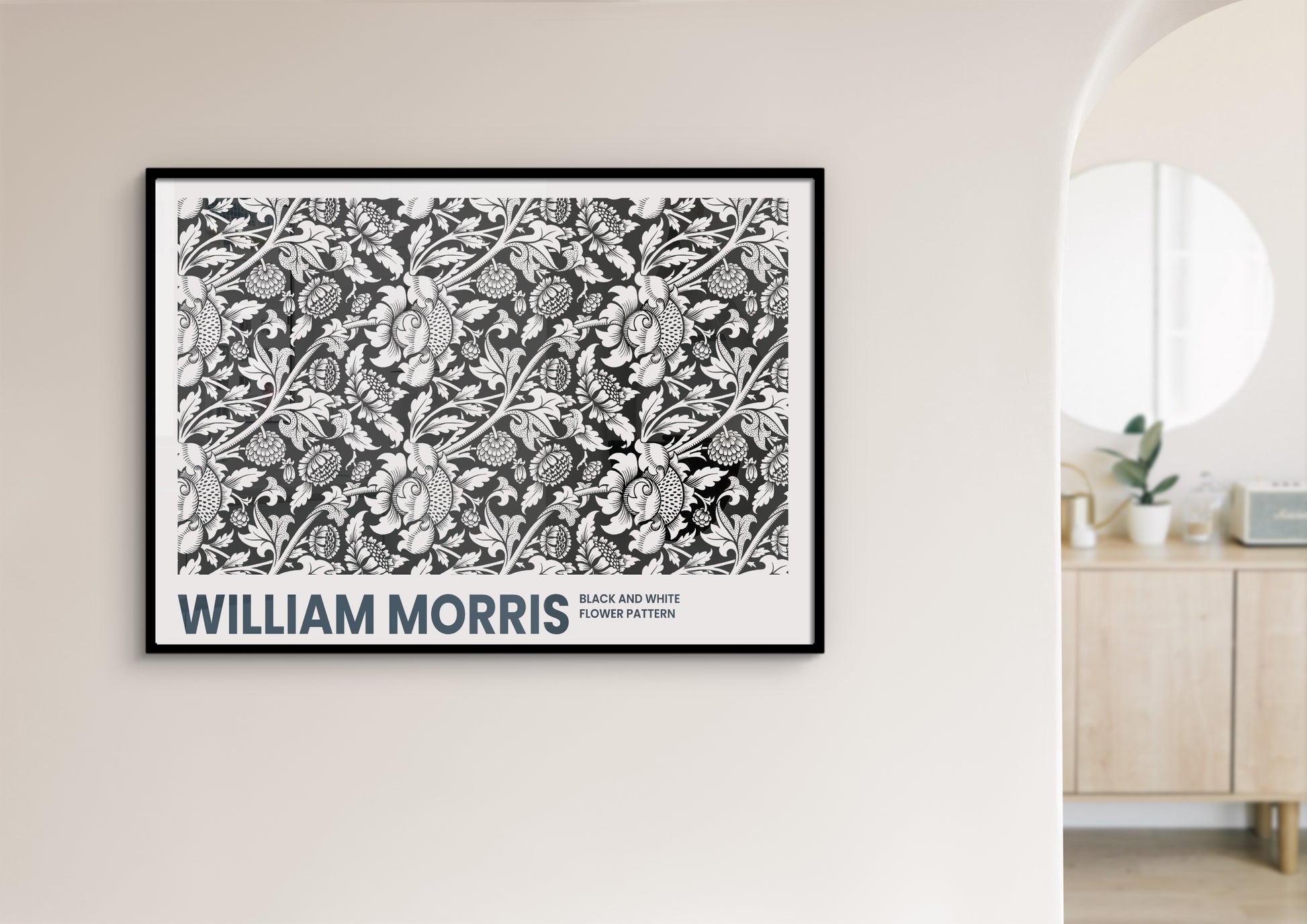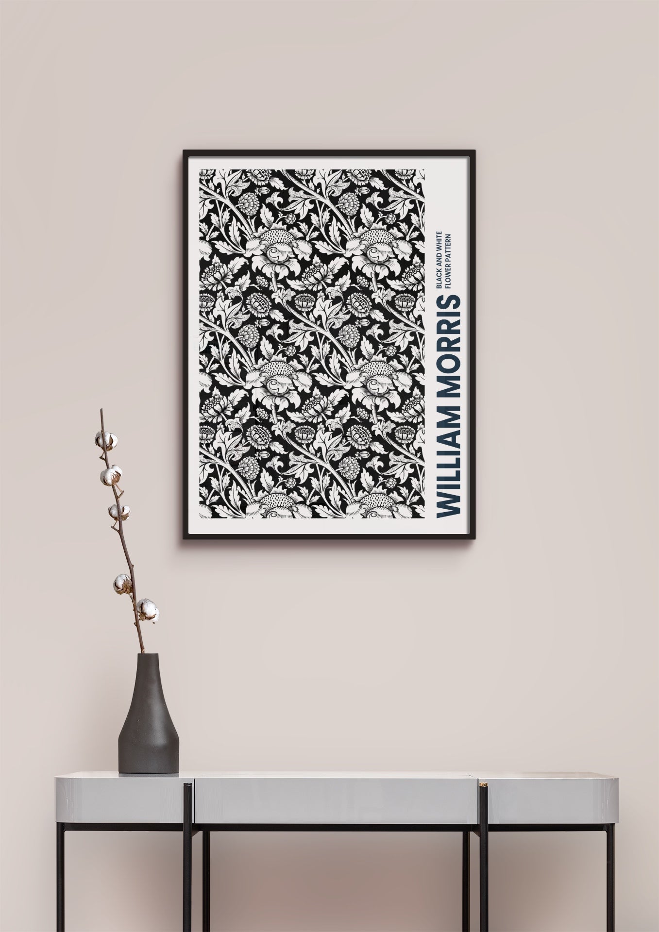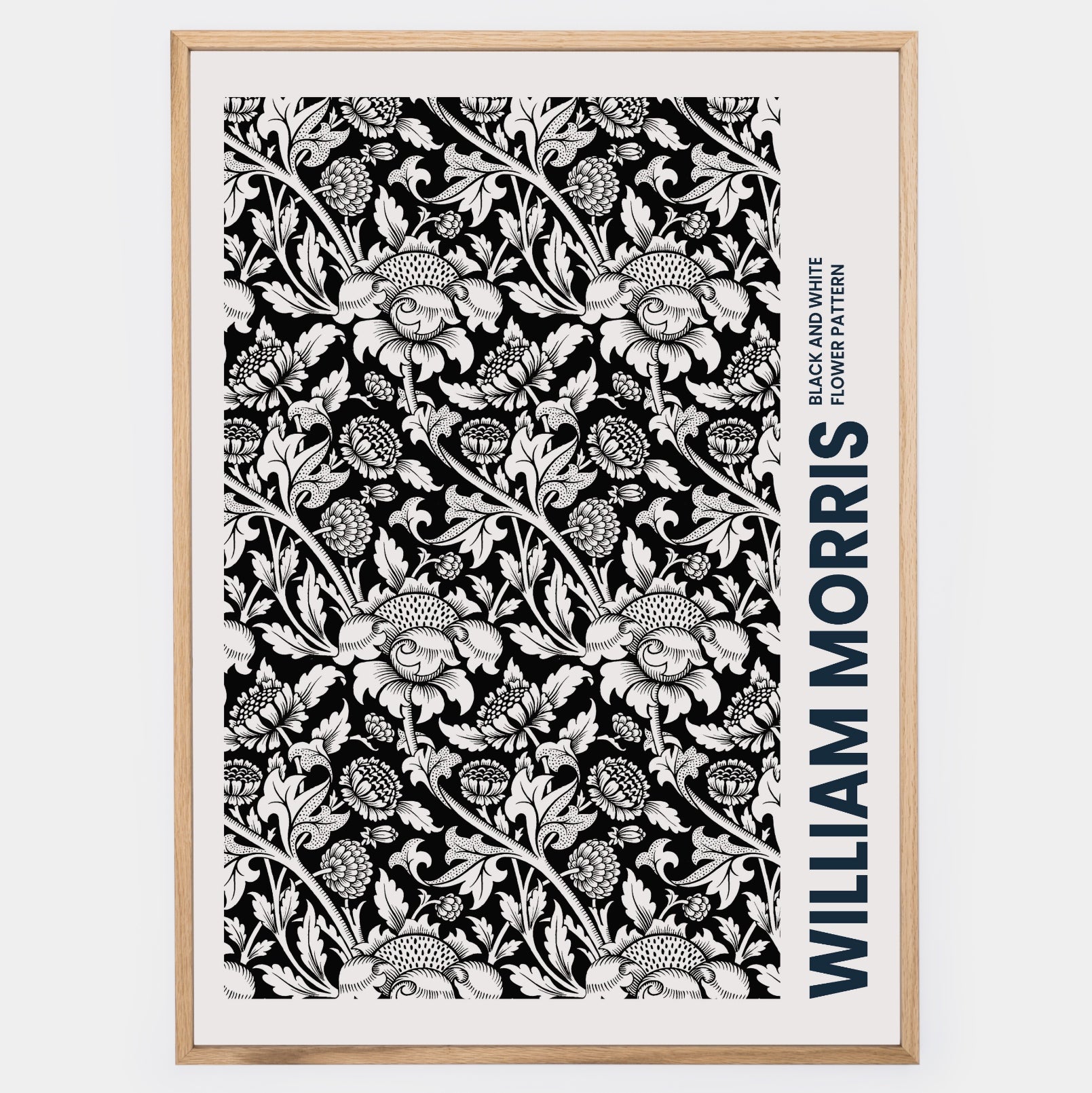 Plagát inšpirovaný vzorom Williama Morrisa s kvetinovým vzorom. Poster sa predáva bez rámu s možnosťou doobjednať tenký drevený rám o hrúbke 1,2 cm. Na výber sú tri farebné prevedenia - bielyčierny a dubový dizajn.