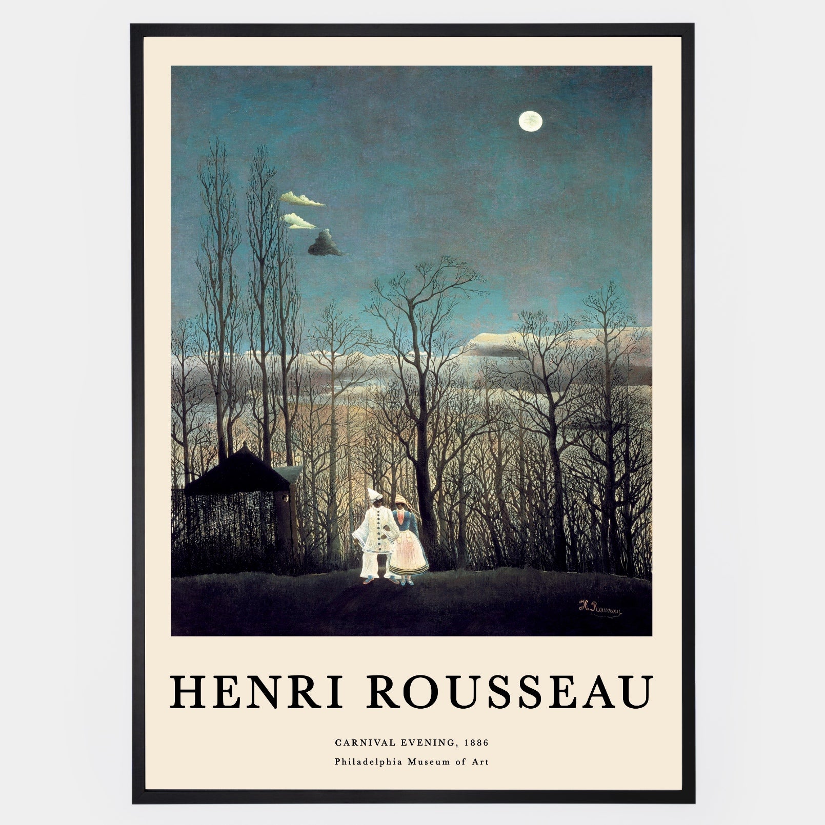 Remake výstavného diela od Henri Rousseau s názvom "Carnival Evening". Poster sa predáva bez rámu s možnosťou doobjednať tenký drevený rám o hrúbke 1,2 cm. Na výber sú tri farebné prevedenia - biely, čierny a dubový dizajn.
