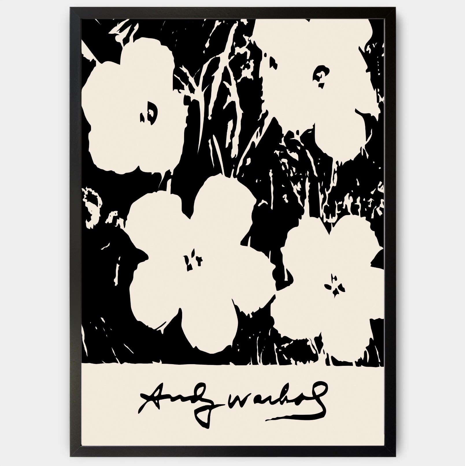 Plagát Andyho Warhola s grafikou čiernobielych kvetín. Poster sa predáva bez rámu s možnosťou doobjednať tenký drevený rám o hrúbke 1,2 cm. Na výber sú tri farebné prevedenia - bielyčierny a dubový dizajn.