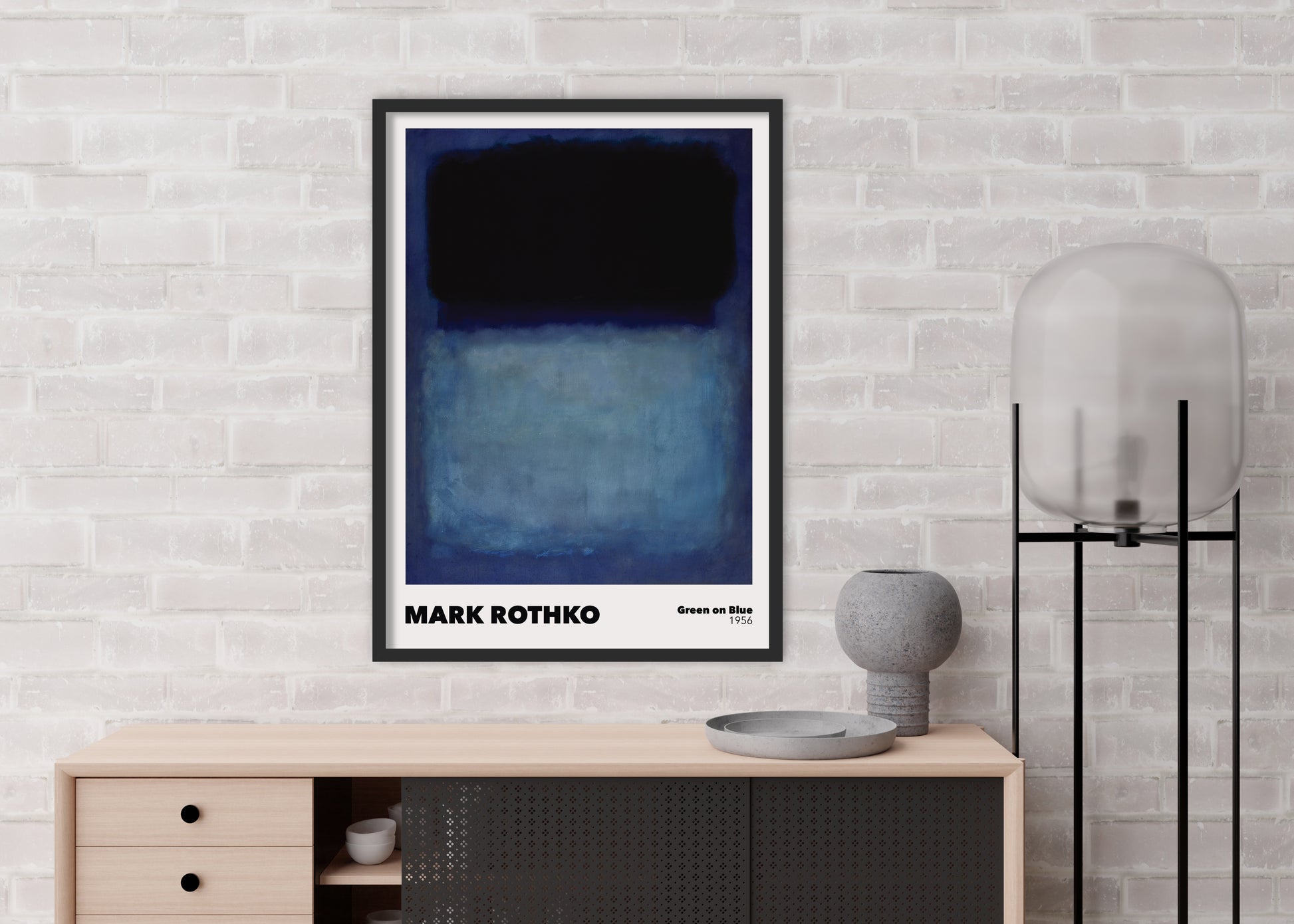 Plagát inšpirovaný maľbou od Marka Rothka - Green on Blue. Poster sa predáva bez rámu s možnosťou doobjednať tenký drevený rám o hrúbke 1,2 cm. Na výber sú tri farebné prevedenia - bielyčierny a dubový dizajn.