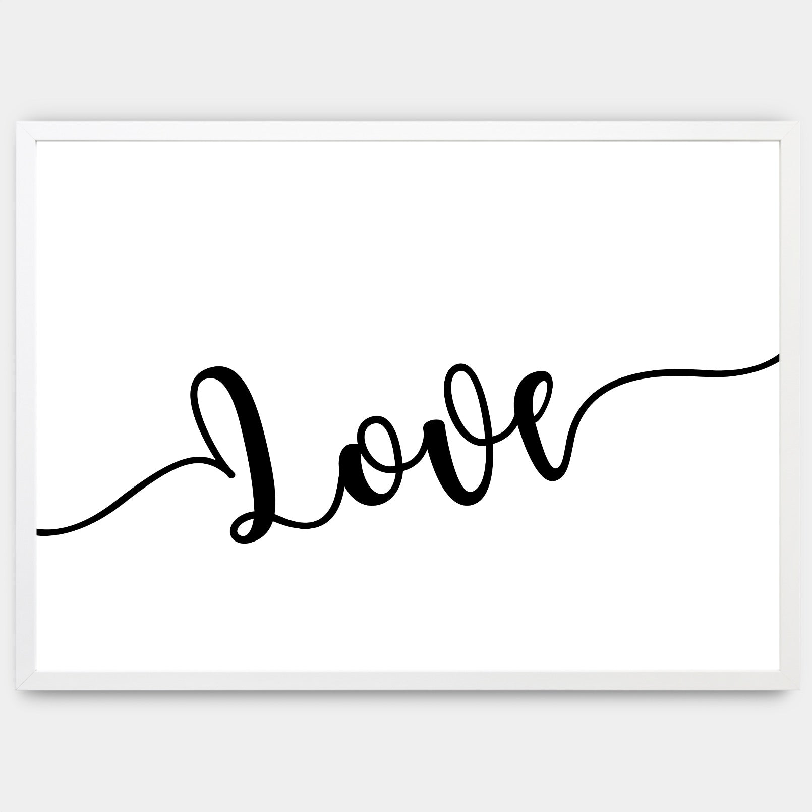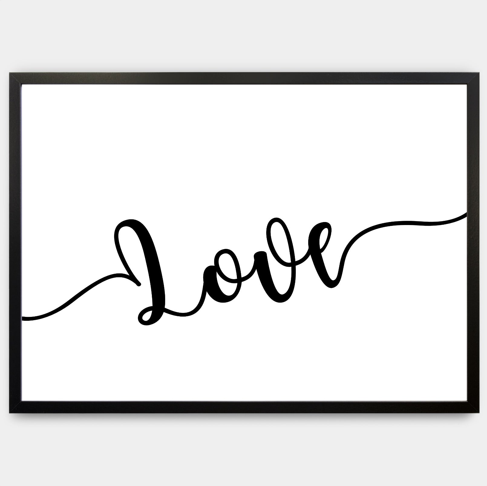 Plagát s moderným kaligrafickým nápisom Love. Poster sa predáva bez rámu s možnosťou doobjednať tenký drevený rám o hrúbke 1,2 cm. Na výber sú tri farebné prevedenia - bielyčierny a dubový dizajn.
