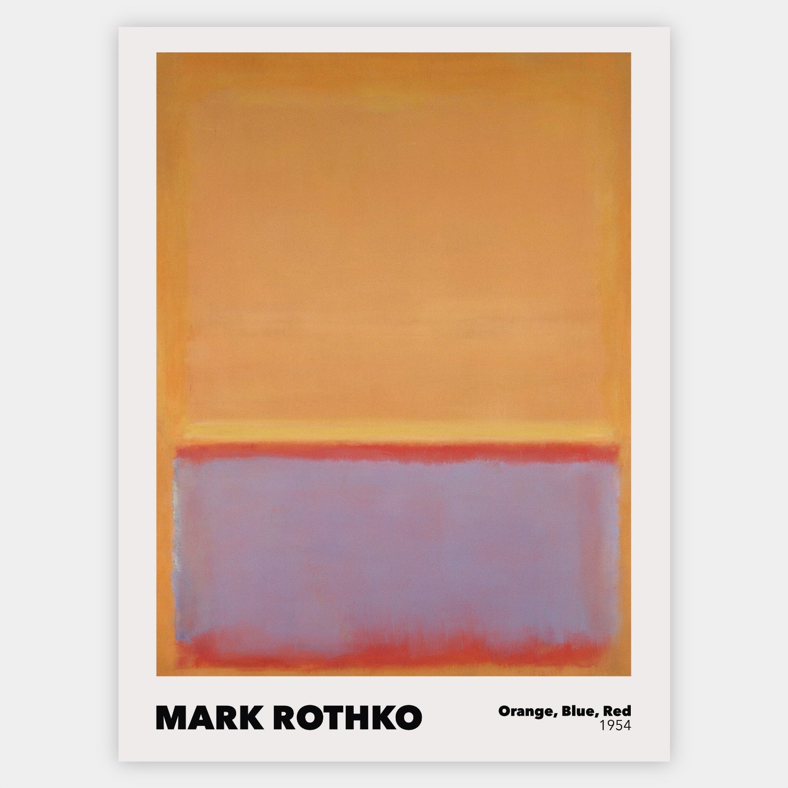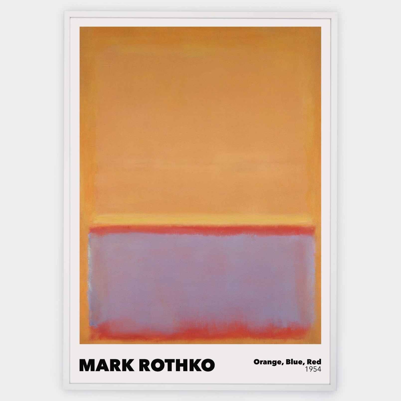 Plagát inšpirovaný malbou od Marka Rothka - Orange, Blue, Red z roku 1954. Poster sa predáva bez rámu s možnosťou doobjednať tenký drevený rám o hrúbke 1,2 cm. Na výber sú tri farebné prevedenia - biely, čierny a dubový dizajn.