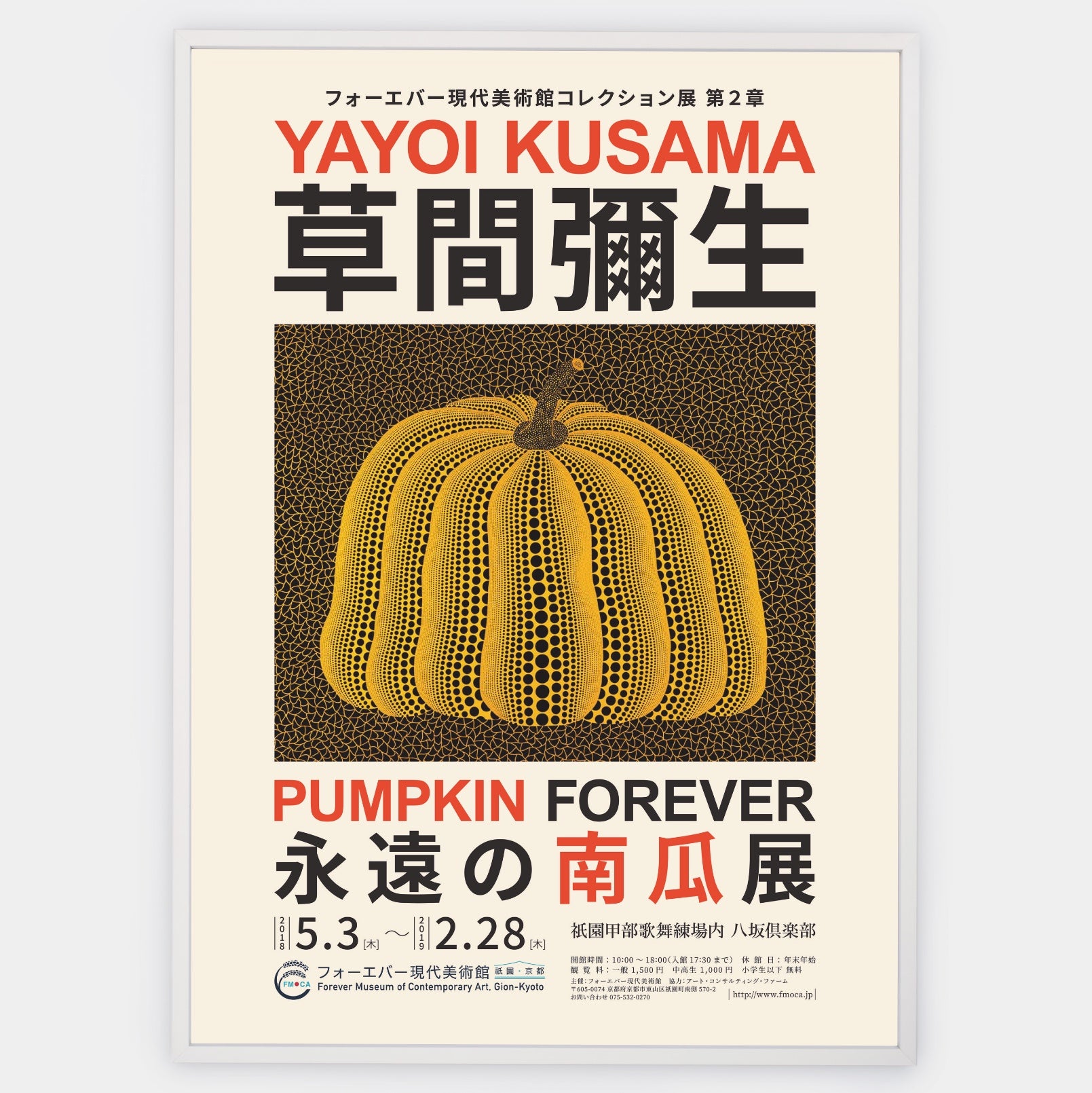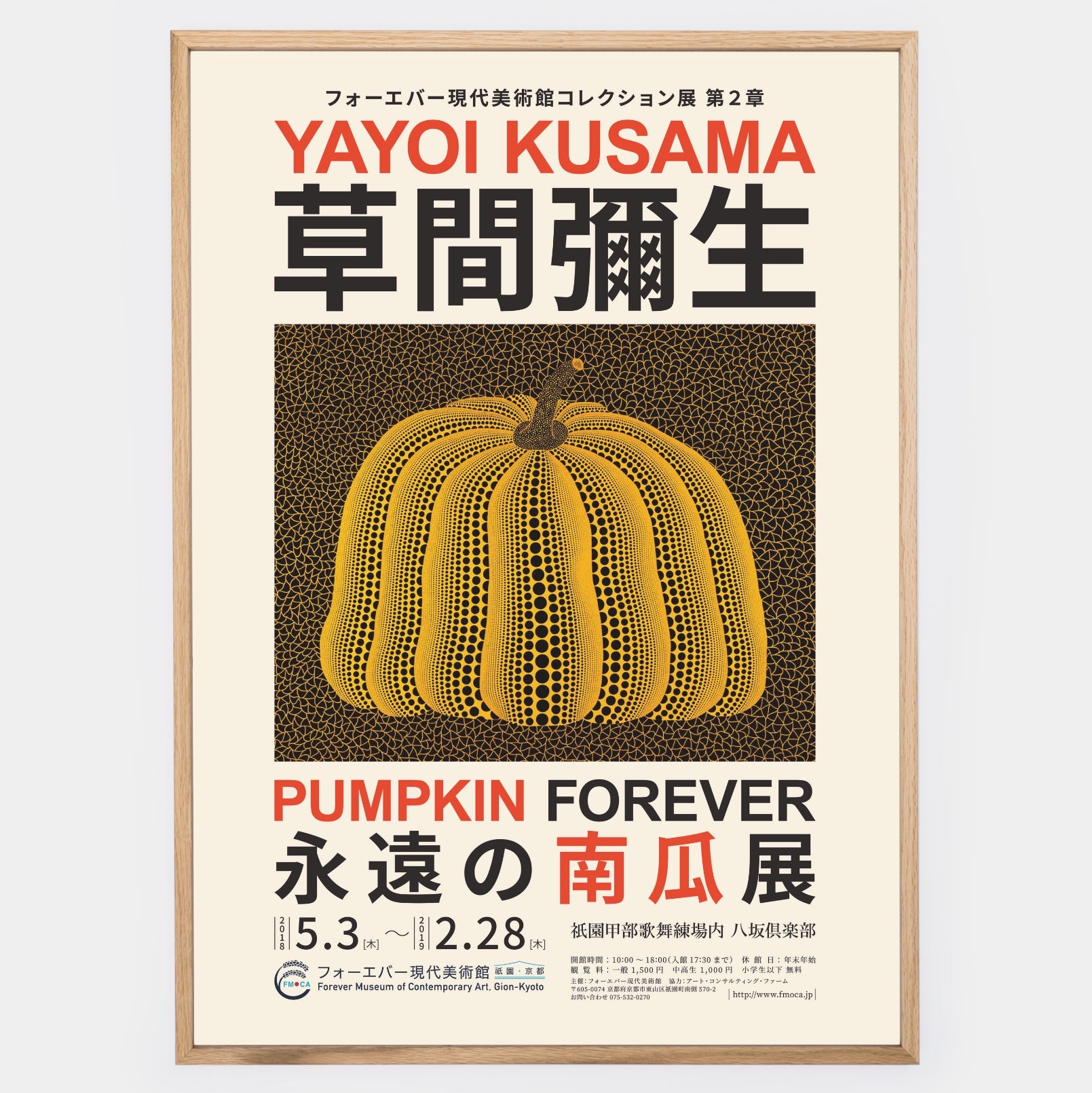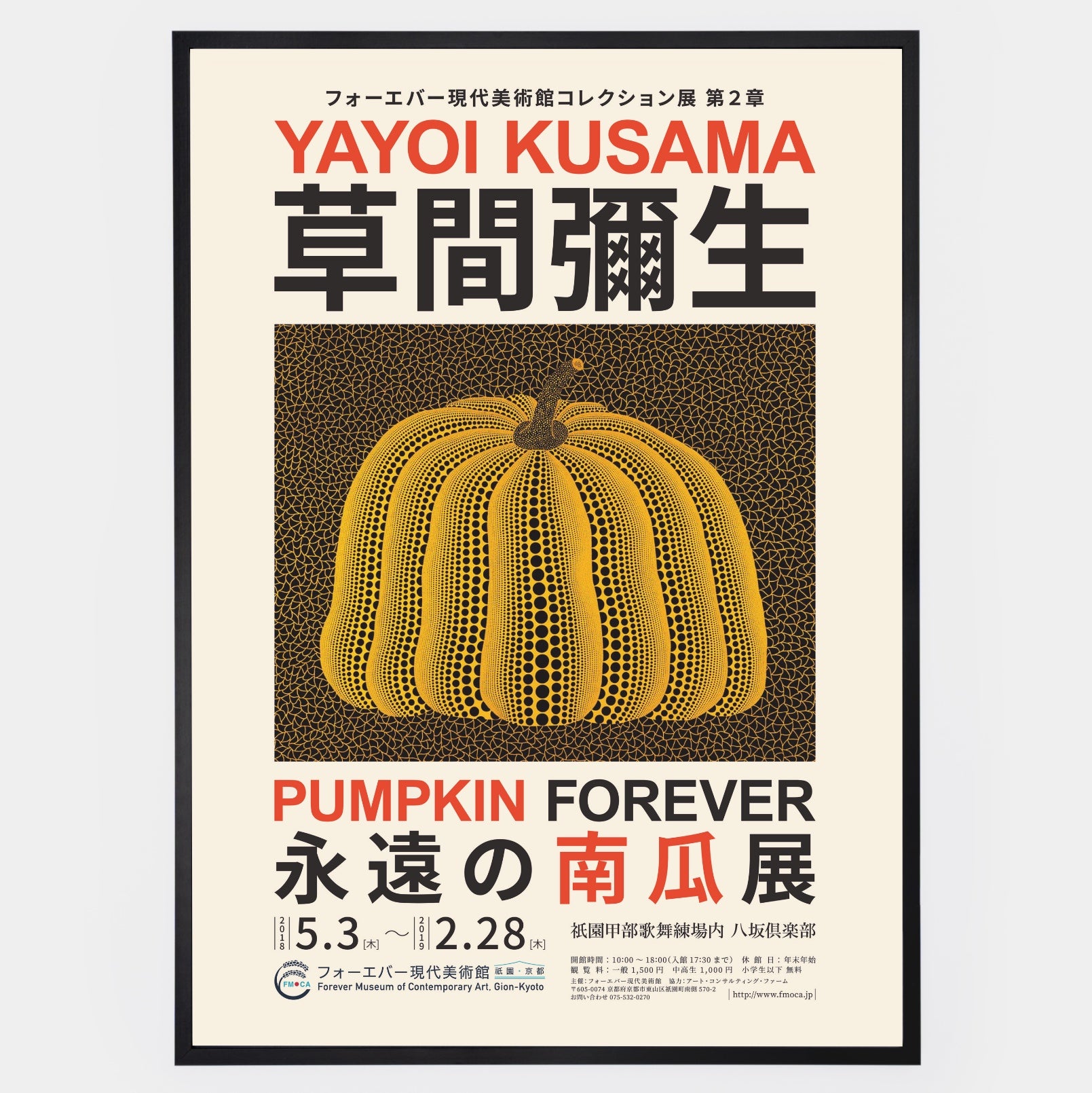 Plagát inšpirovaný dielom od Yayoi Kusama - Pumpkin Forever. Poster sa predáva bez rámu s možnosťou doobjednať tenký drevený rám o hrúbke 1,2 cm. Na výber sú tri farebné prevedenia - biely, čierny a dubový dizajn.
