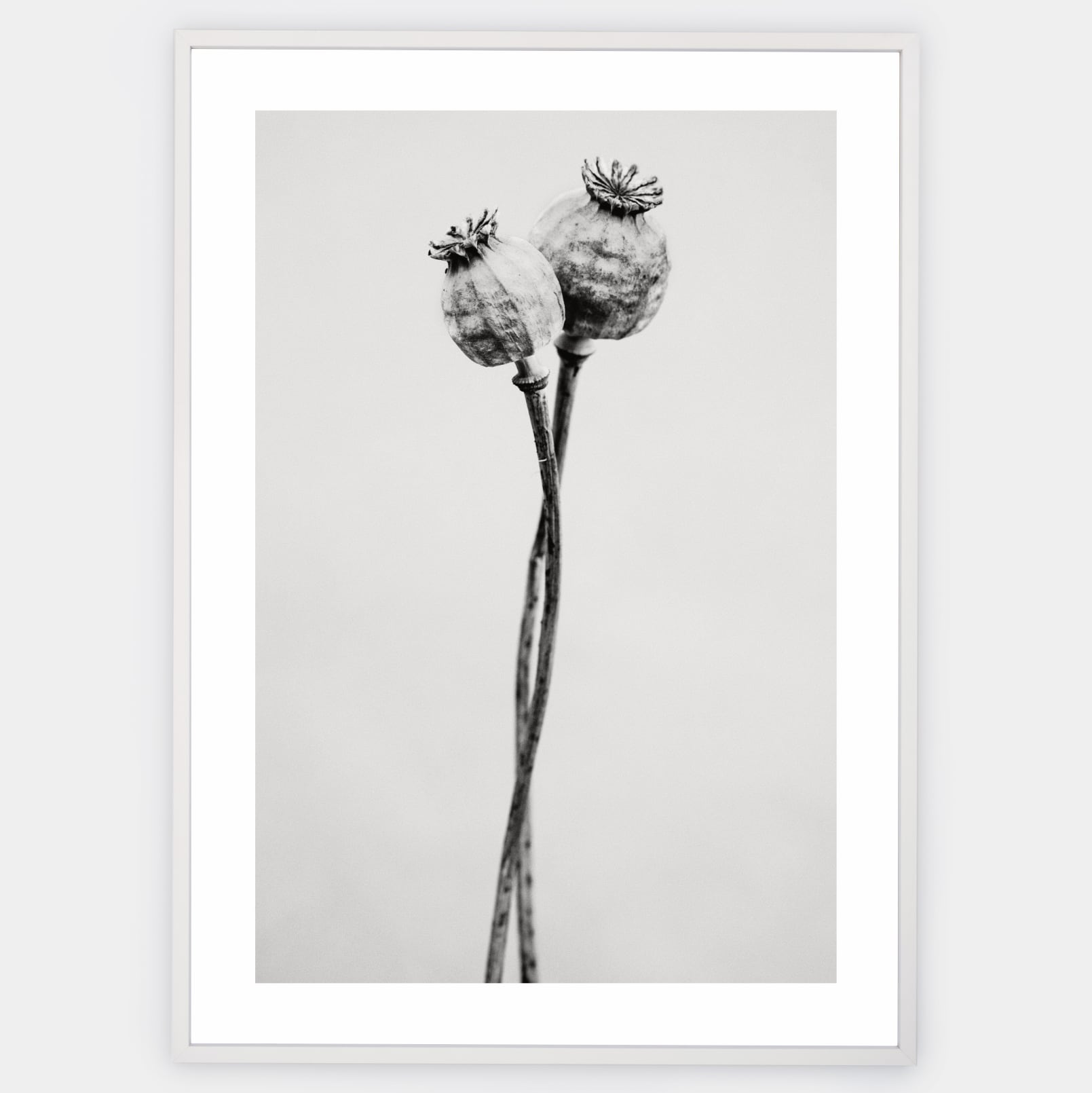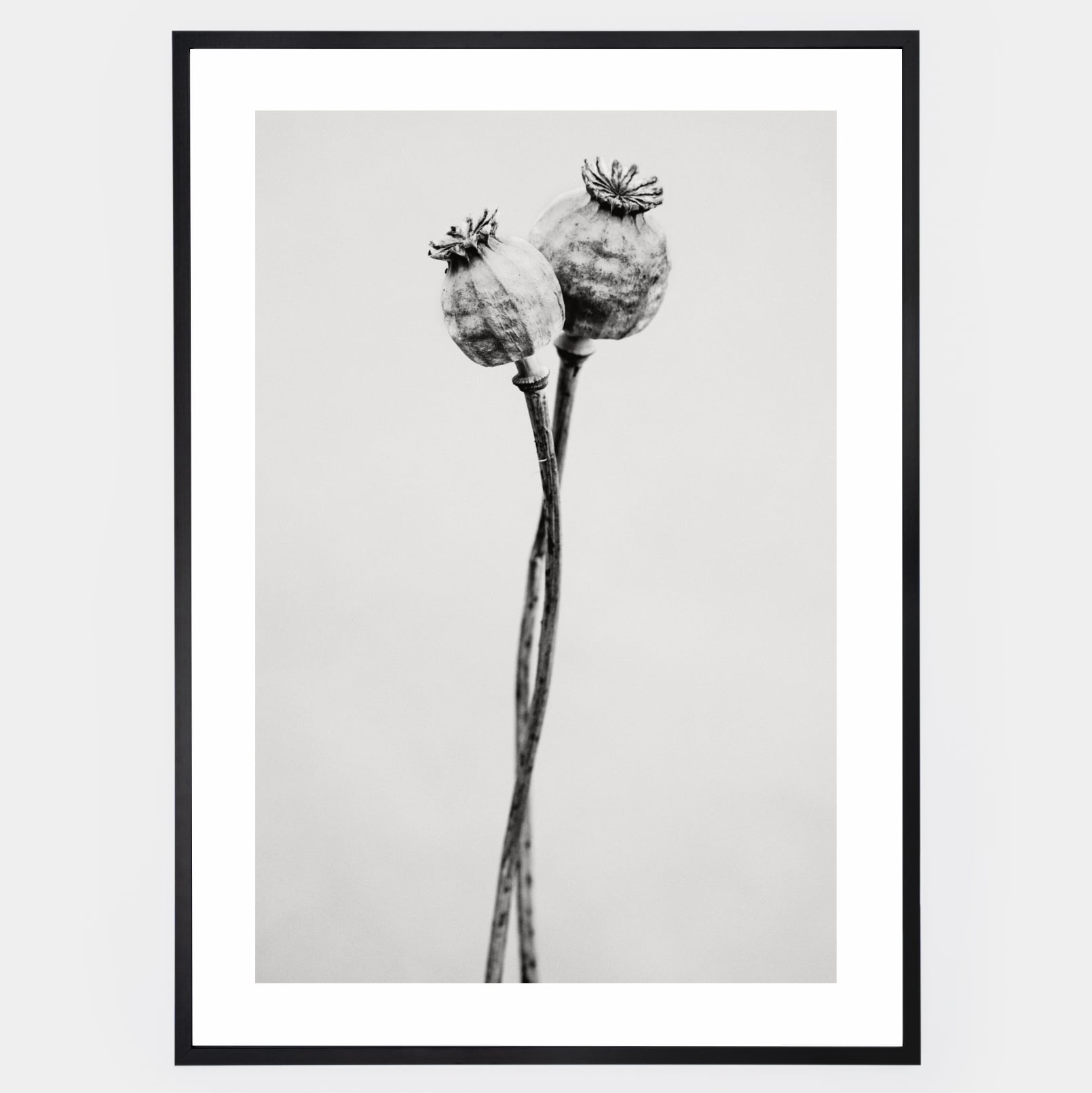 Plagát s čiernobielou fotografiou dvoch makovíc. Elegantný biely okraj je súčasťou printu. Poster sa predáva bez rámu s možnosťou doobjednať tenký drevený rám o hrúbke 1,2 cm. Na výber sú tri farebné prevedenia - biely, čierny a dubový dizajn.