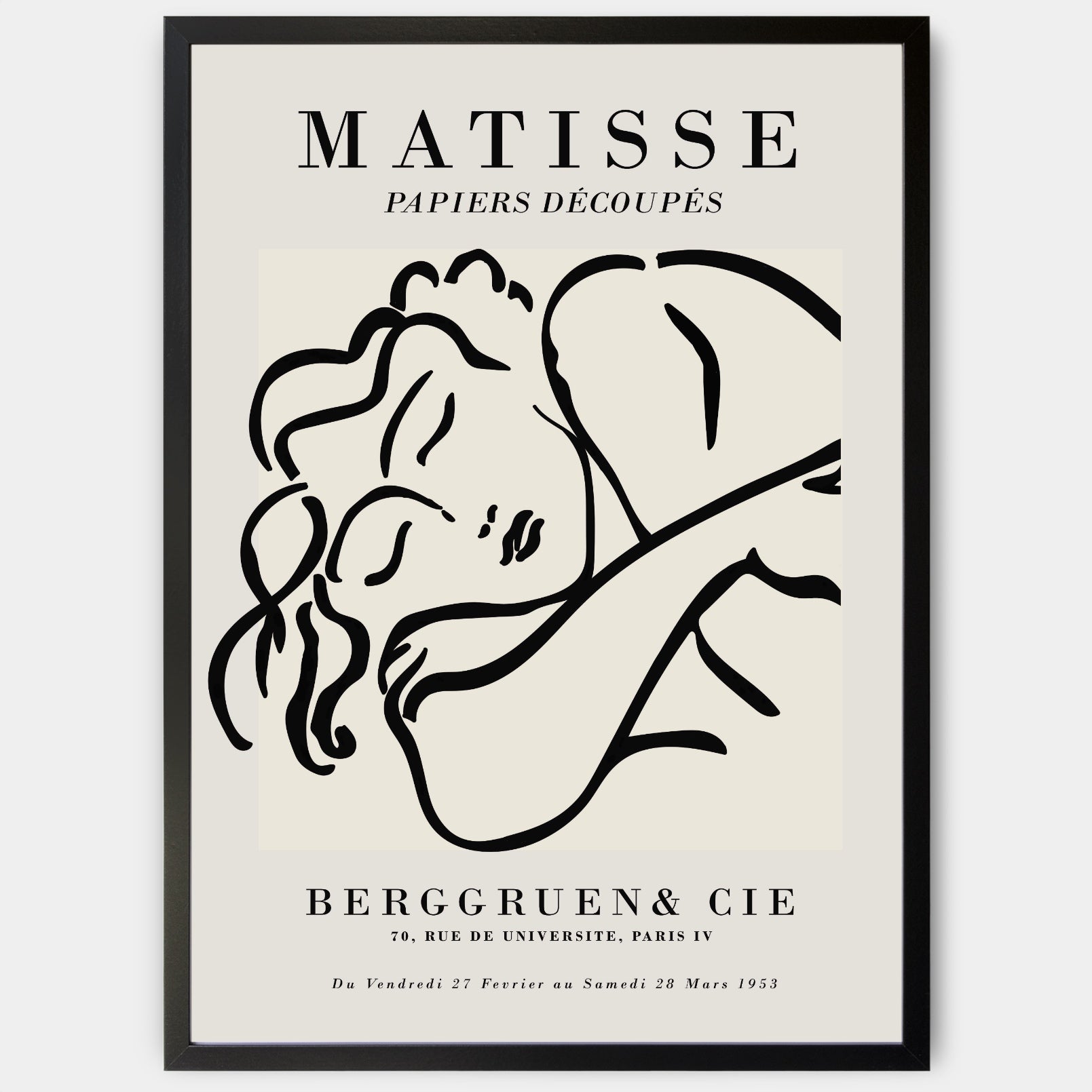 Výstavný plagát s motívom diela Henriho Matissa Sleeping Woman Sketch v šedom prevedení z roku 1953. Poster sa predáva bez rámu s možnosťou doobjednať tenký drevený rám o hrúbke 1,2 cm. Na výber sú tri farebné prevedenia - biely, čierny a dubový dizajn.