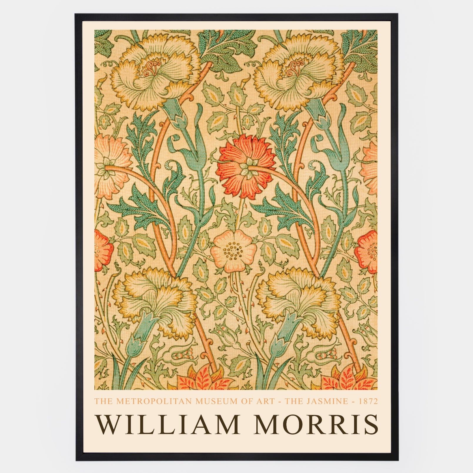 Plagát inšpirovaný vzorom Williama Morrisa s kvetmi jasmínu. Poster sa predáva bez rámu s možnosťou doobjednať tenký drevený rám o hrúbke 1,2 cm. Na výber sú tri farebné prevedenia - biely, čierny a dubový dizajn.