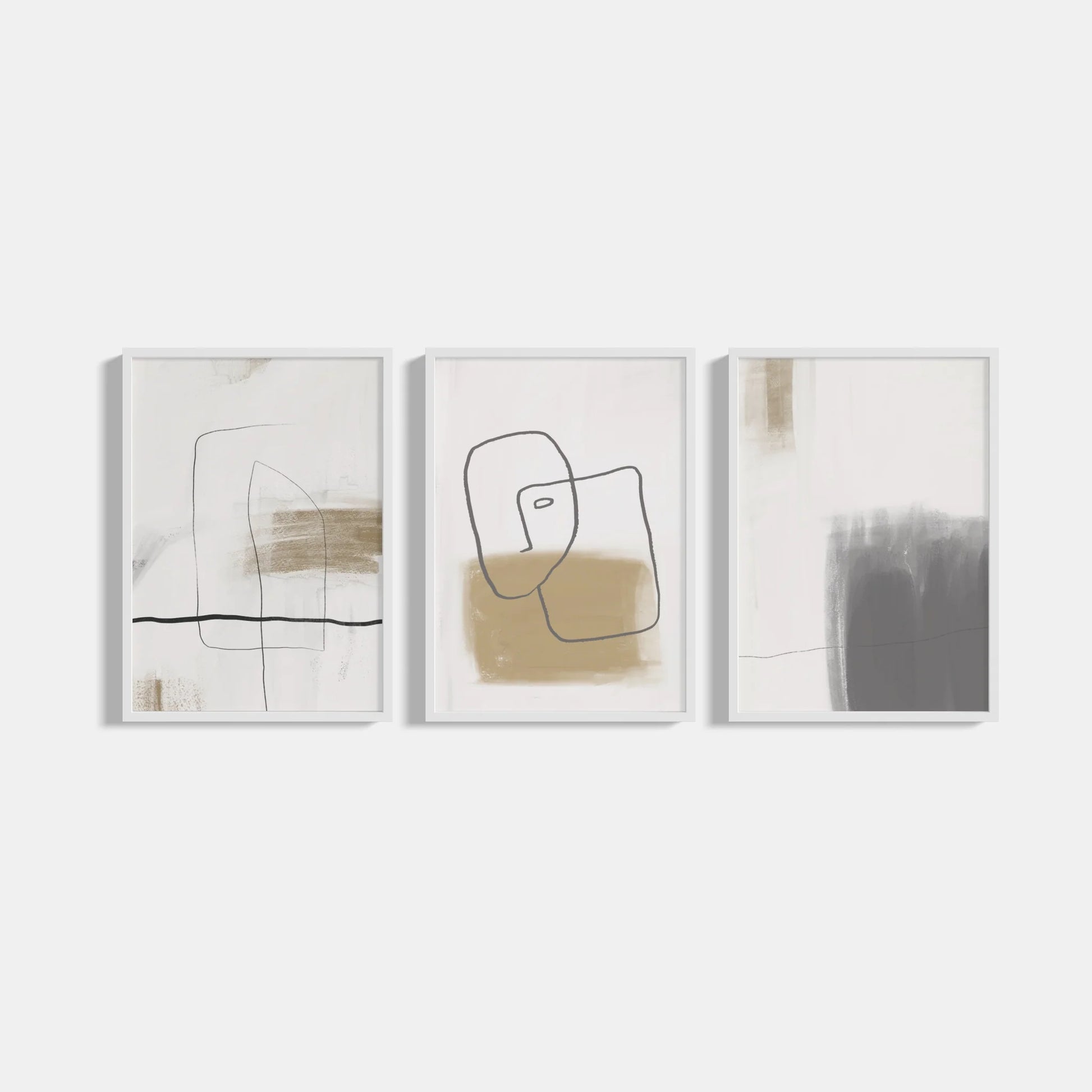 Zostava troch plagátov s abstraktným motívom v škandinávskom dizajne. Obsahuje 3 plagáty o rozmere 50x70cm, bez rámov. K plagátom možno dokúpiť biele, čierne alebo dubové rámy.