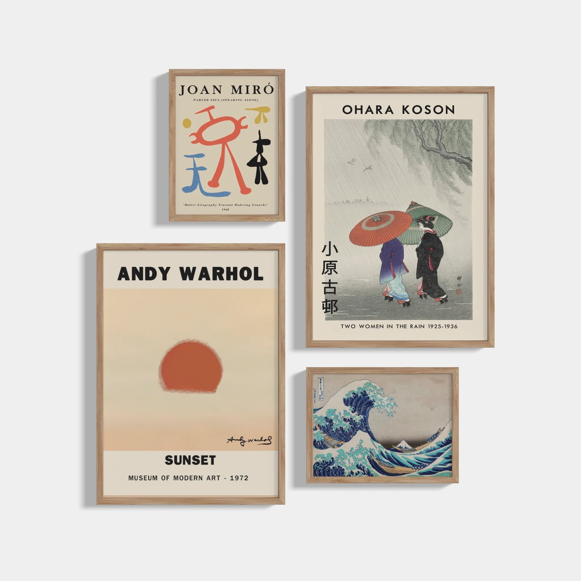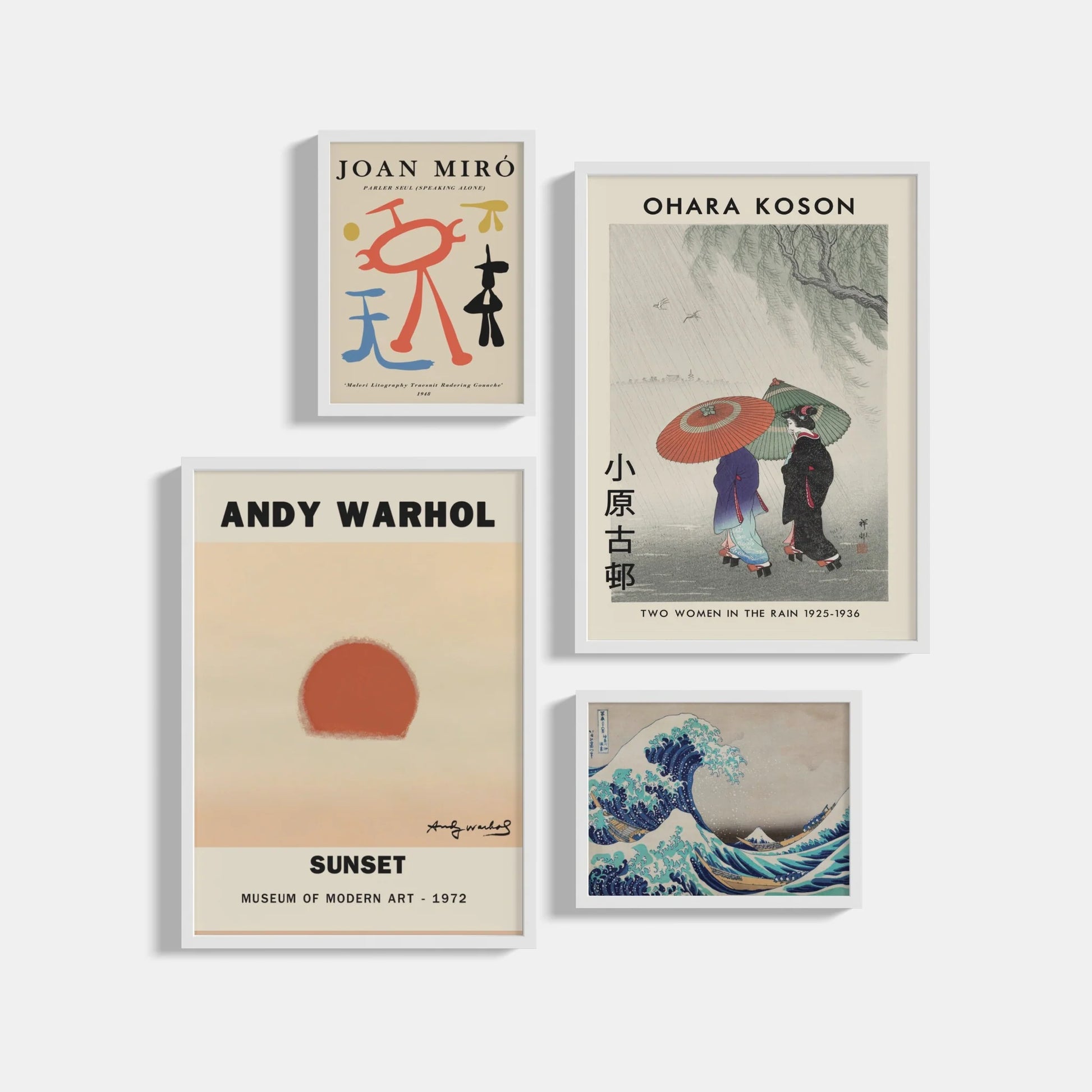 Zostava štyroch plagátov s motívom diel slávnych umelcov. Obsahuje 2 plagáty o rozmere 50x70cm a 2 plagáty o rozmere 30x40 cm, bez rámov. K plagátom možno dokúpiť biele, čierne alebo dubové rámy.