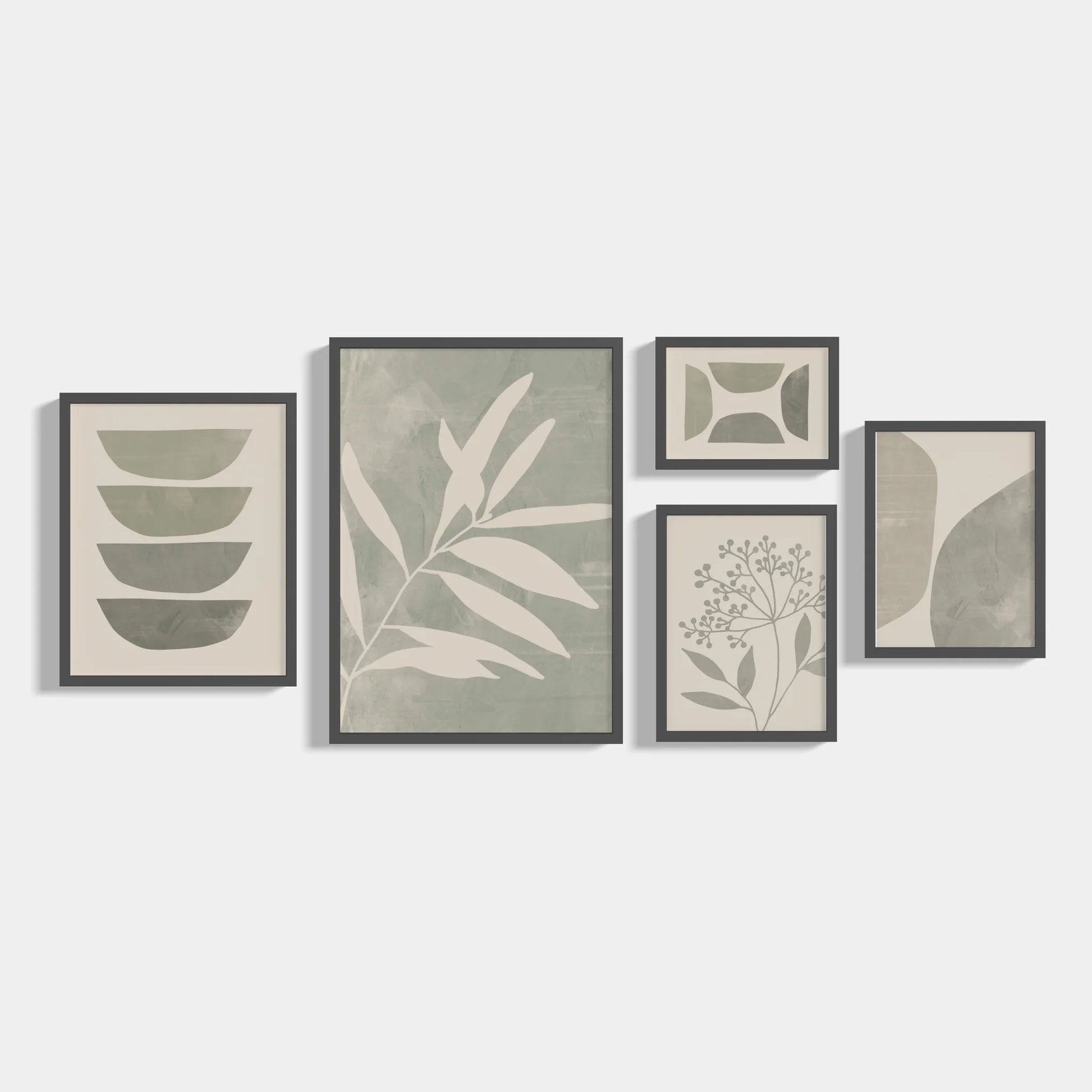 Zostava šiestich boho plagátov v zelených tónoch. Obsahuje 1 plagát rozmeru 50x70cm, 1 plagát 40x50cm, 2 plagáty 30x40cm a 1 plagát rozmeru 20x30cm, bez rámov. K plagátom možno dokúpiť biele, čierne alebo dubové rámy.